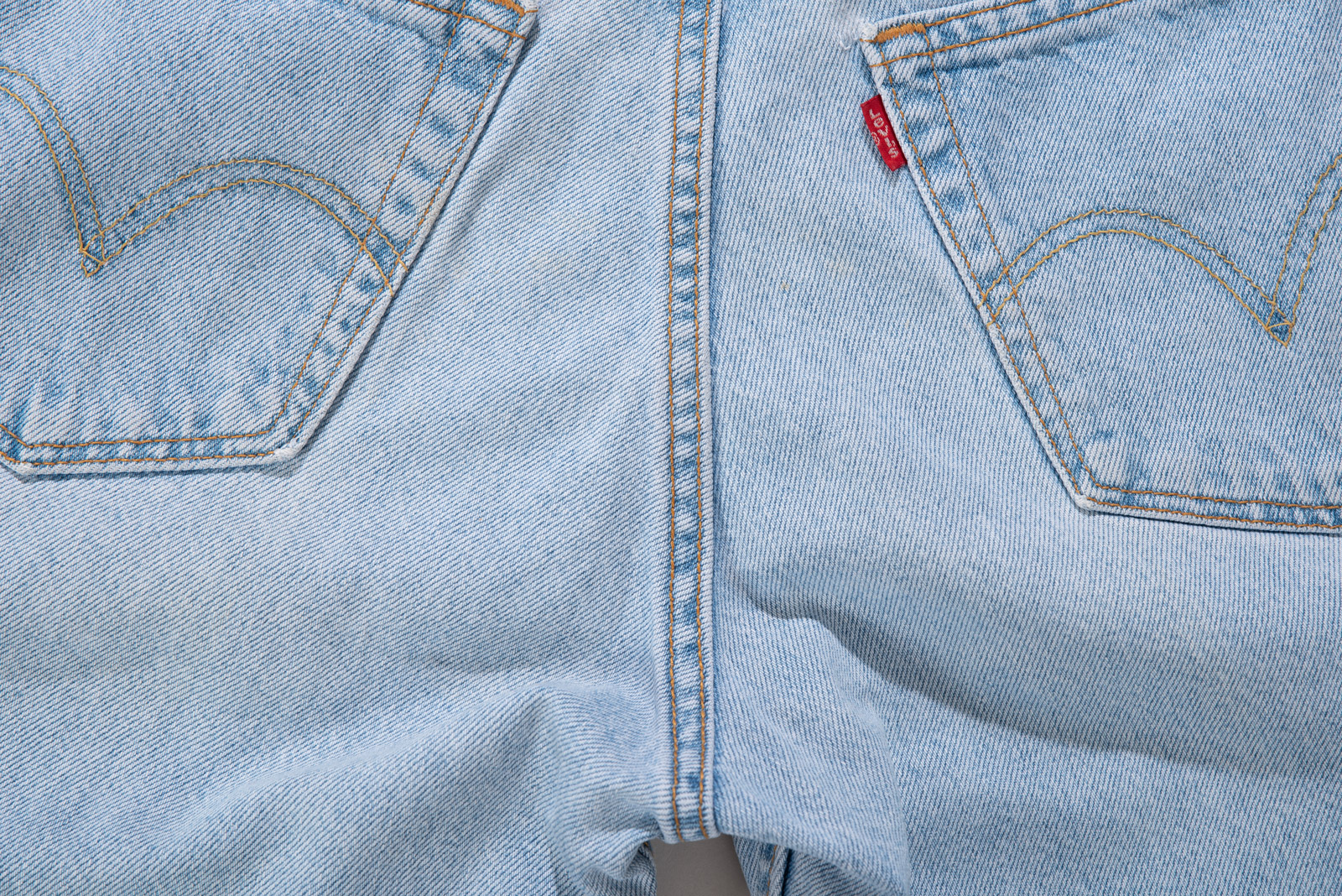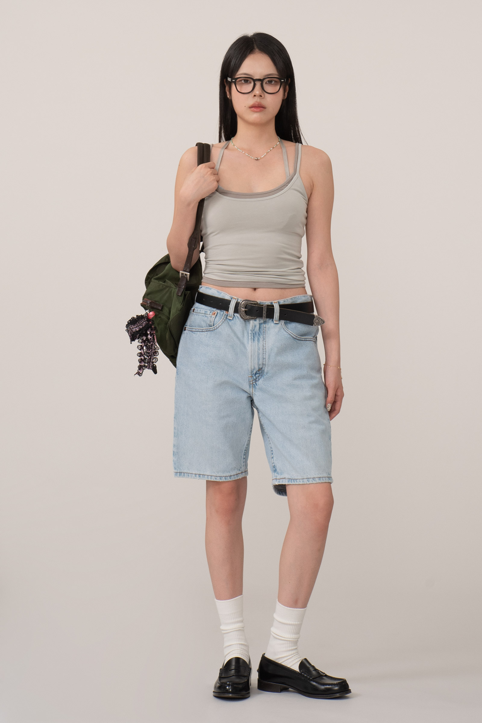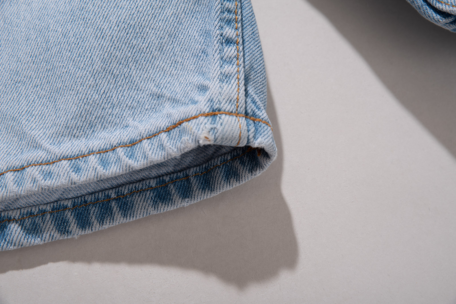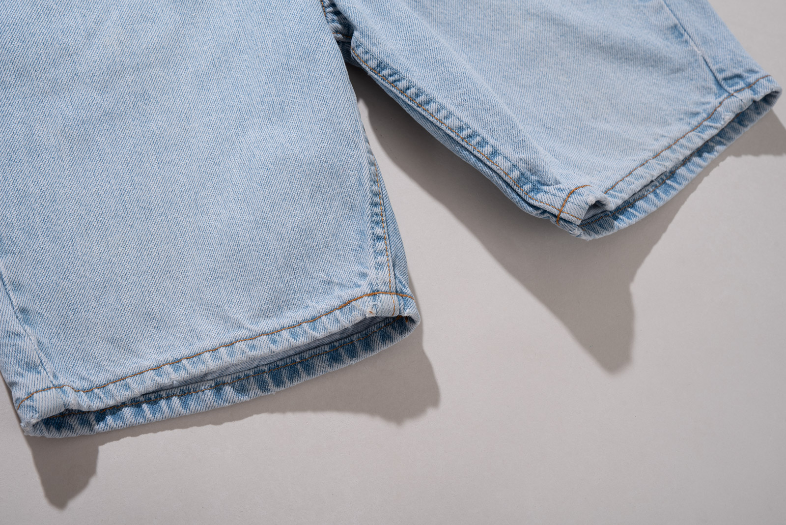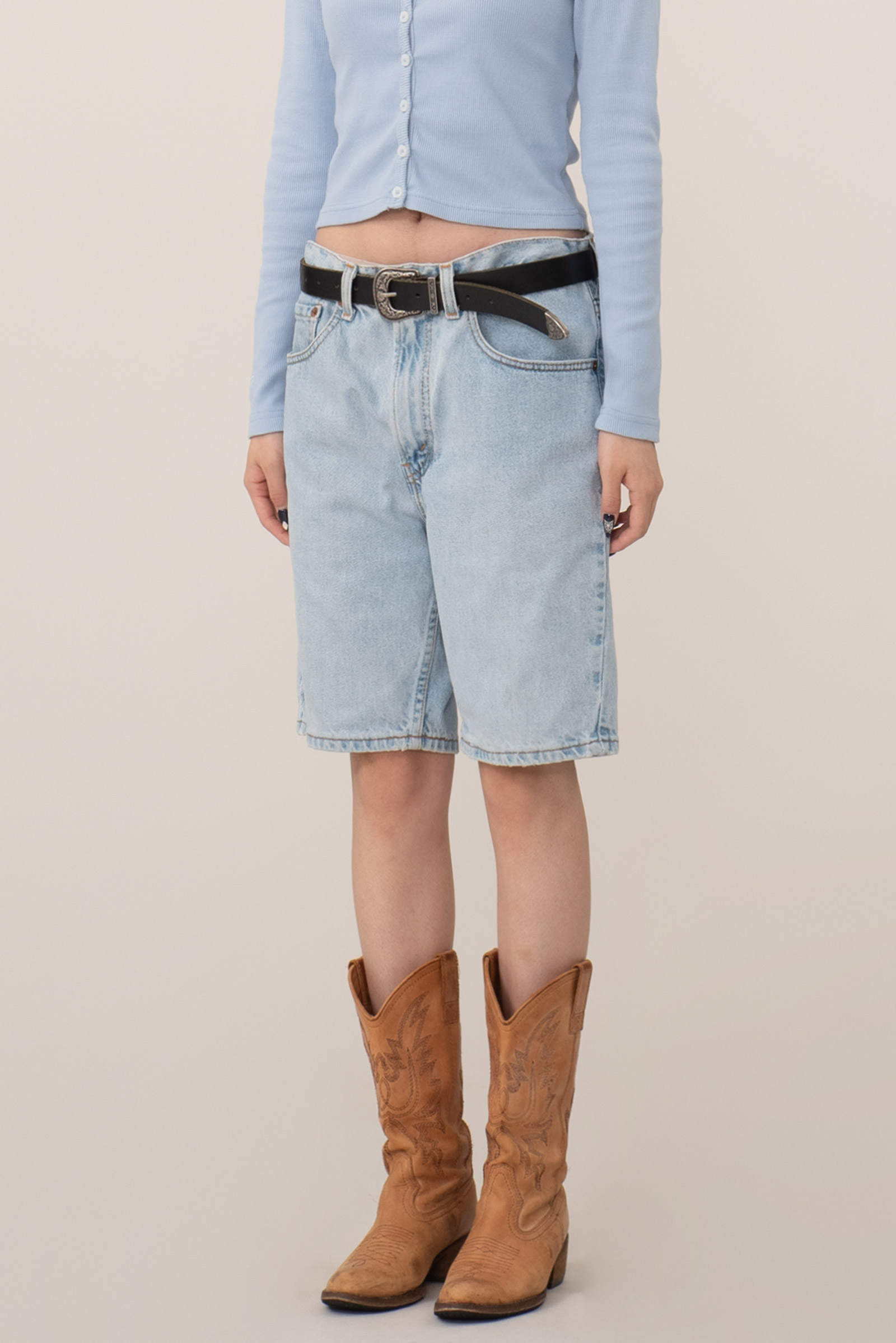 루즈한 힙에 적당한 통, 무릎 위로 올라오는 기장감 등 조화로운 실루엣이 일품이며 미국에서 제작된 피스라 두툼하고 러프한 원단에 퀄리티도 굉장히 좋아요.