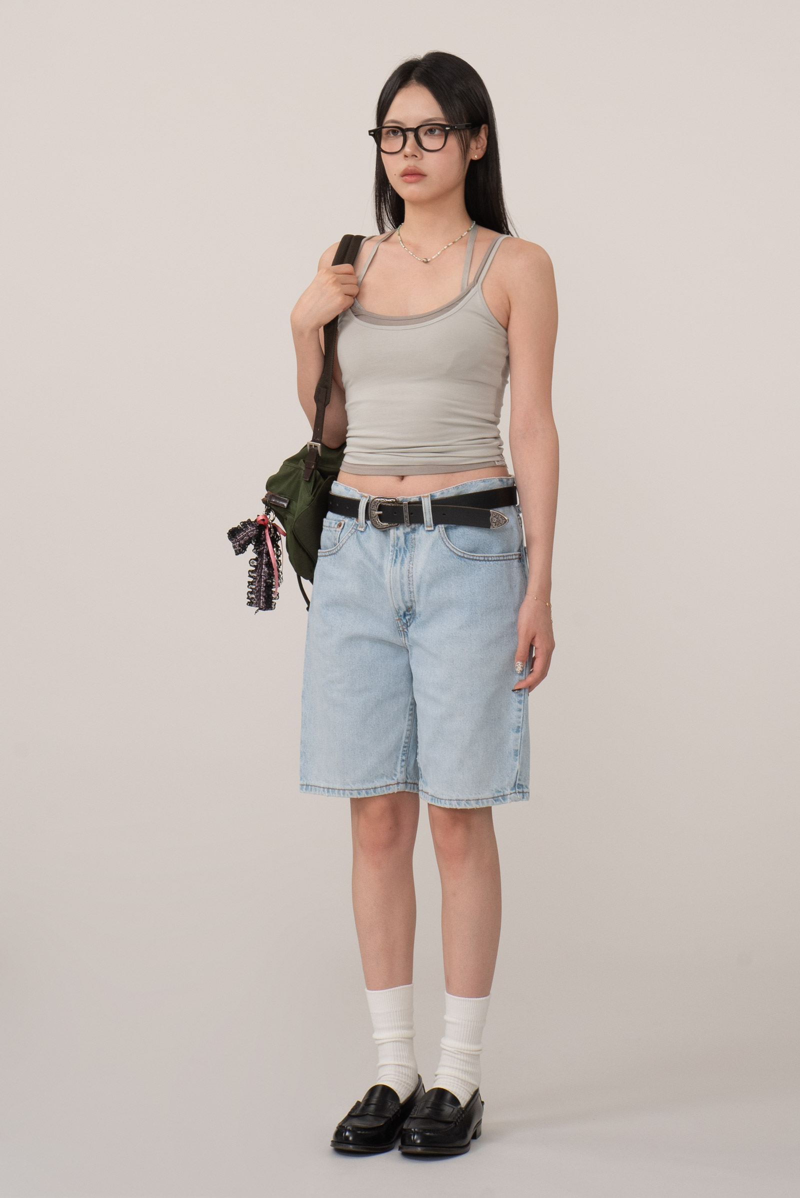 표기 32입니다만 실측으로는 30 정도, 26 착용하는 모델은 벨트 후 편안하게 연출하였습니다.