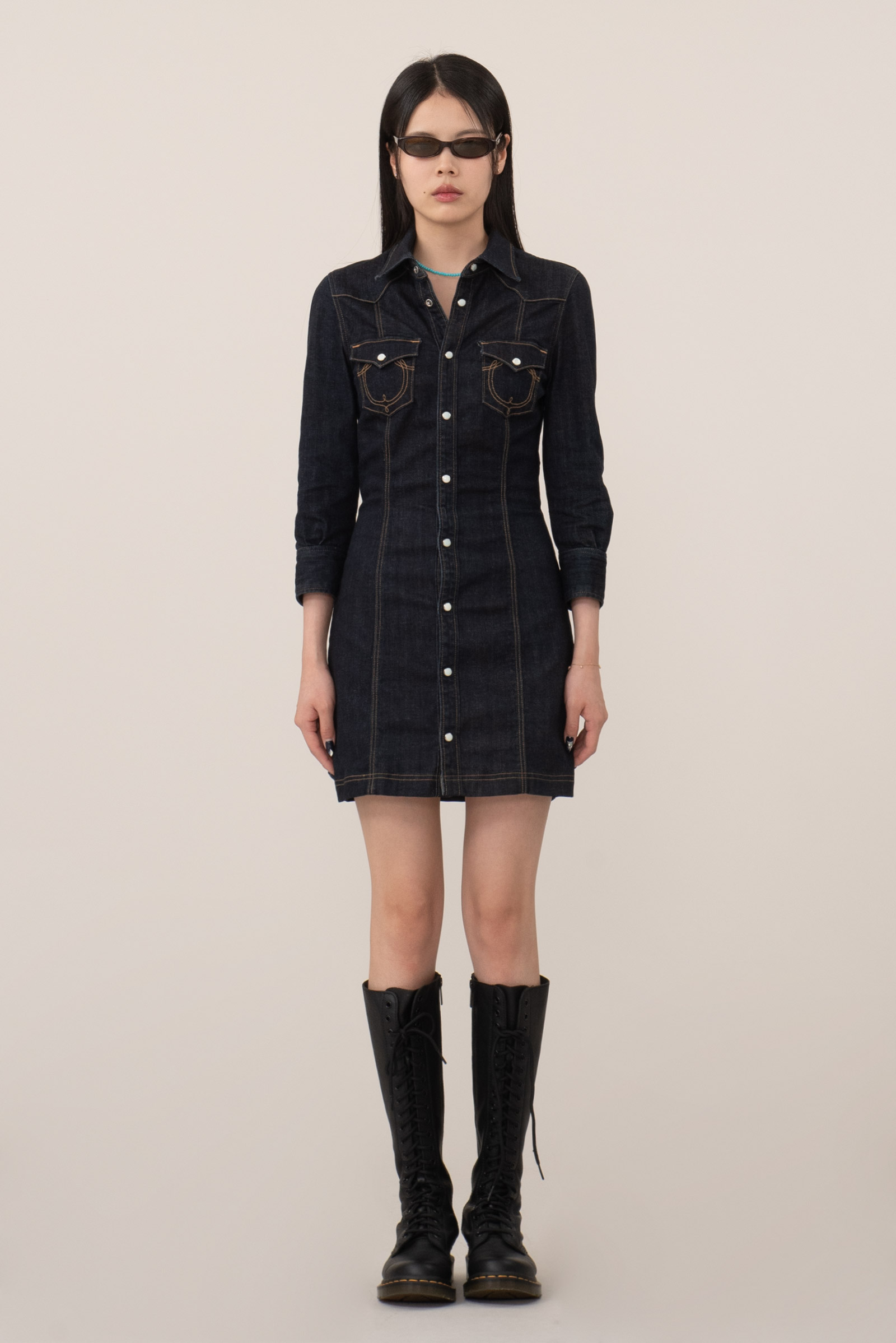 오늘 소개해 드리는 피스는 데님으로 제작된 원피스인데요.