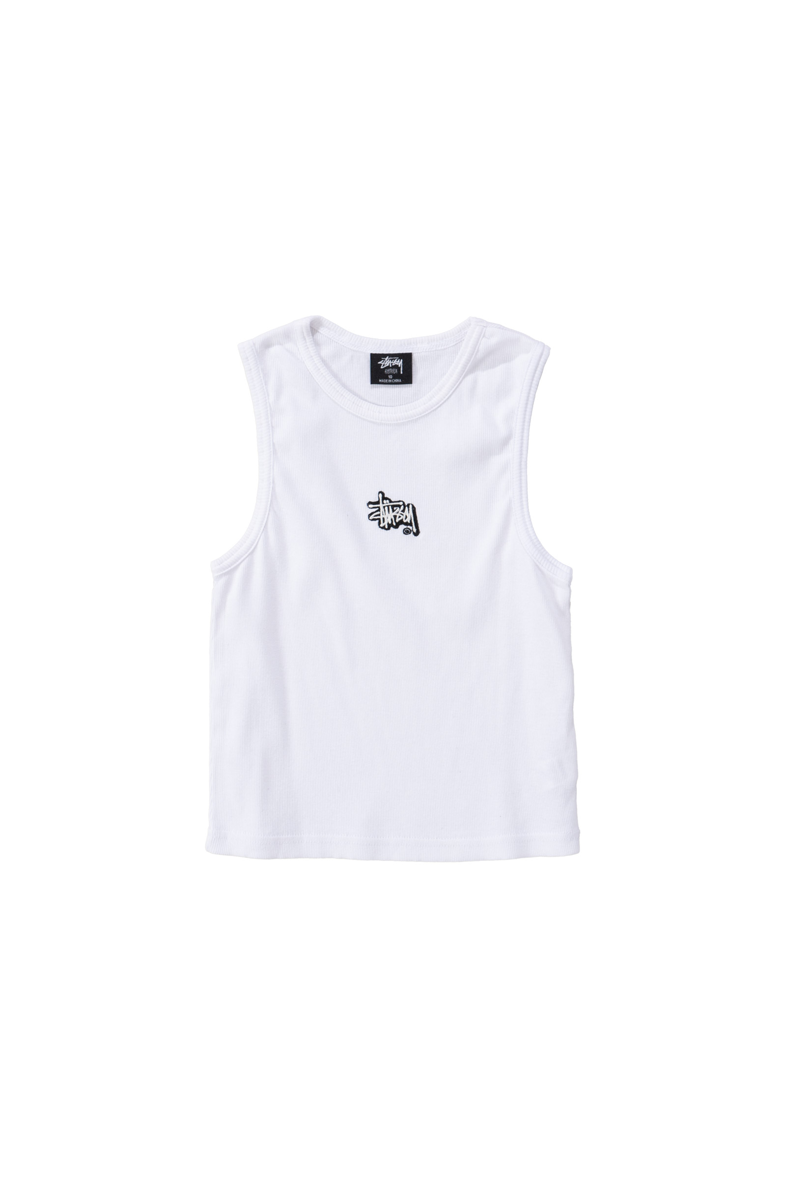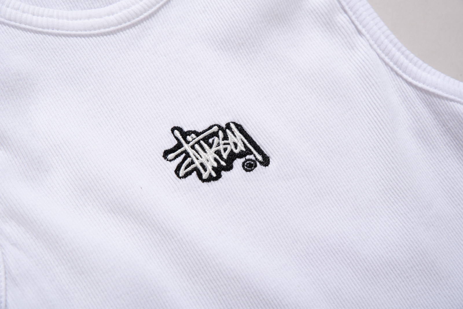 ▫comment - 스투시 로고 자수가 돋보이는 화이트 슬리브리스입니다.