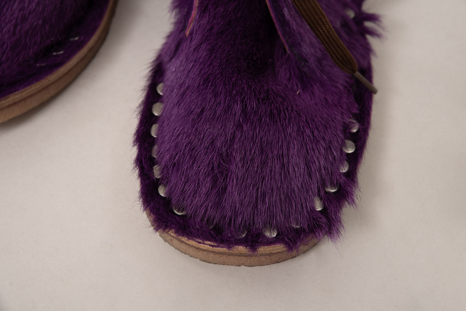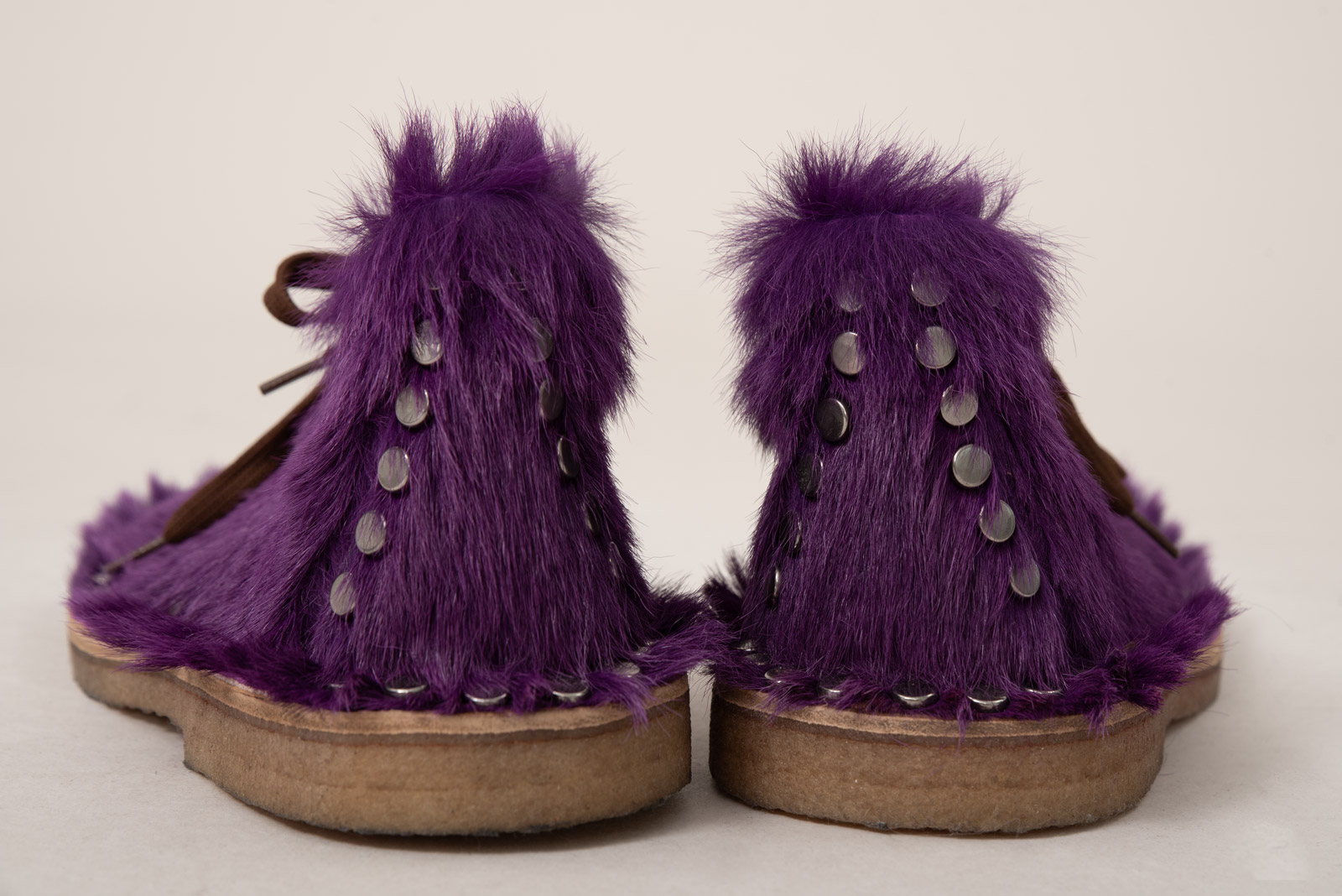 퍼 디자인과 편안한 크레페솔, 국내에서 보기 힘든 레어 한 제품이며 시착만 한 미착용 새 제품으로 입고되어 깨끗한 크레페솔, 윤기 나는 퍼와 스터드 디테일 등 깔끔하고 좋은 컨디션으로 즐기실 수 있는 피스랍니다.