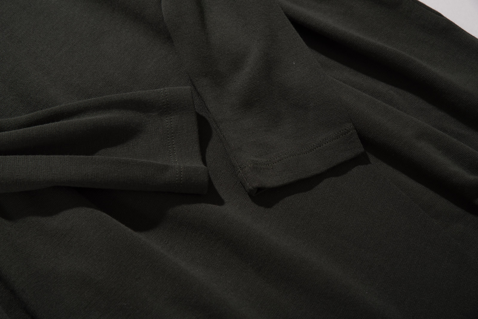 비스코스와 폴리, 엘라스틴으로 구성된 소재라 부드러운 착용감, 아래로 차르륵 무게감 있게 떨어지는 텍스처가 일품이네요.