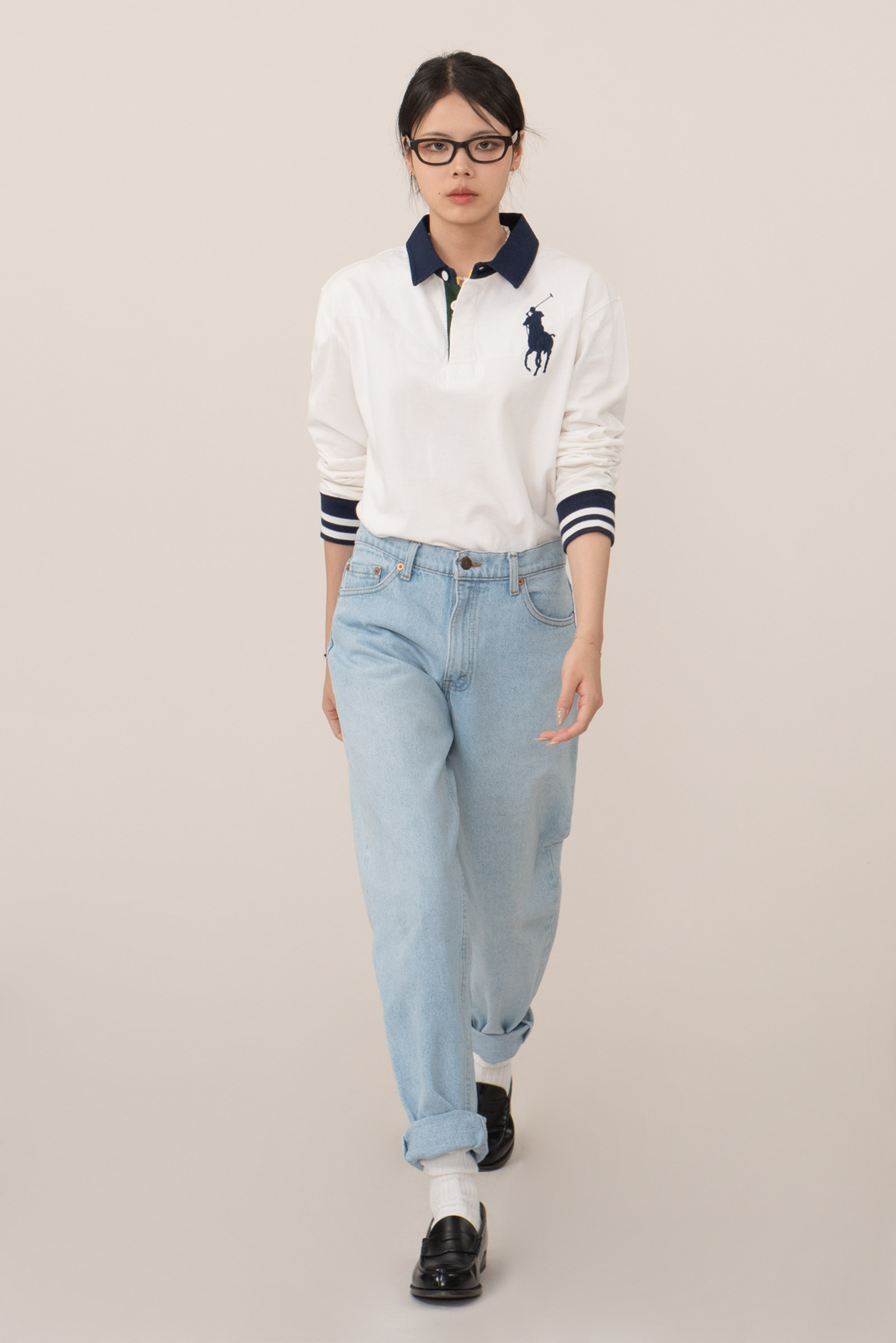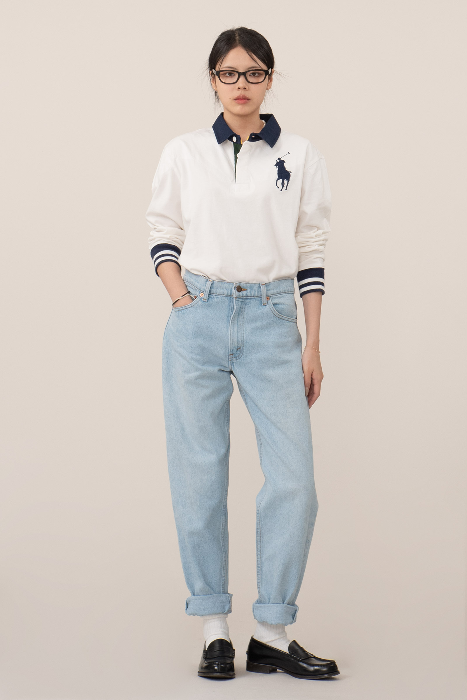 501보다 힙과 허벅이 더 넉넉한 실루엣을 가지고 있어서 편안한 착용감과 다양한 쓰임으로 하나쯤 소장하시면 손이 자주 갈 아이템이랍니다.
