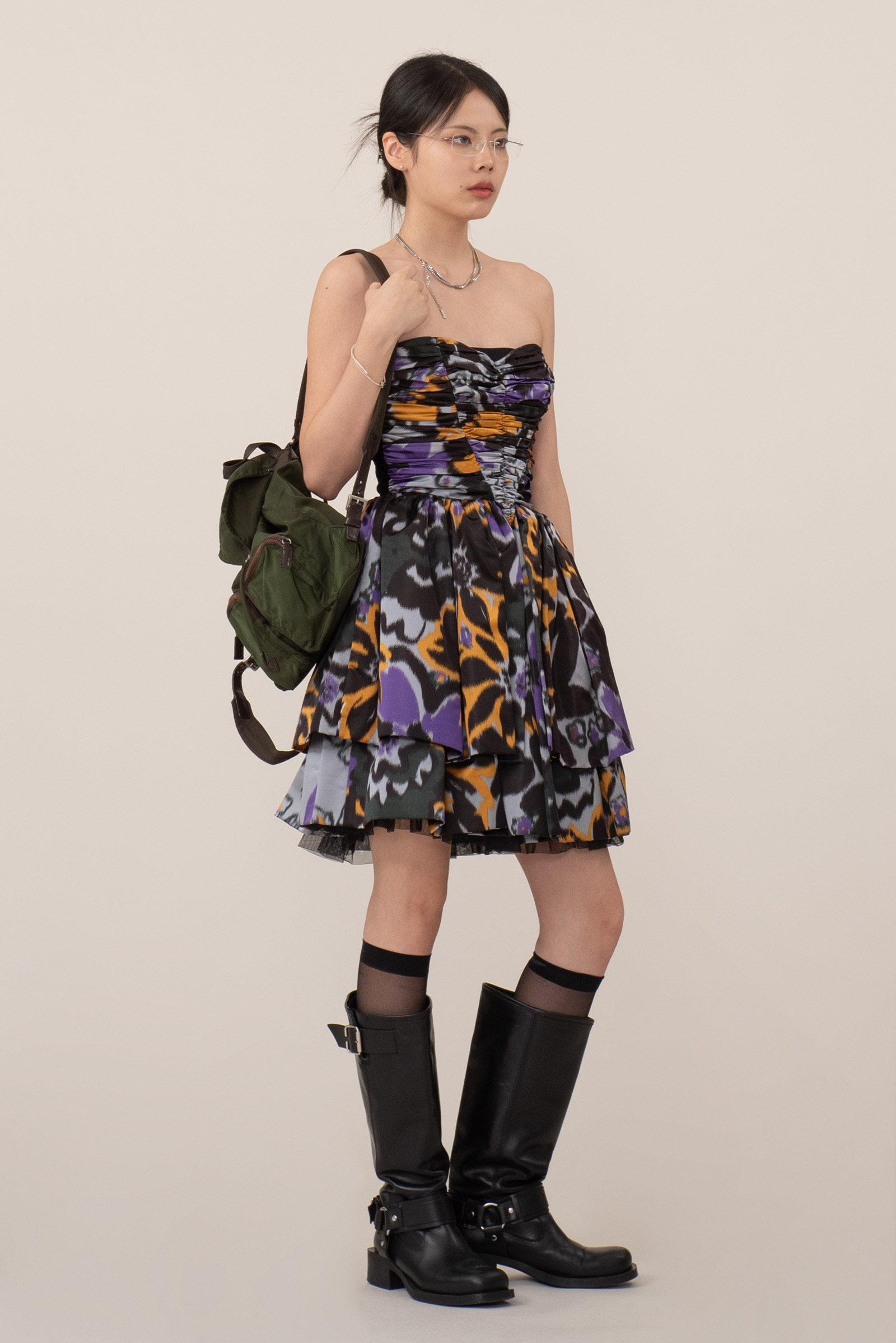 오늘 소개해 드리는 제품은 미우미우 2013 fw 컬렉션 미니 드레스로 블랙과 바이올렛을 중심으로 한 추상적인 플라워 패턴이 매력적인 피스랍니다.