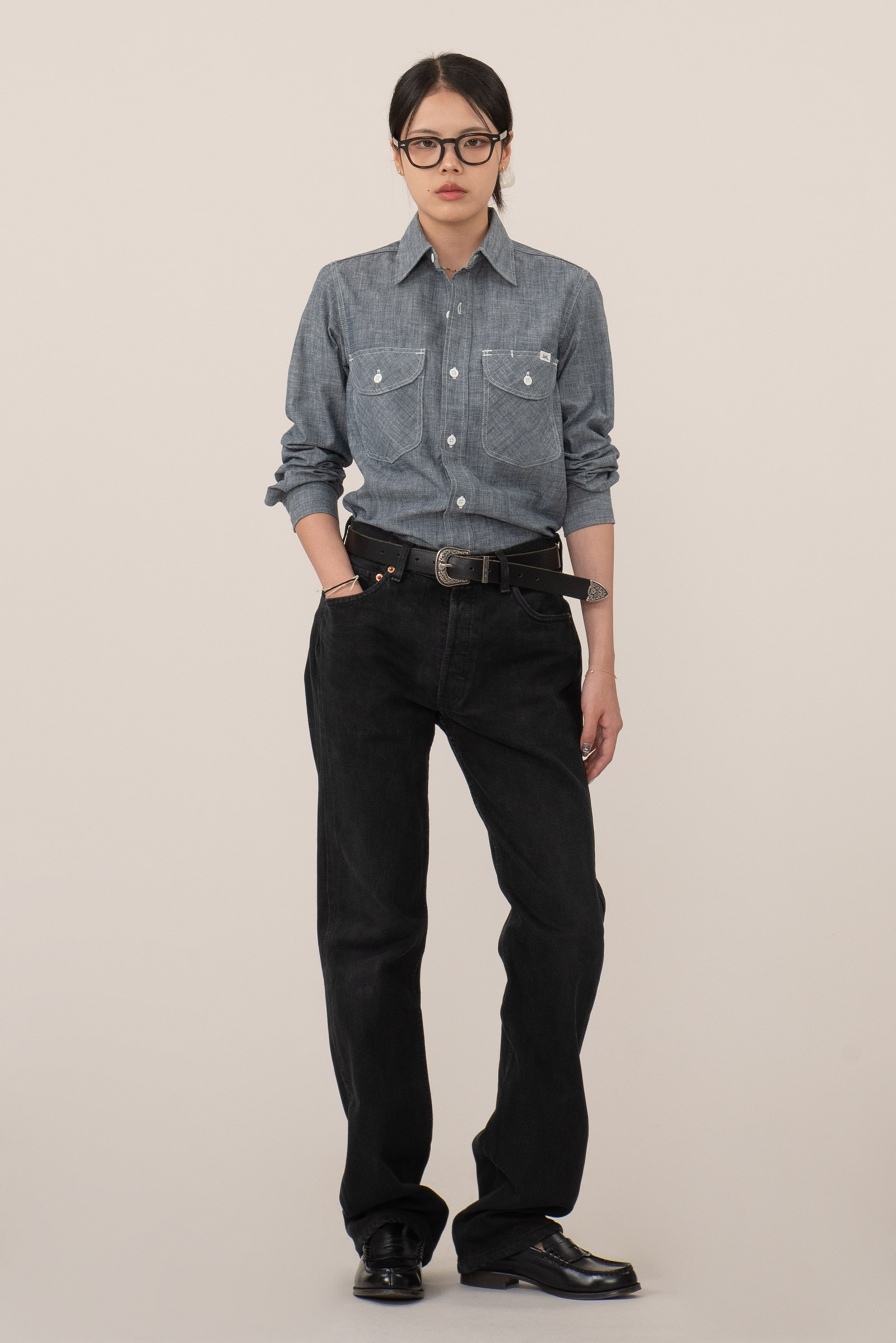 ▫comment - 인디고 염색이 된 Lee 샴브레이 데님 셔츠입니다.