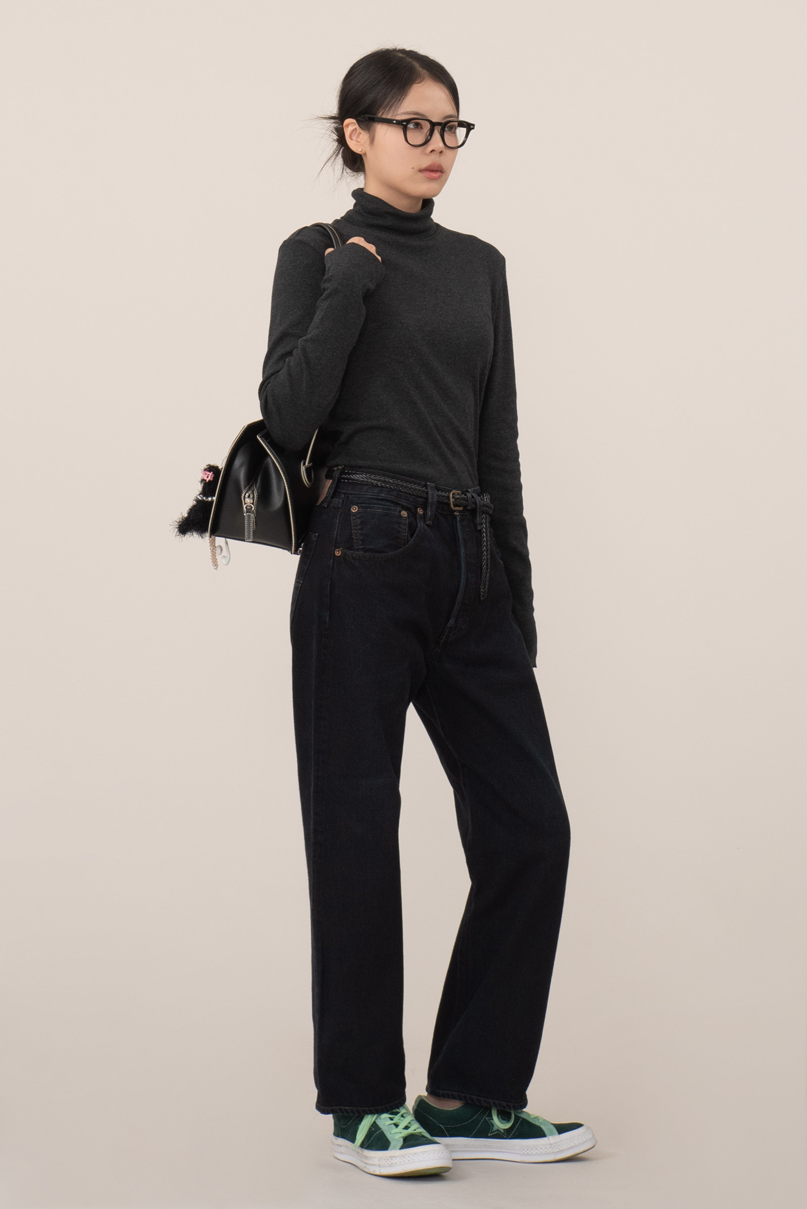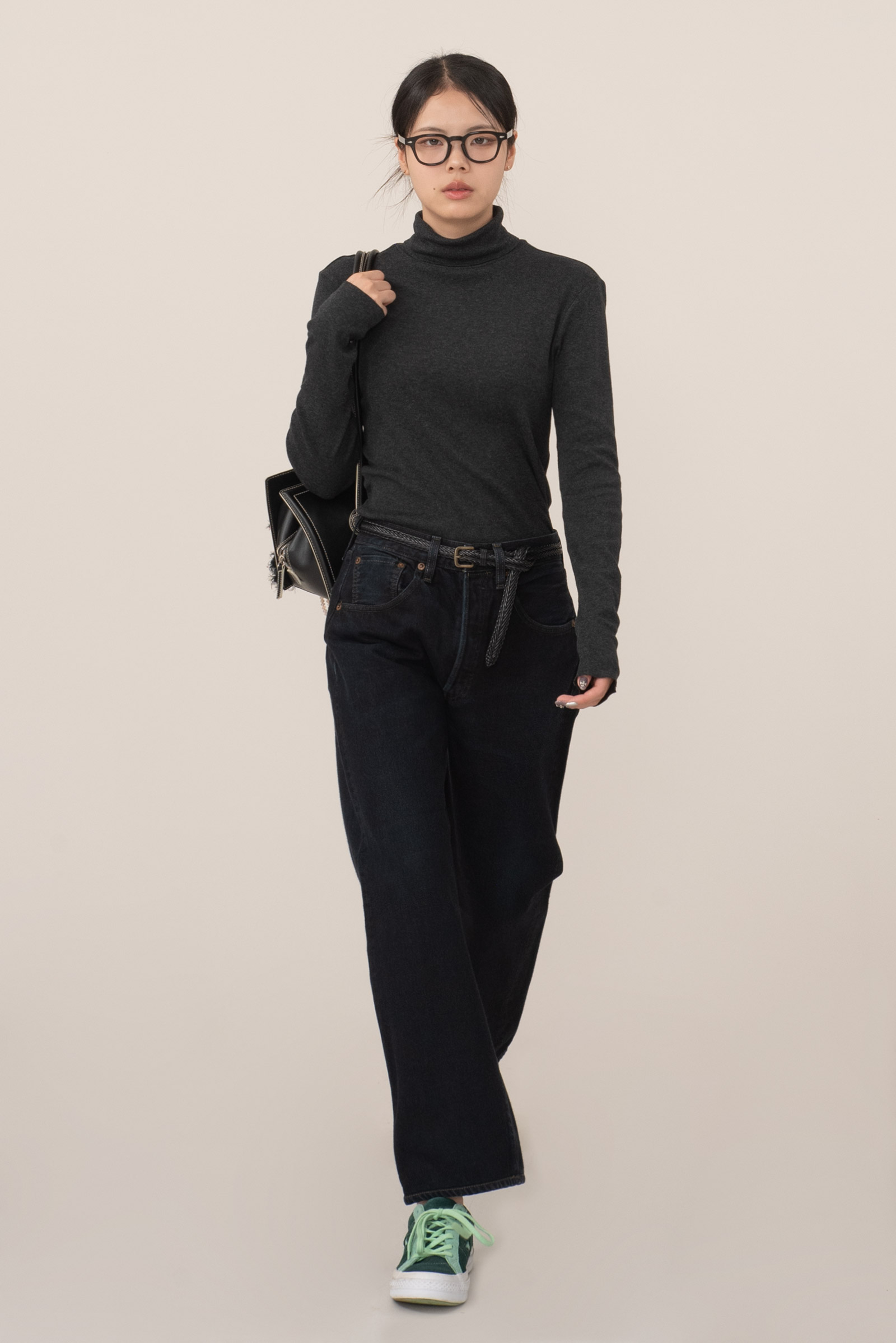 코튼과 혼합이 잘 되어서 신축성 있으면서도 탄탄한 짜임으로 55 추천드리며 짙은 차콜 컬러라 시니컬하게 툭 걸쳐 입기 좋아요.