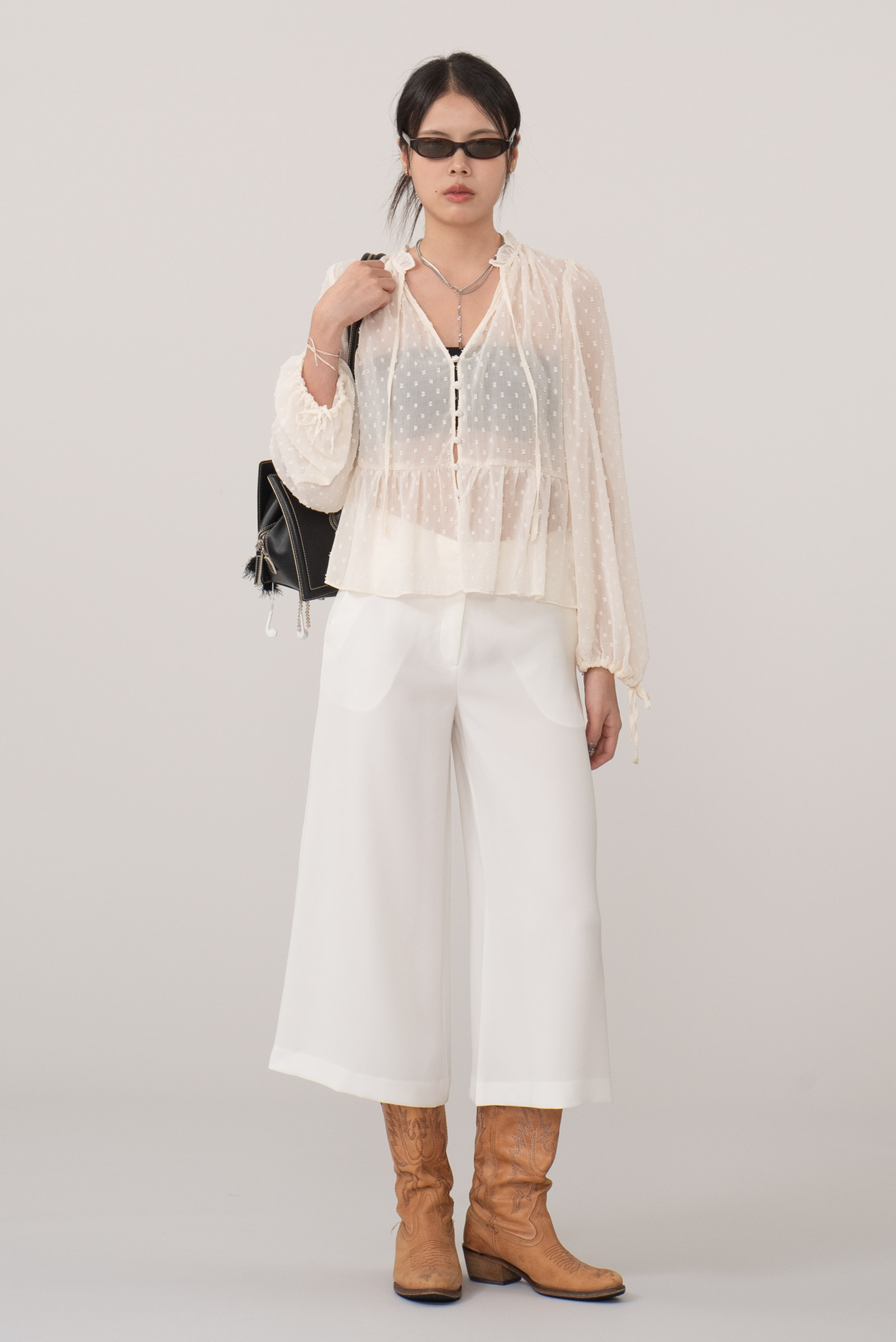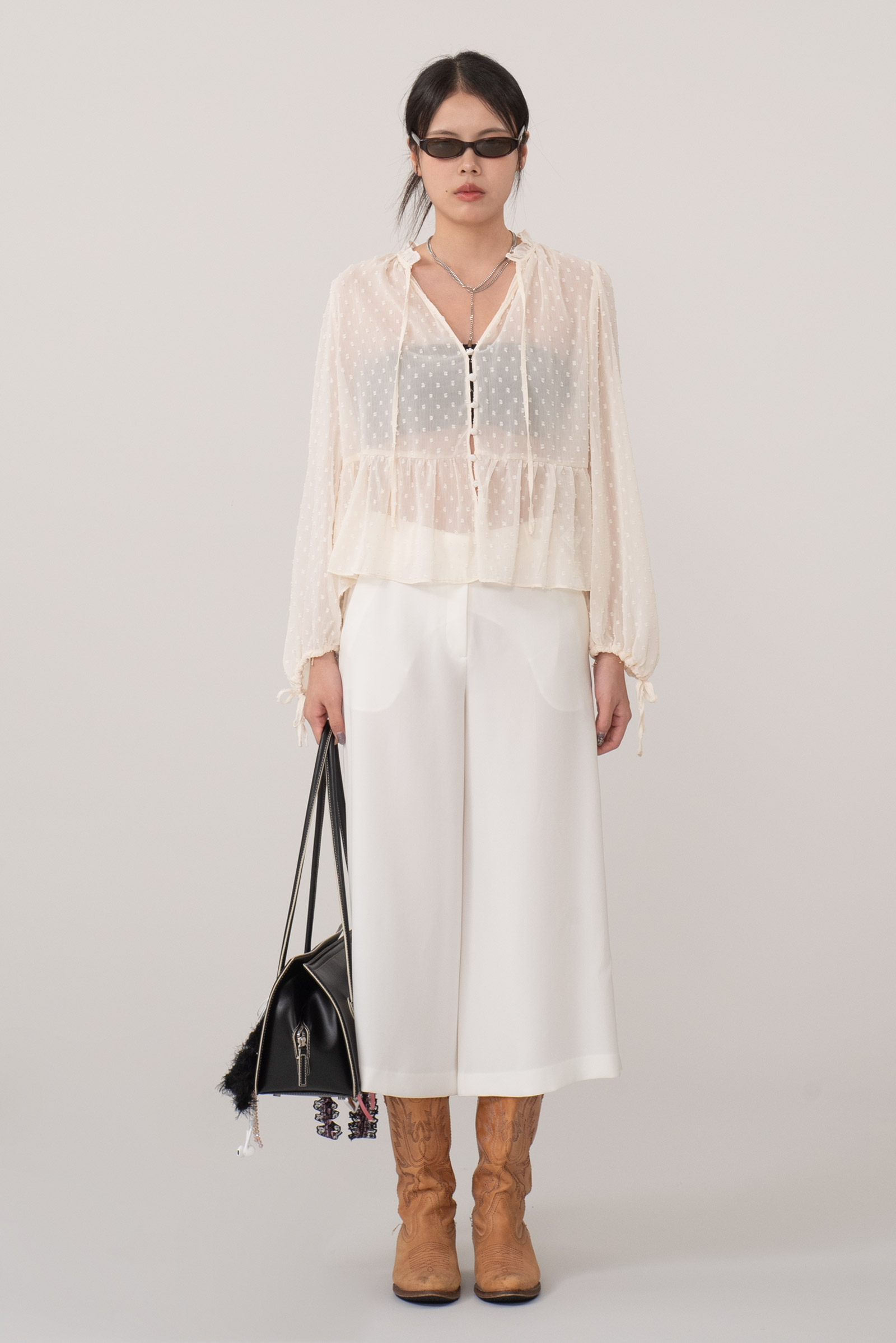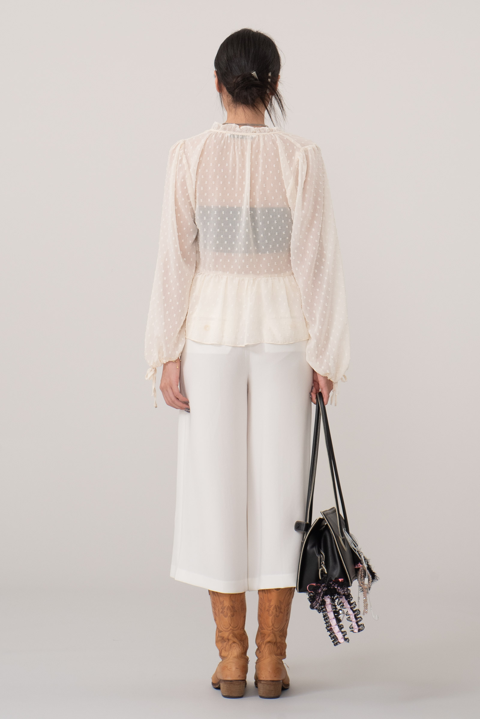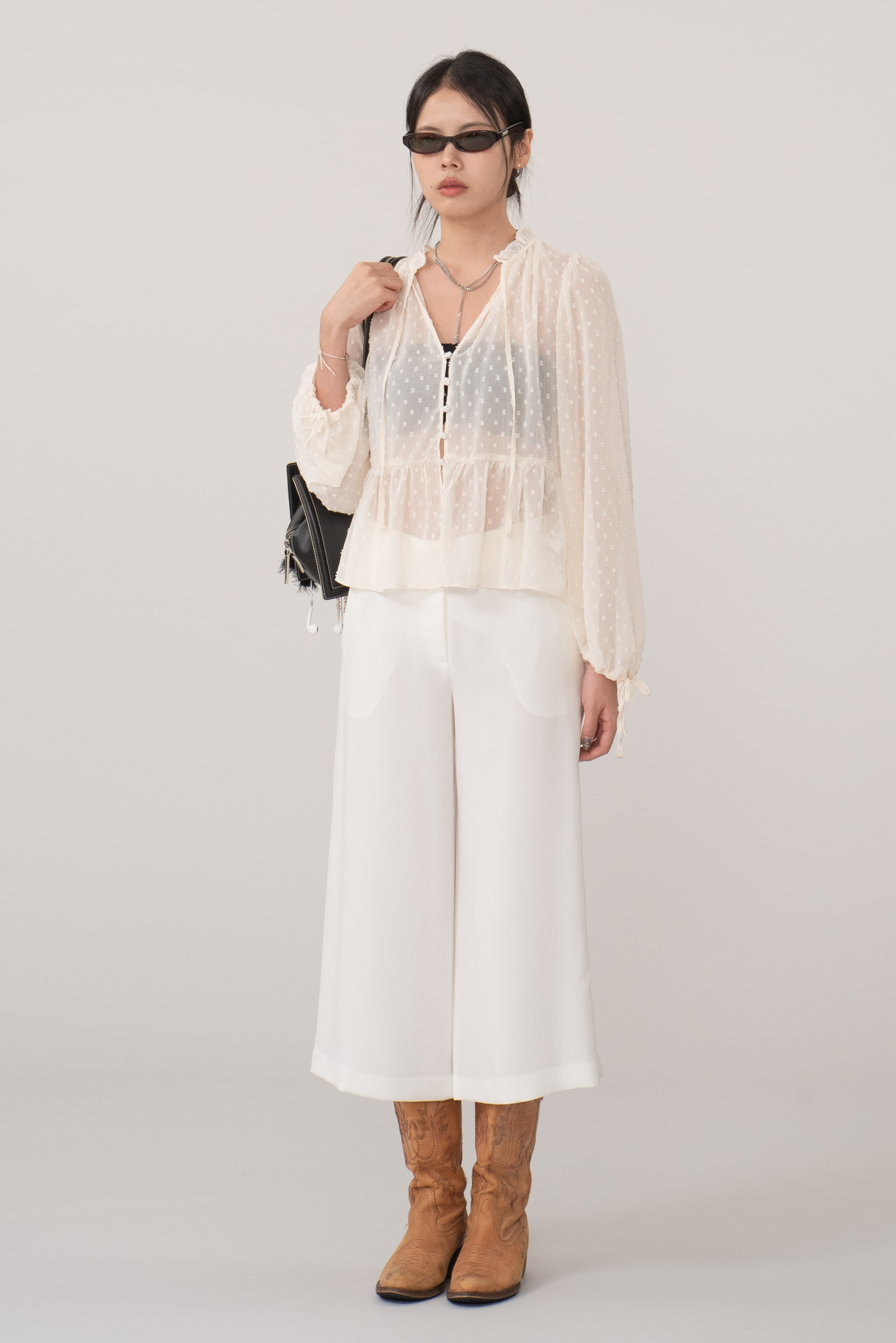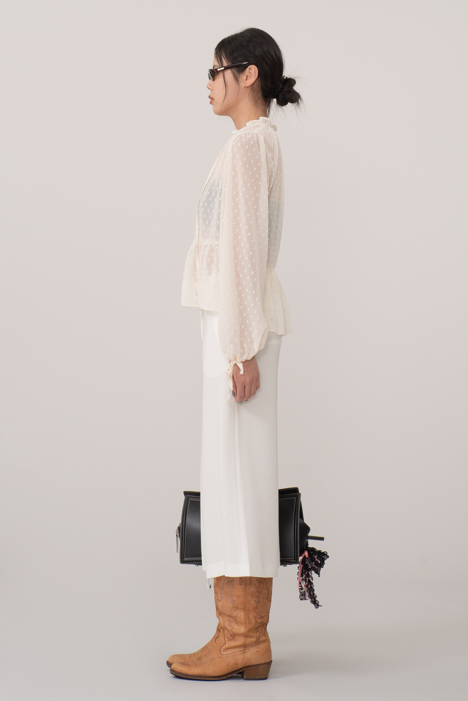 역시나 클래식한 디자인, 따뜻한 화이트 컬러임에도 이너 비침이 심하지 않아서 스킨 톤 이너로 신경 써주신다면 부담 없이 착용하실 수 있어요.