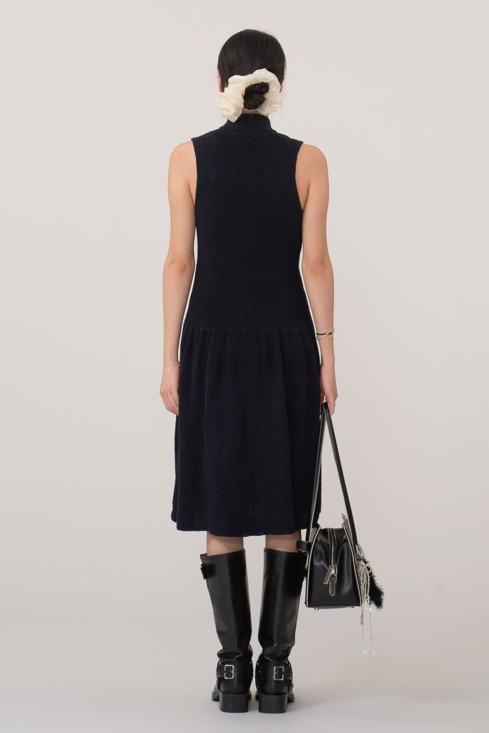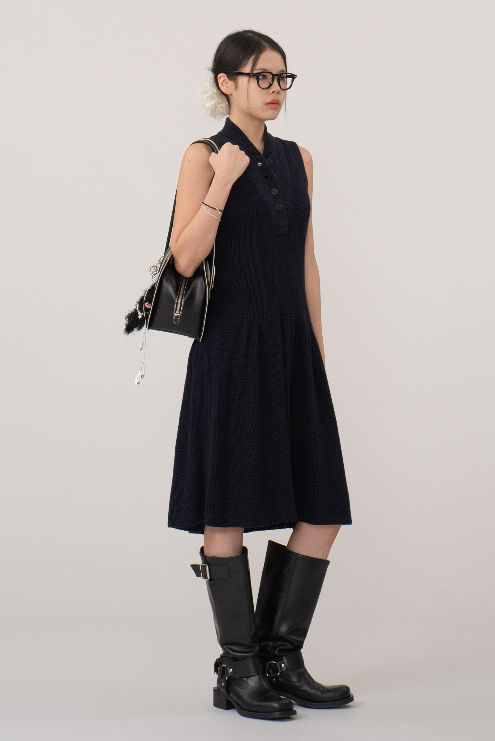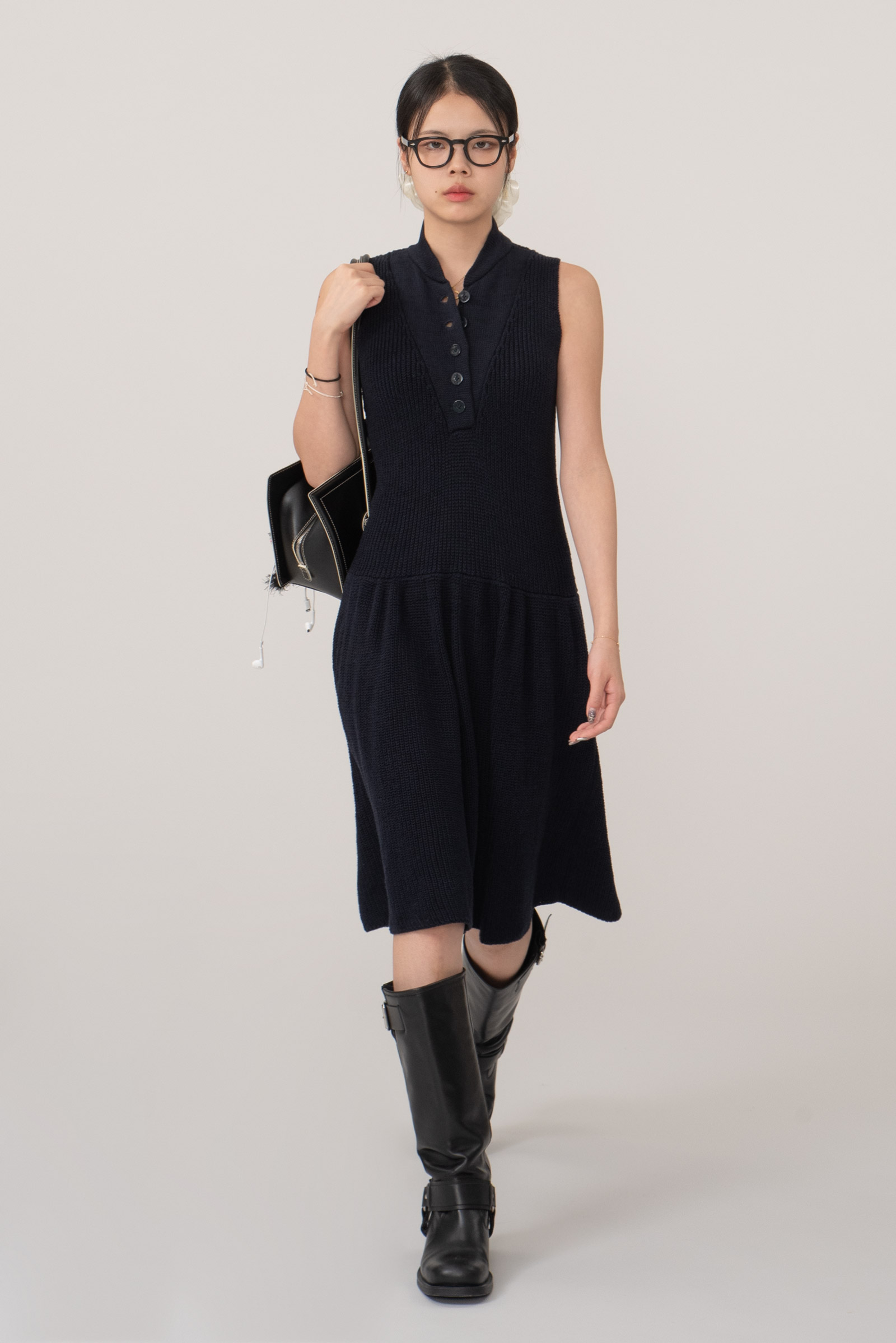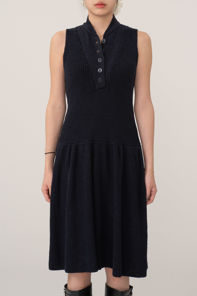코튼 52%, 린넨 46% 블렌딩된 소재로 무게감 있게 아래로 차르륵 떨어지는 실루엣, 심플하지만 유행을 타지 않고 세련되게 입어지는 네이비 컬러에 니트 짜임과 버튼 외 미니멀한 디자인 등.