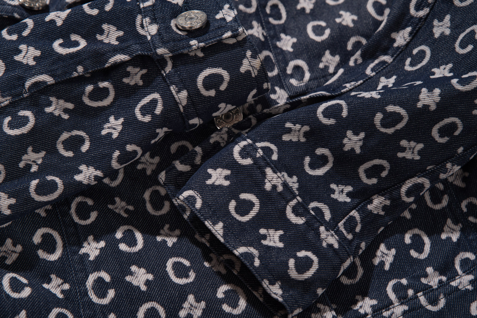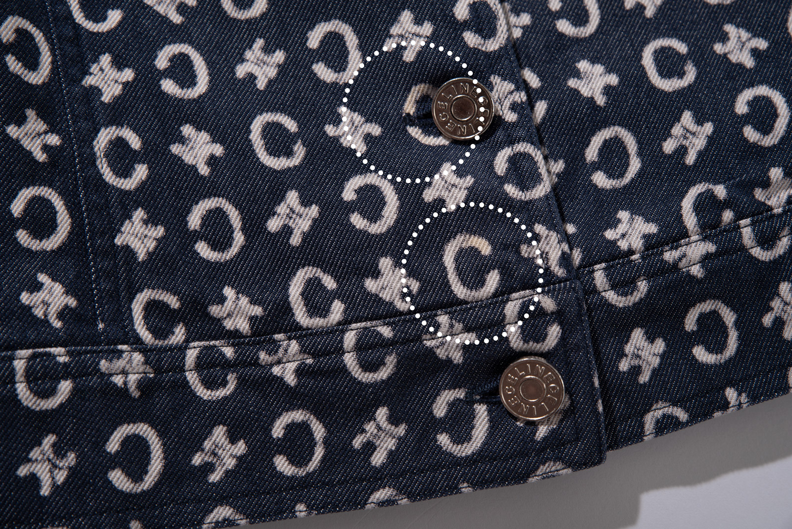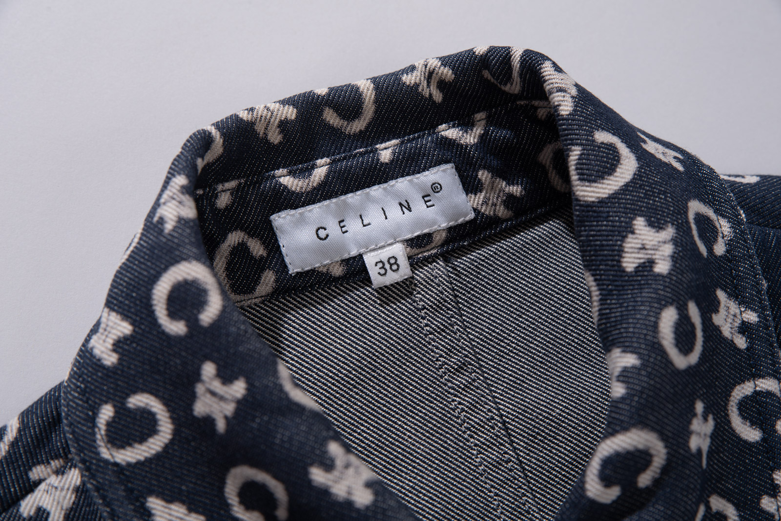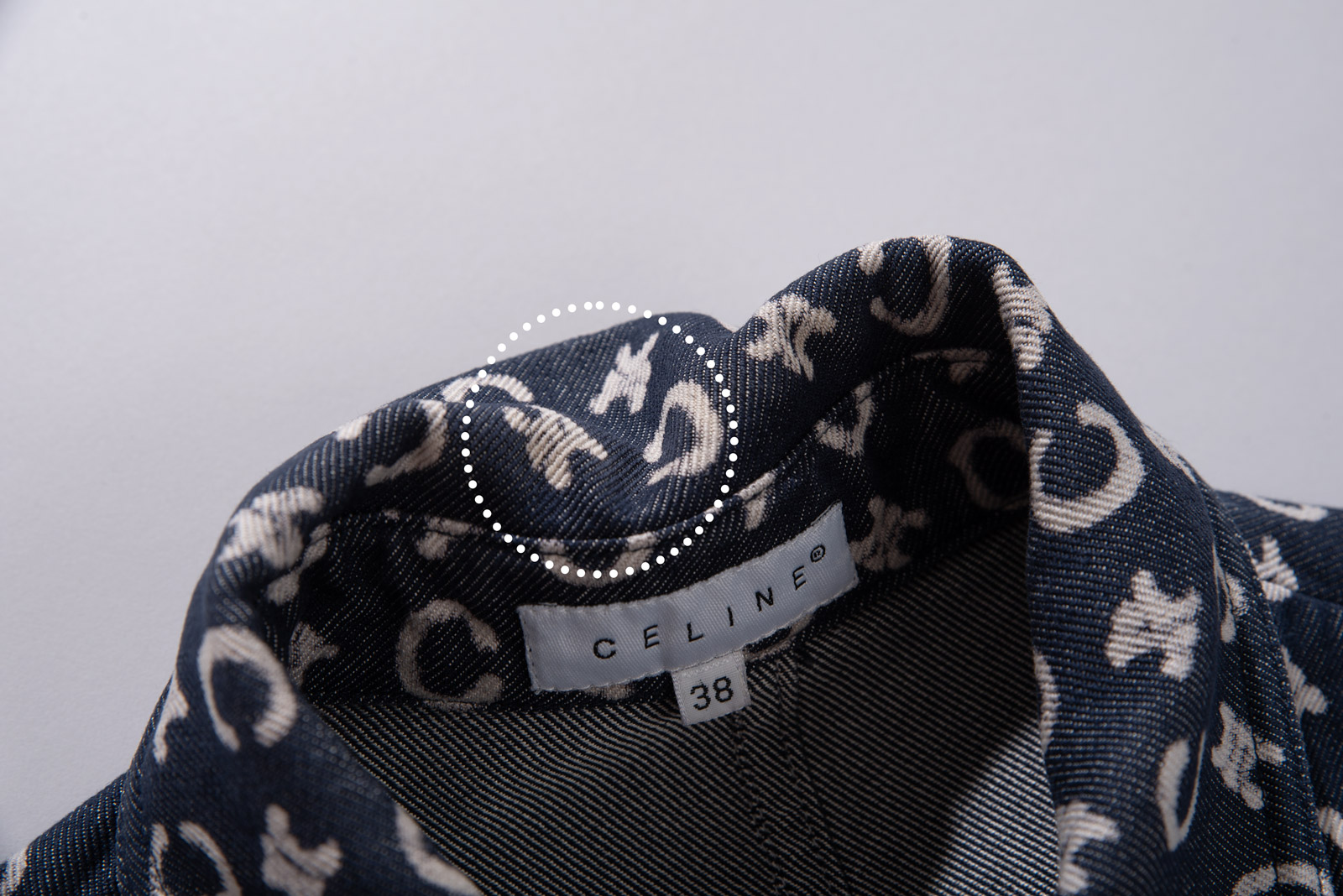 오늘 보여드리는 데님 재킷은 슬림한 핏 감에 능직 결이 느껴지는 텍스쳐, 프렌치 테일러링 및 셀린의 시그니처 트리오페 패턴이 화려한 피스로 아이코닉한 느낌이 강하죠.