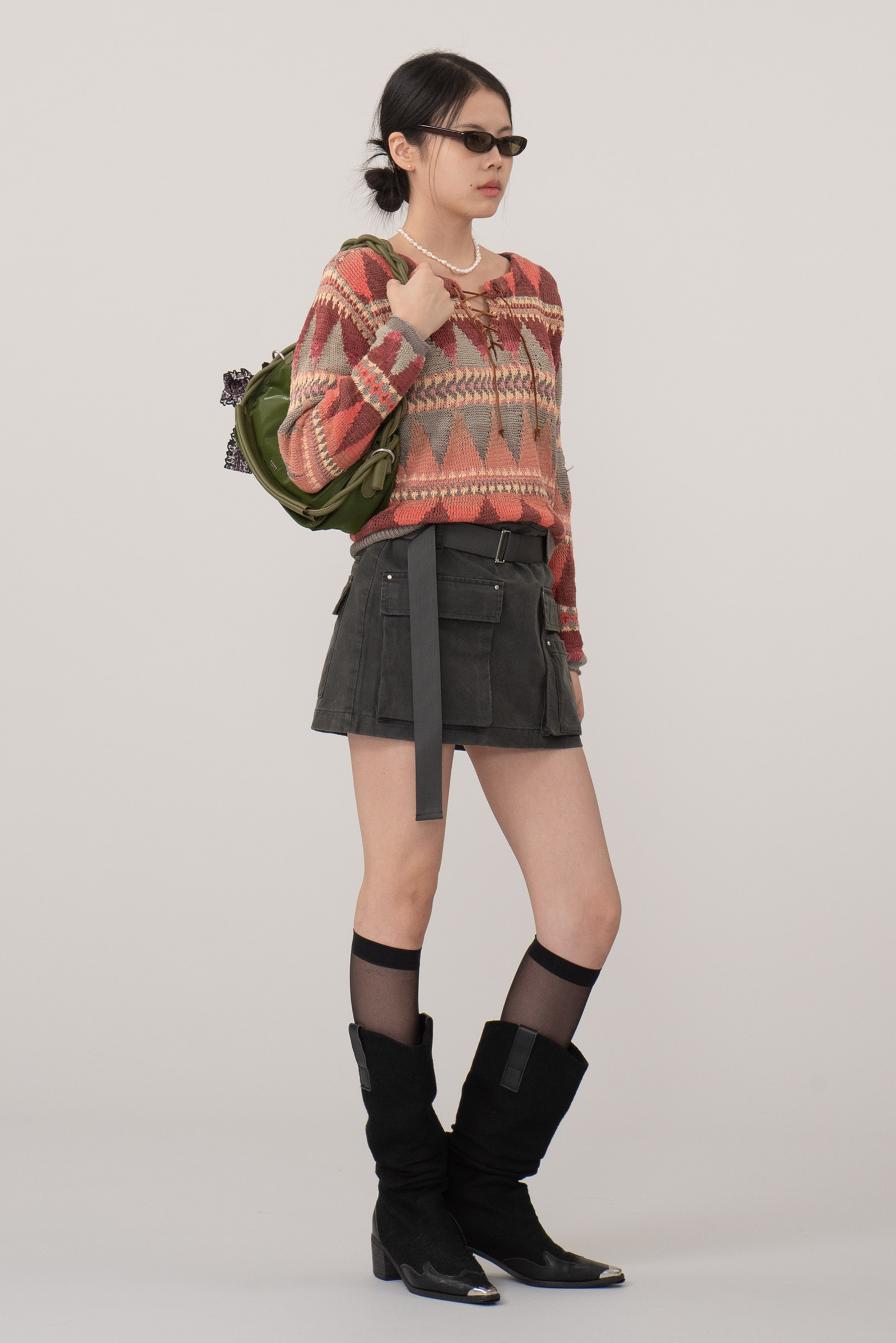사막의 선인장, 흙빛, 하늘의 푸른색 등 자연에서 볼 수 있는 다양한 색상과 패턴 사용되었으며 가장 흔한 지그재그 기하학무늬를 남서부 지역에서 착용하기에 적합한 굵은 실로, 친환경적인 소재로 만들었답니다.
