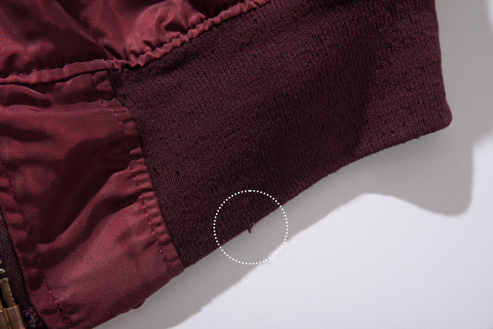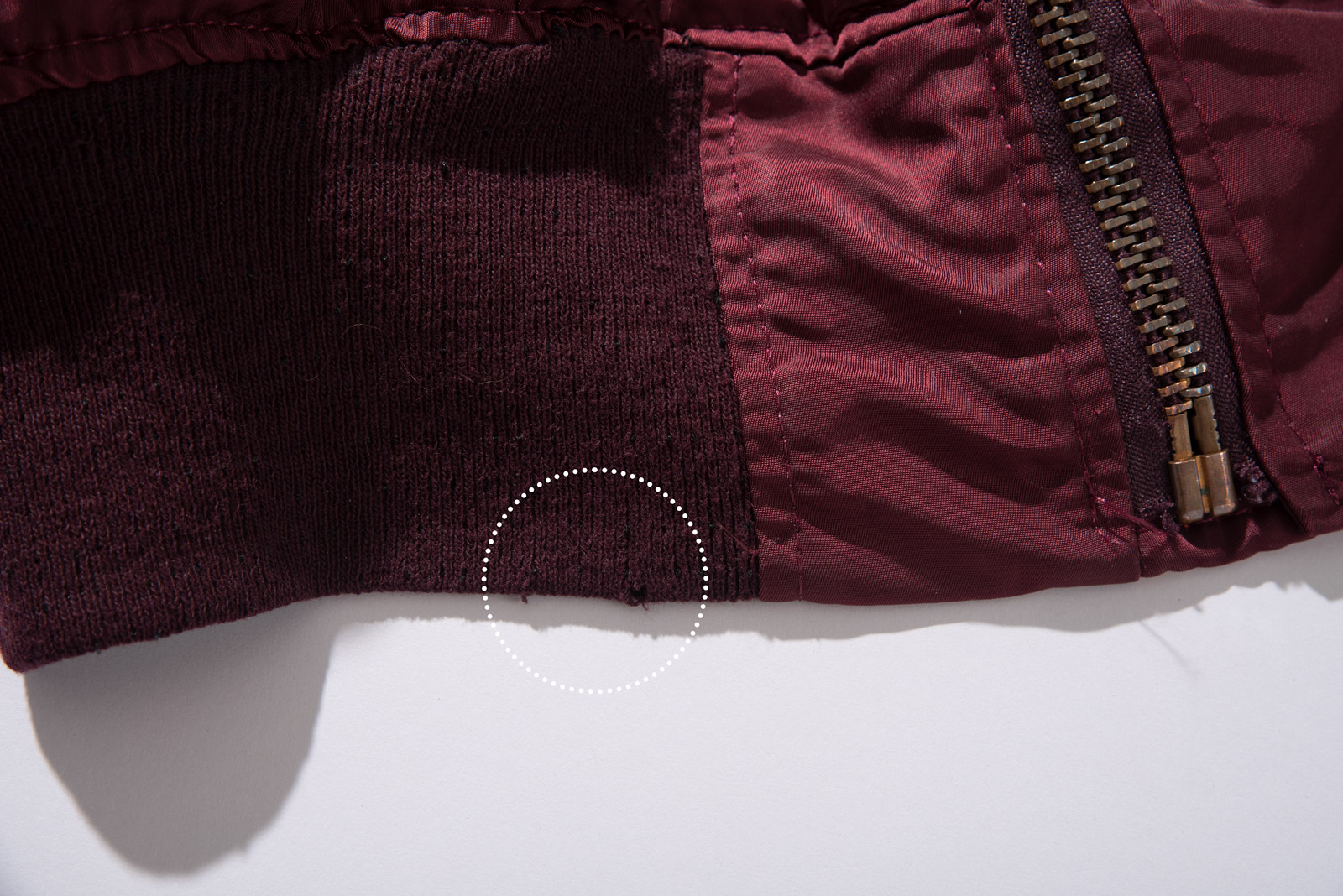 밑단과 소매 시보리 사용감, 자잘한 데미지 제외하고는 크게 흠잡을 만한 것은 없네요.