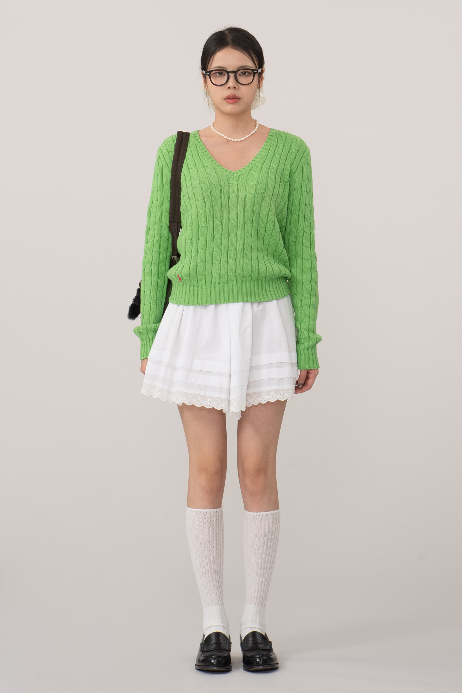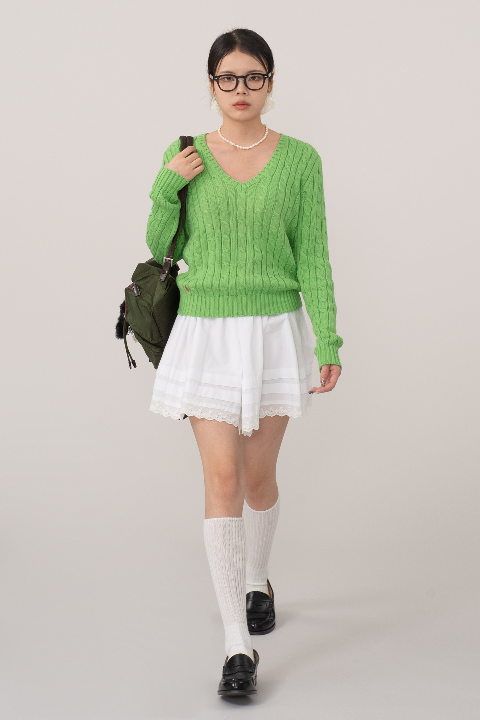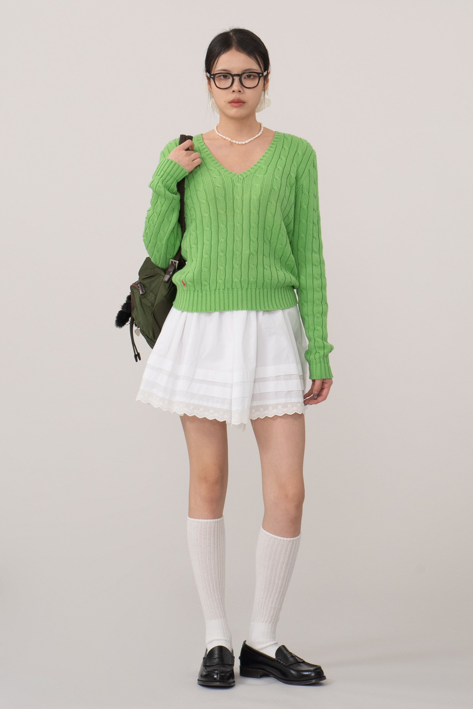 큰 디테일 없이 케이블 짜임만으로 캐주얼한 데일리룩부터 포멀한 오피스룩까지 활용도가 높고 청바지나 스커트, 숏츠 등 쓰임이 굉장히 다양해요.