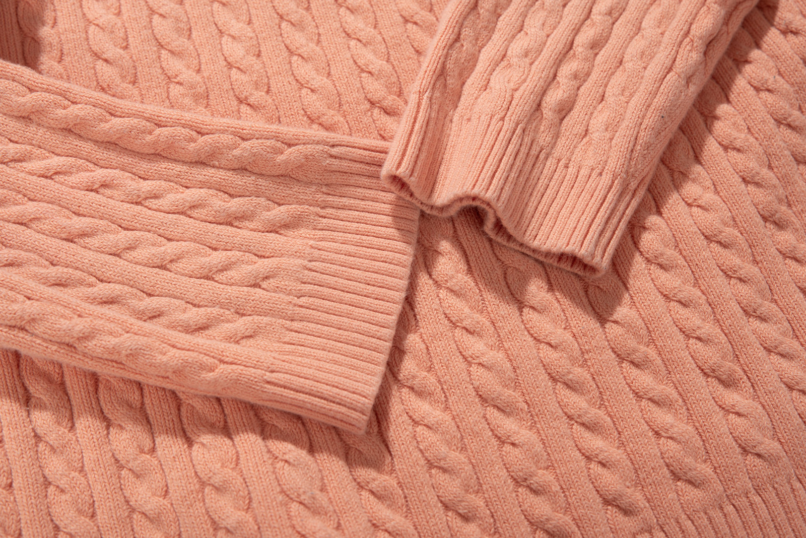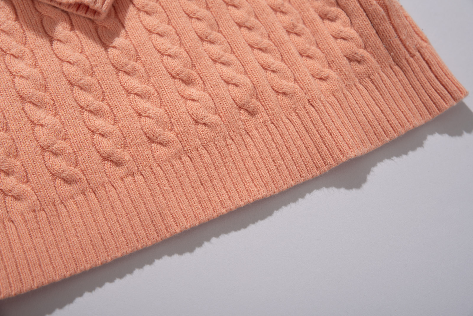 살구 컬러에 오밀조밀한 케이블 짜임, 코튼에 엘라스틴 가미되어 굉장히 보드랍고 편안한 텍스처인데요.