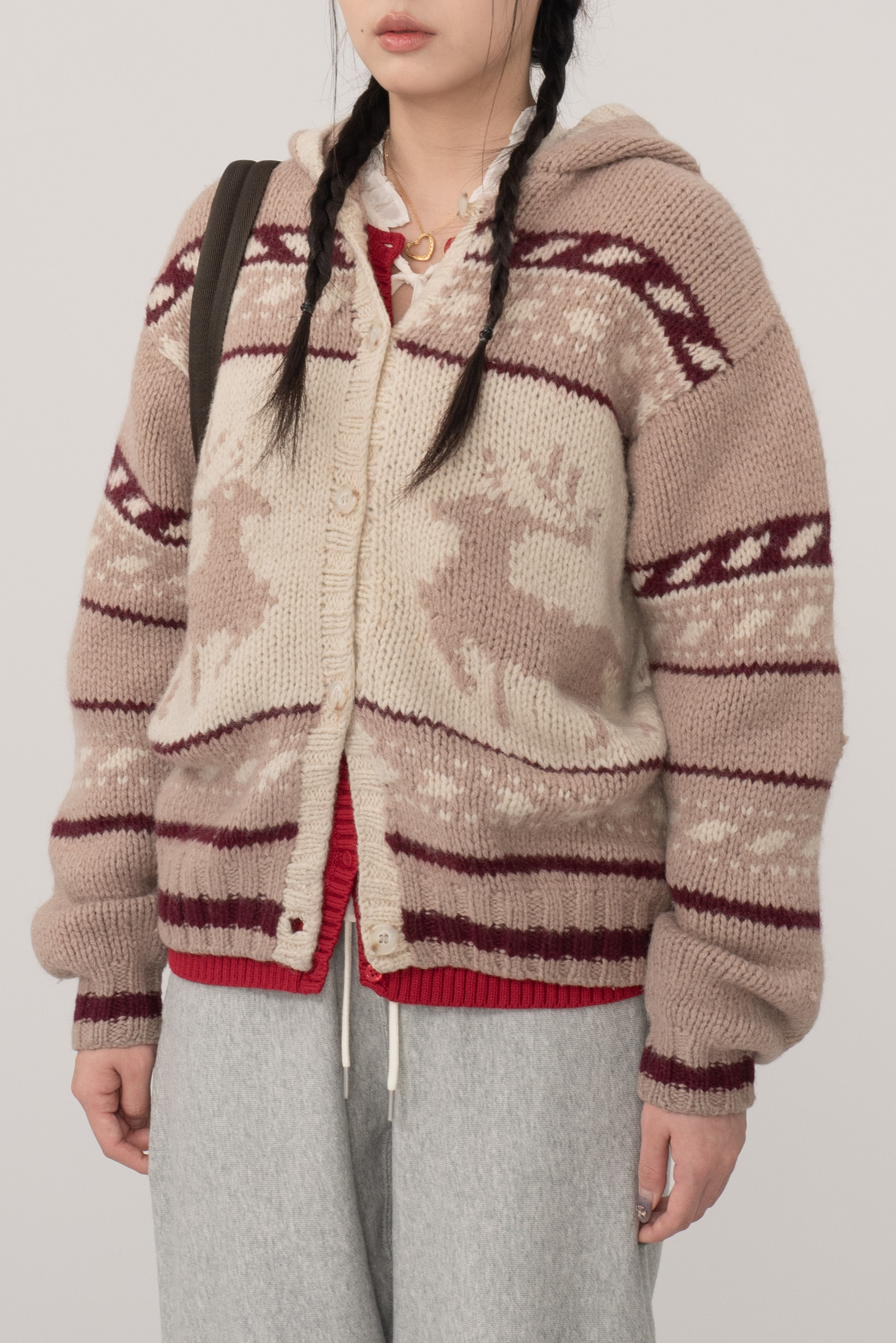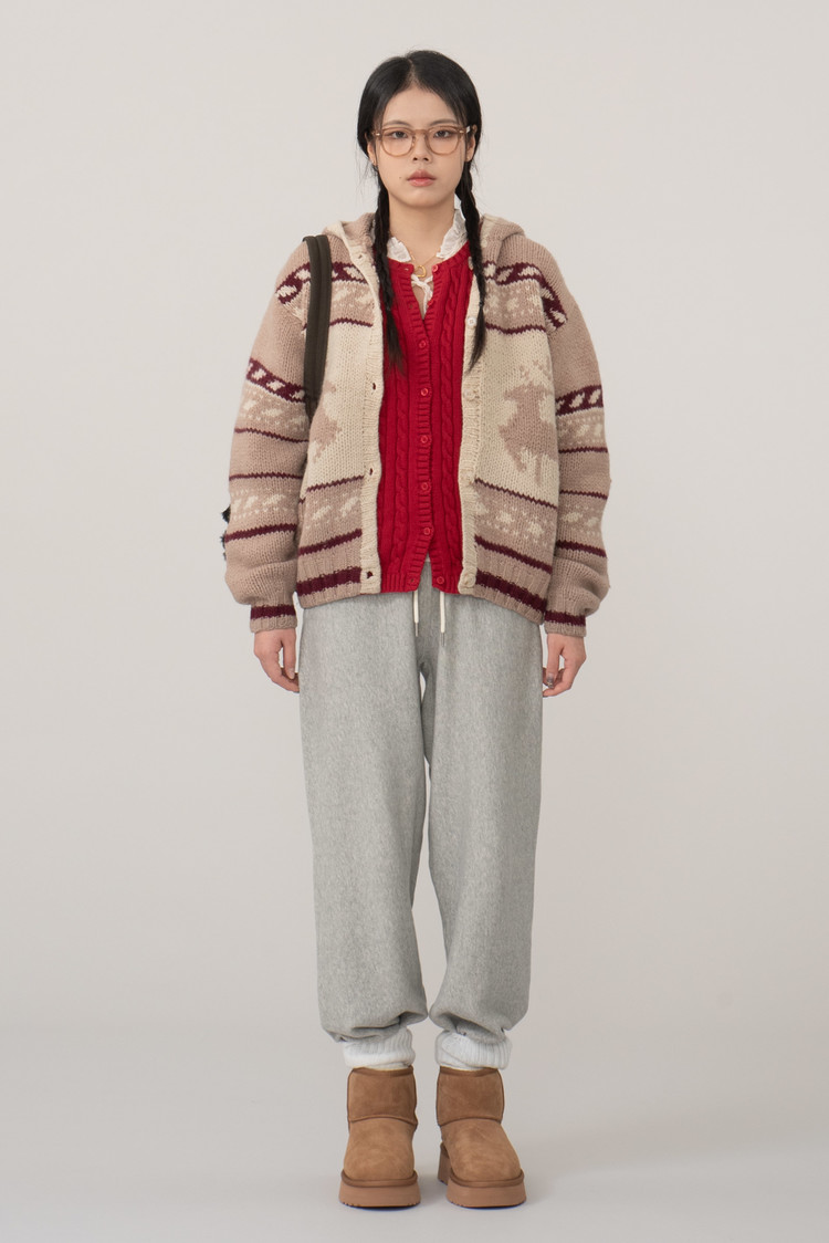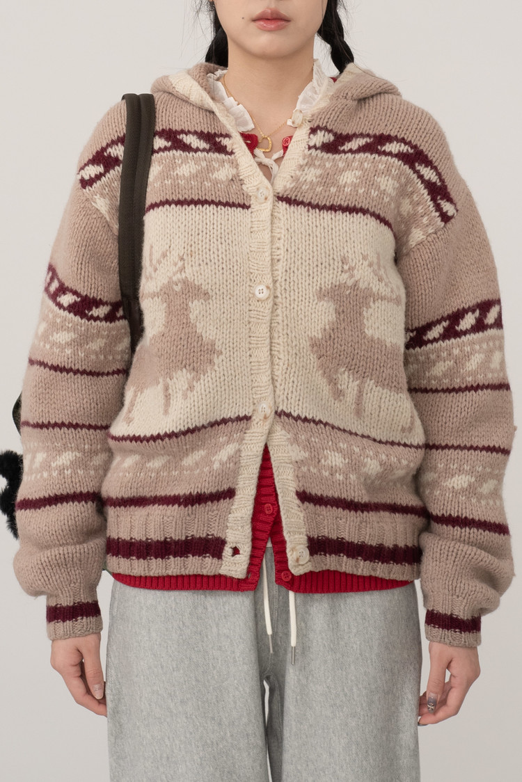 코위찬을 모티브로 제작되어 사슴 패턴과 아방한 핏 감이 일품이며 100% 울 소재로 따뜻하게 착용되어요.