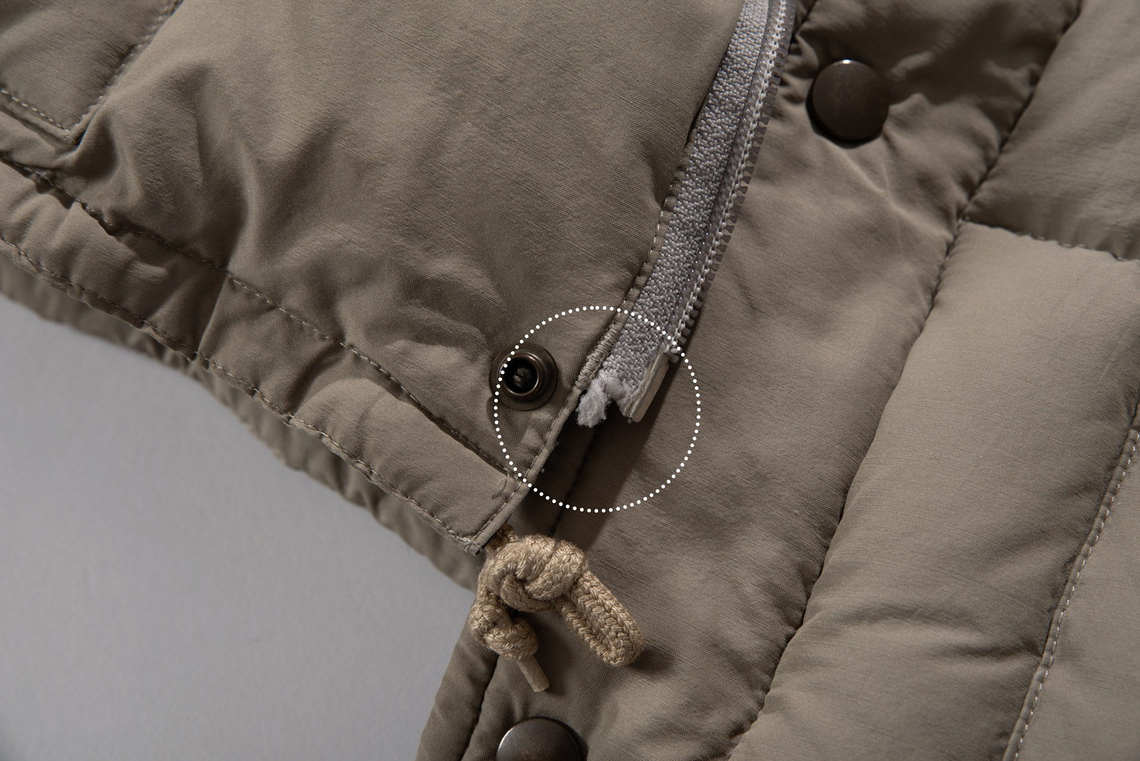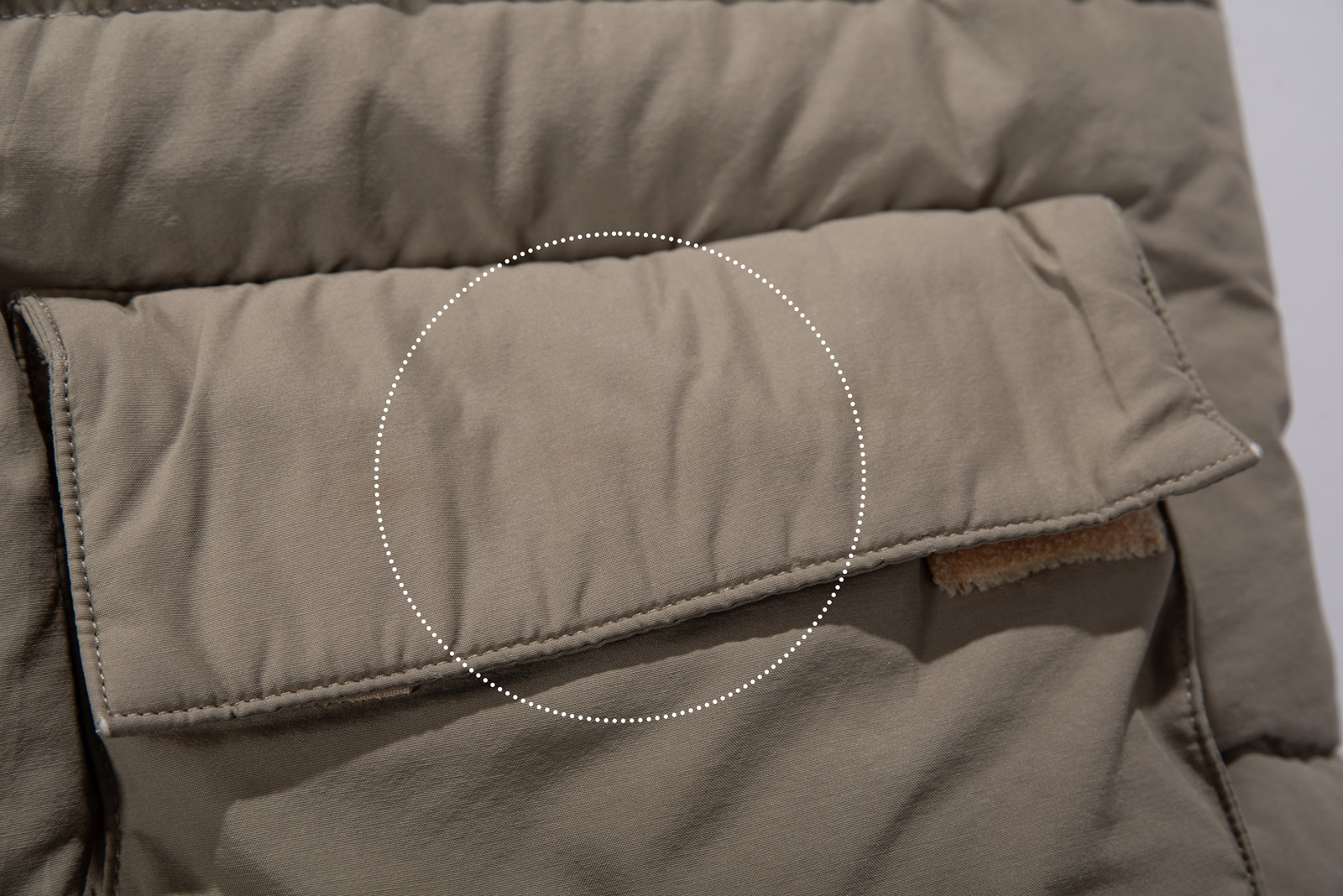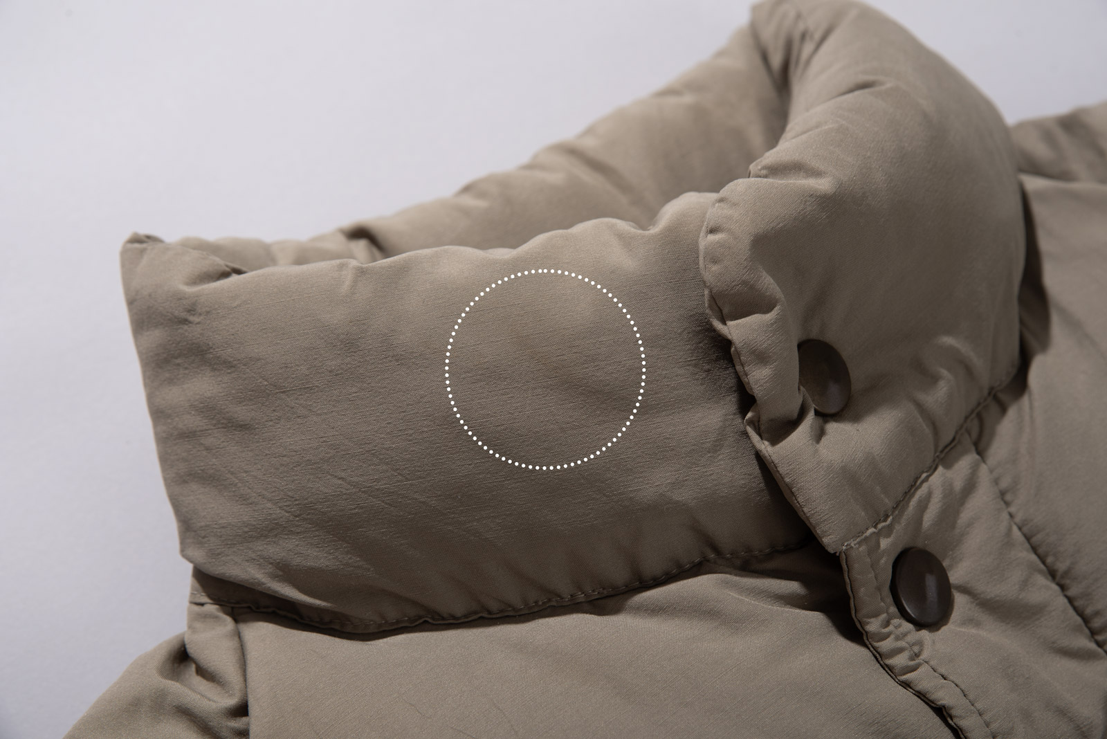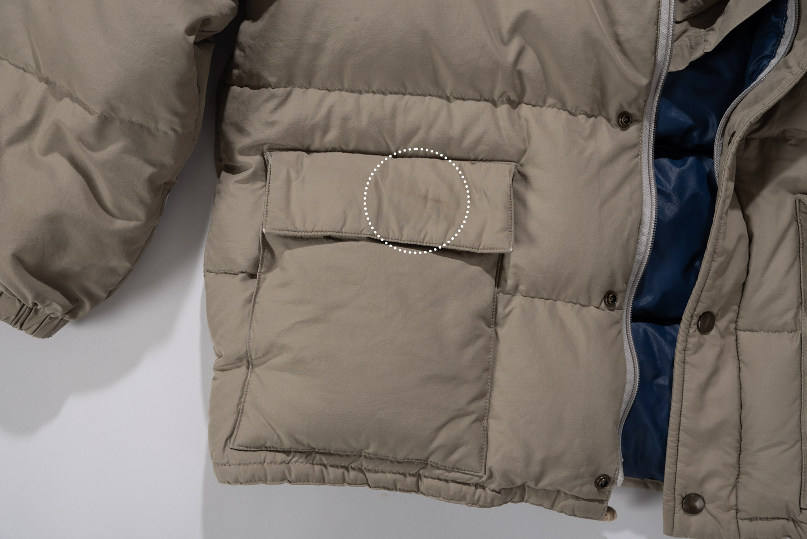 케어라벨이 지워져서 비율은 정확히 모르지만 깃털과 솜털 조합의 다운 충전재로 가볍지만 따뜻하게 착용되는 제품이에요.