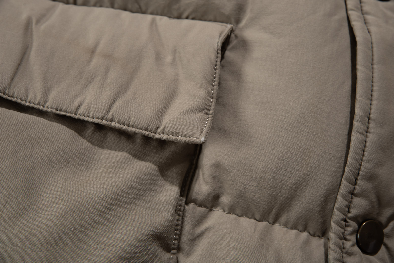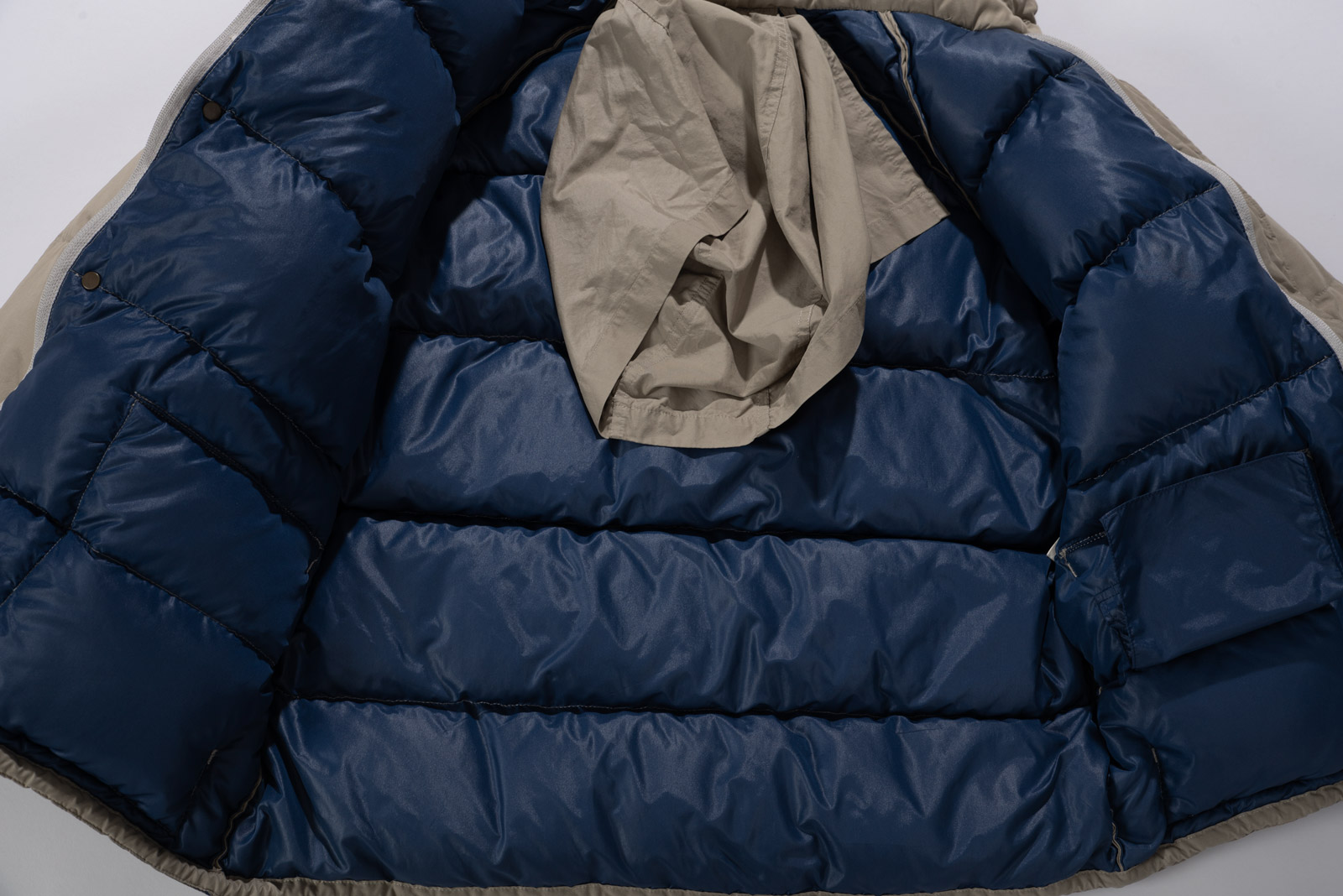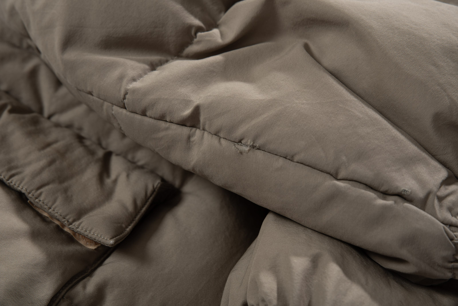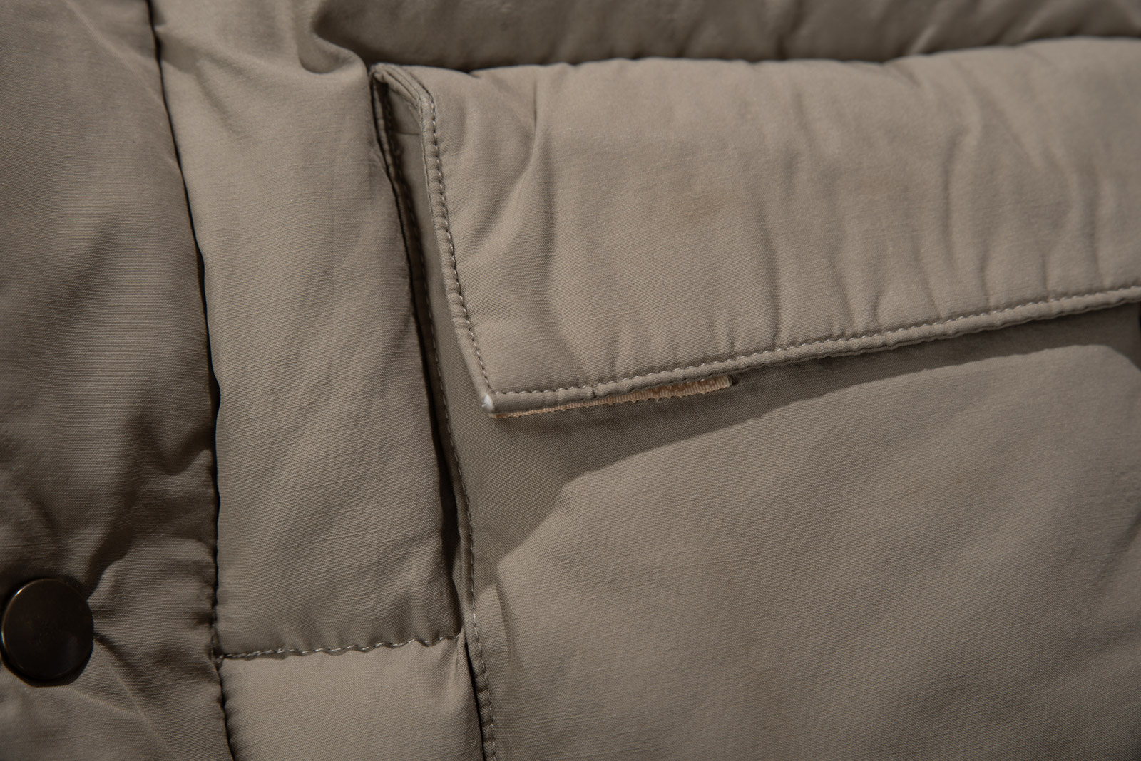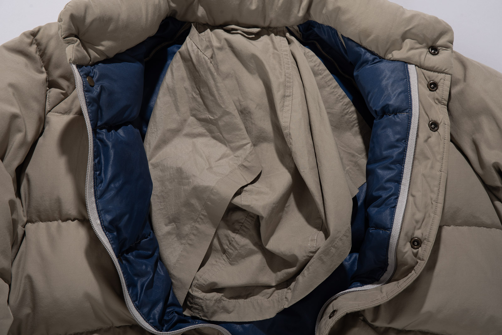 케어라벨이 지워져서 비율은 정확히 모르지만 깃털과 솜털 조합의 다운 충전재로 가볍지만 따뜻하게 착용되는 제품이에요.