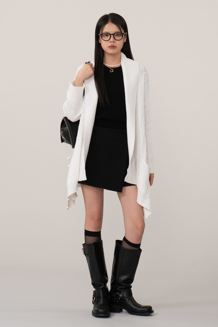 숄 디자인의 넓은 카라와 여밈 디테일 없는 오픈형이라 원피스에 아주 잘 어울리고 20대부터 50~60대까지 사실 연령대 구애 없이 딸과 엄마 부녀지간까지 아우르는 제품이라 정말 추천드려요.