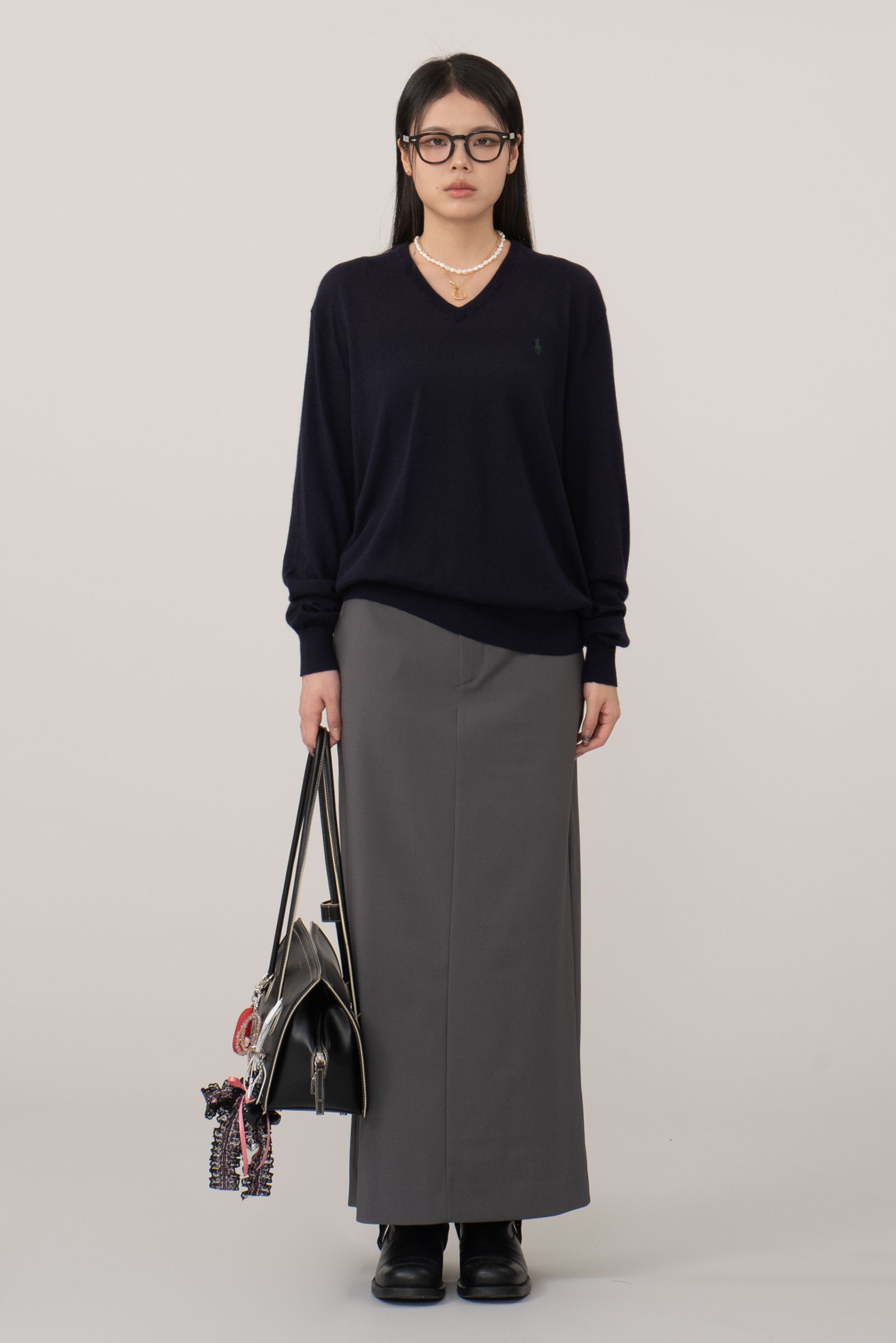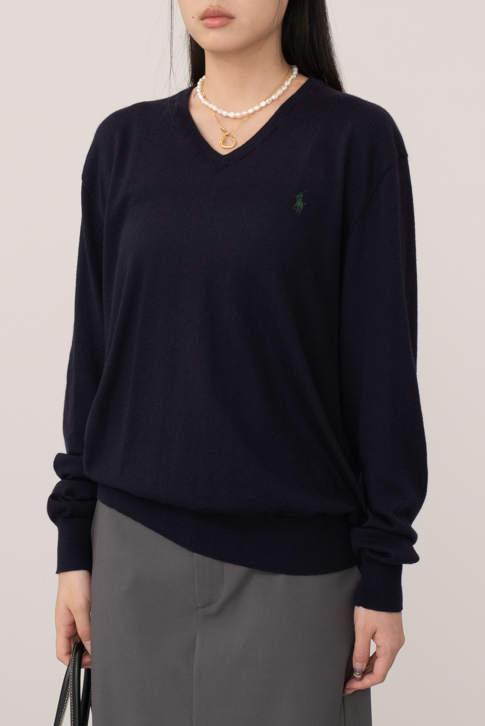 역시나 미니멀하고 기본이 되는 브이넥 디자인에 손이 자주 가는 네이비 컬러, 얇게 가공된 부드러운 메리노 울 소재랍니다.