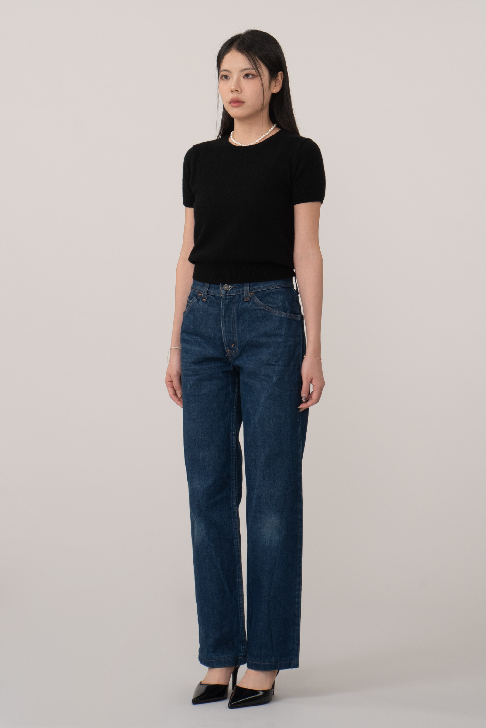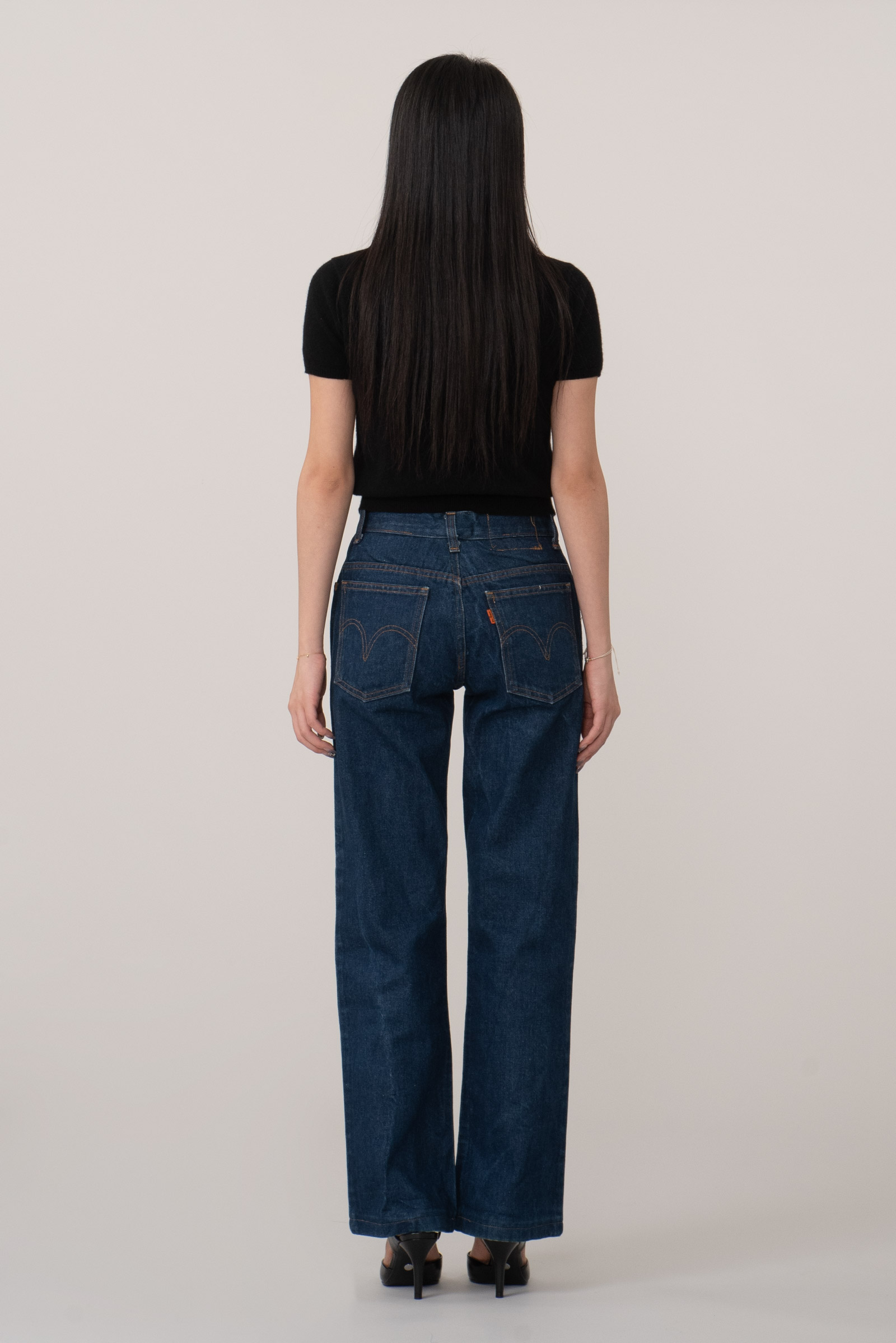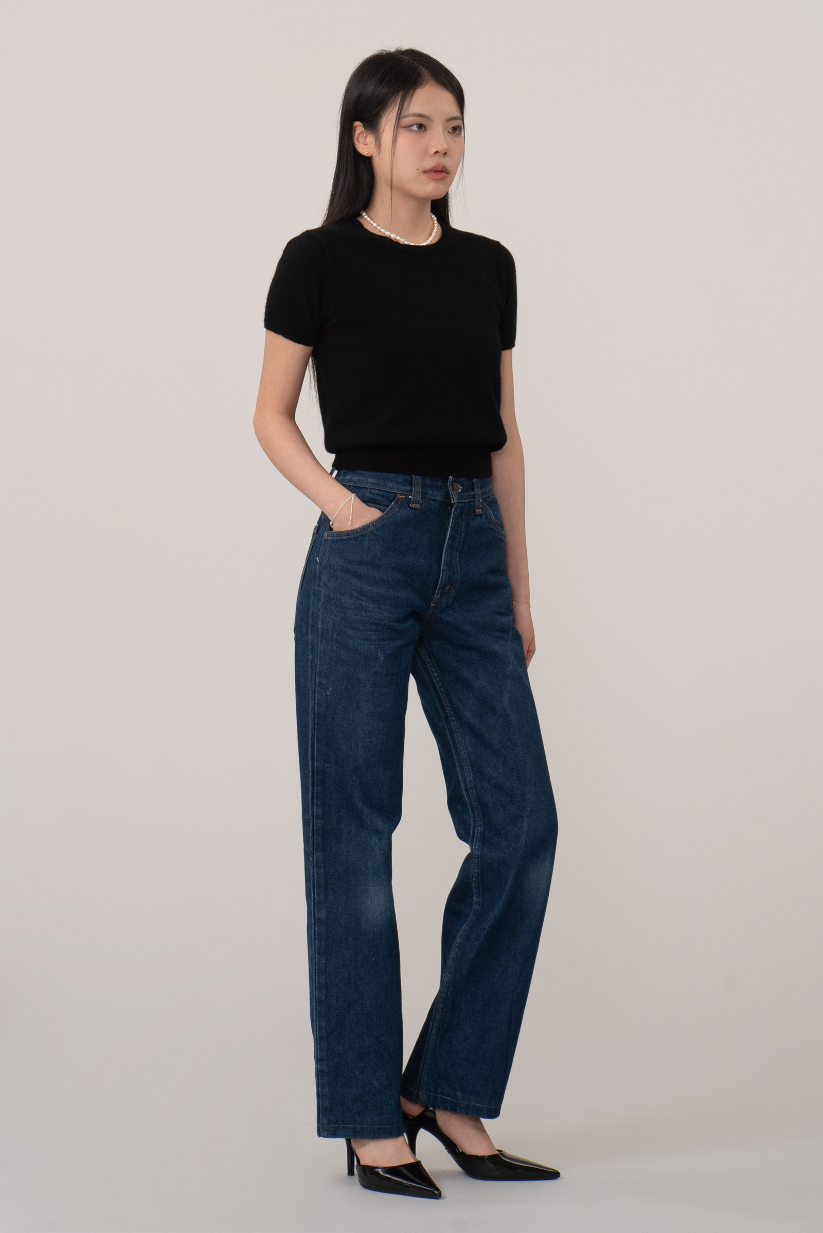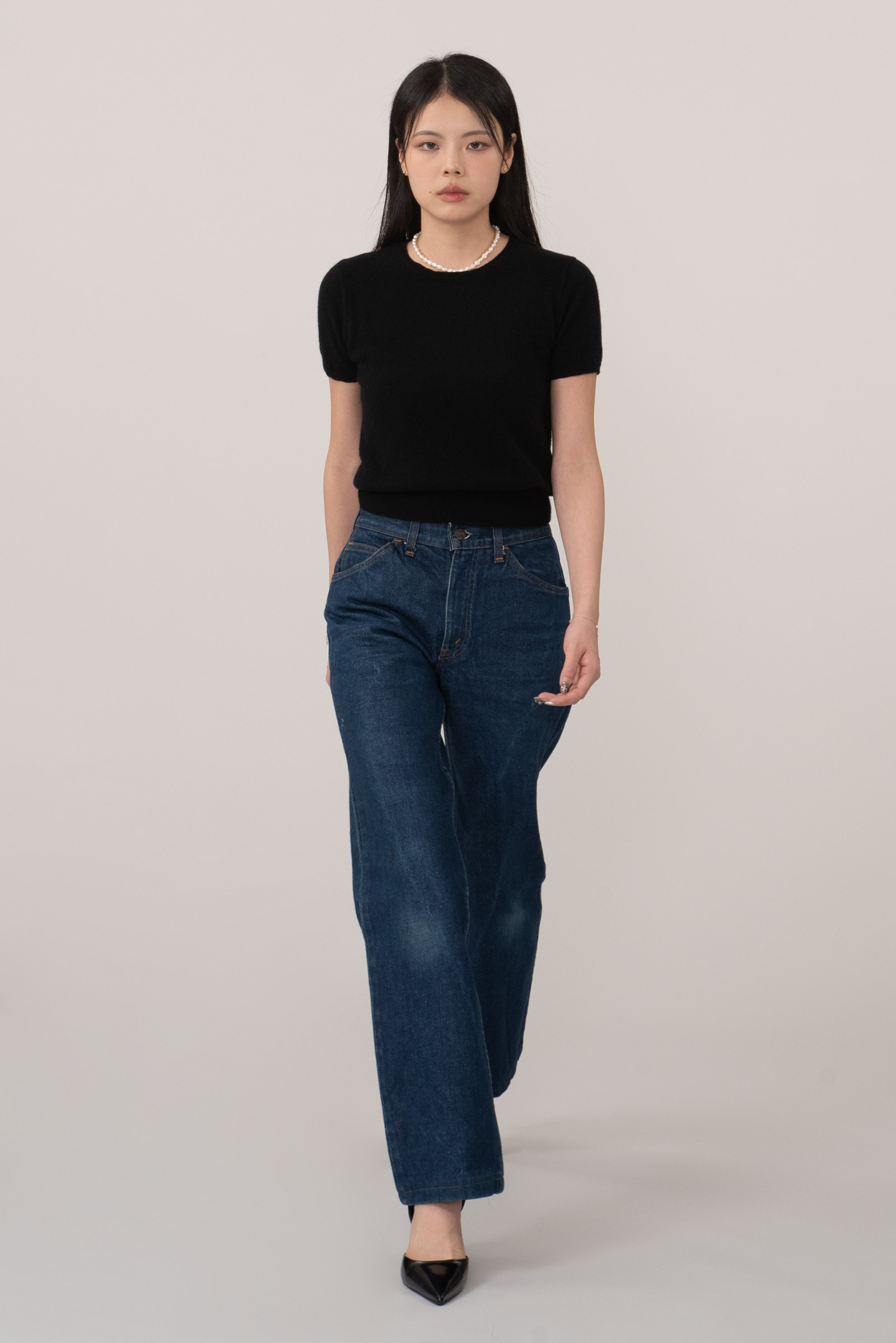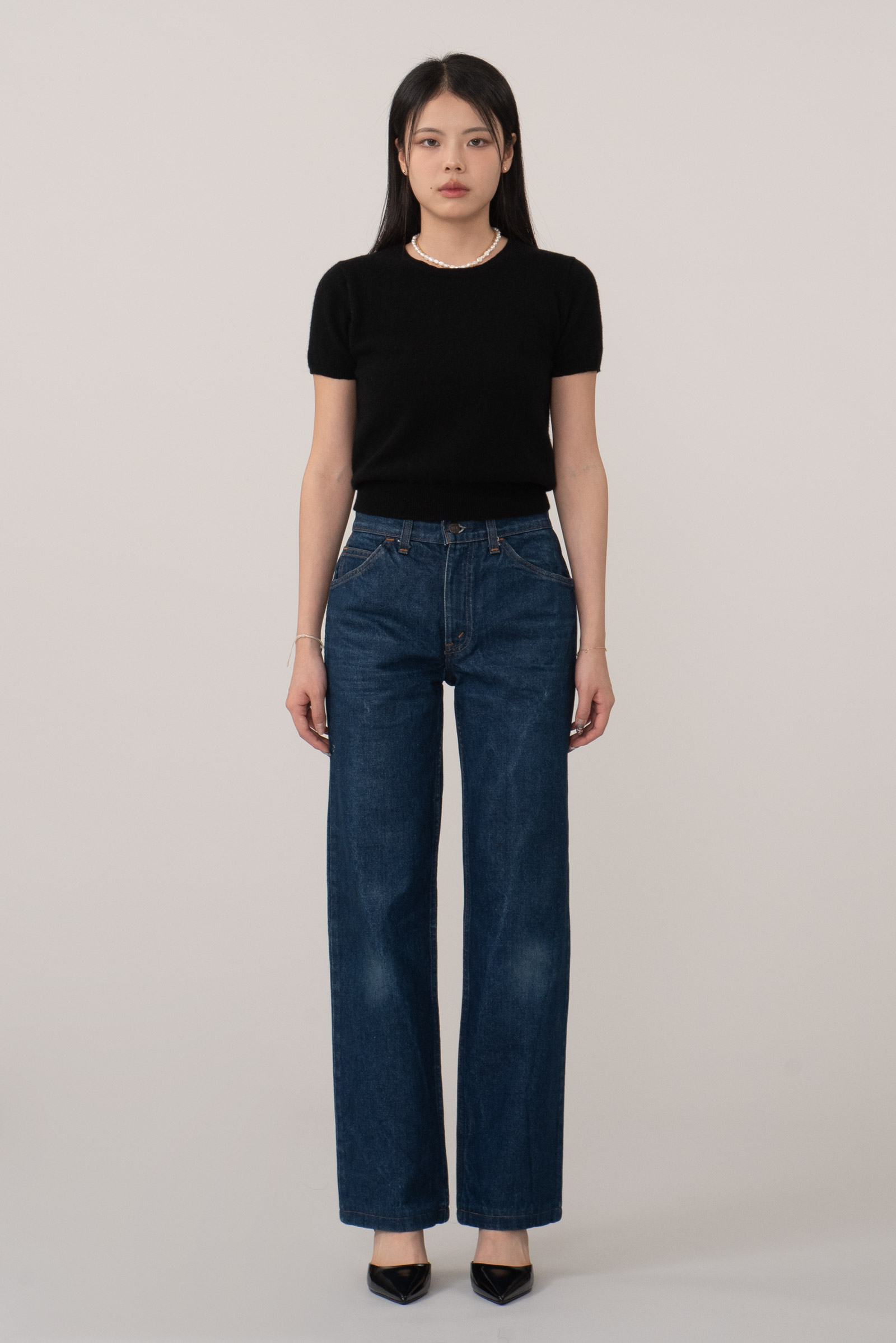 높은 진청 비율에 허벅부터 자연스럽게 넓어지는 스트레이트 핏으로 유행 없이 클래식하게 착용되는 제품이에요.