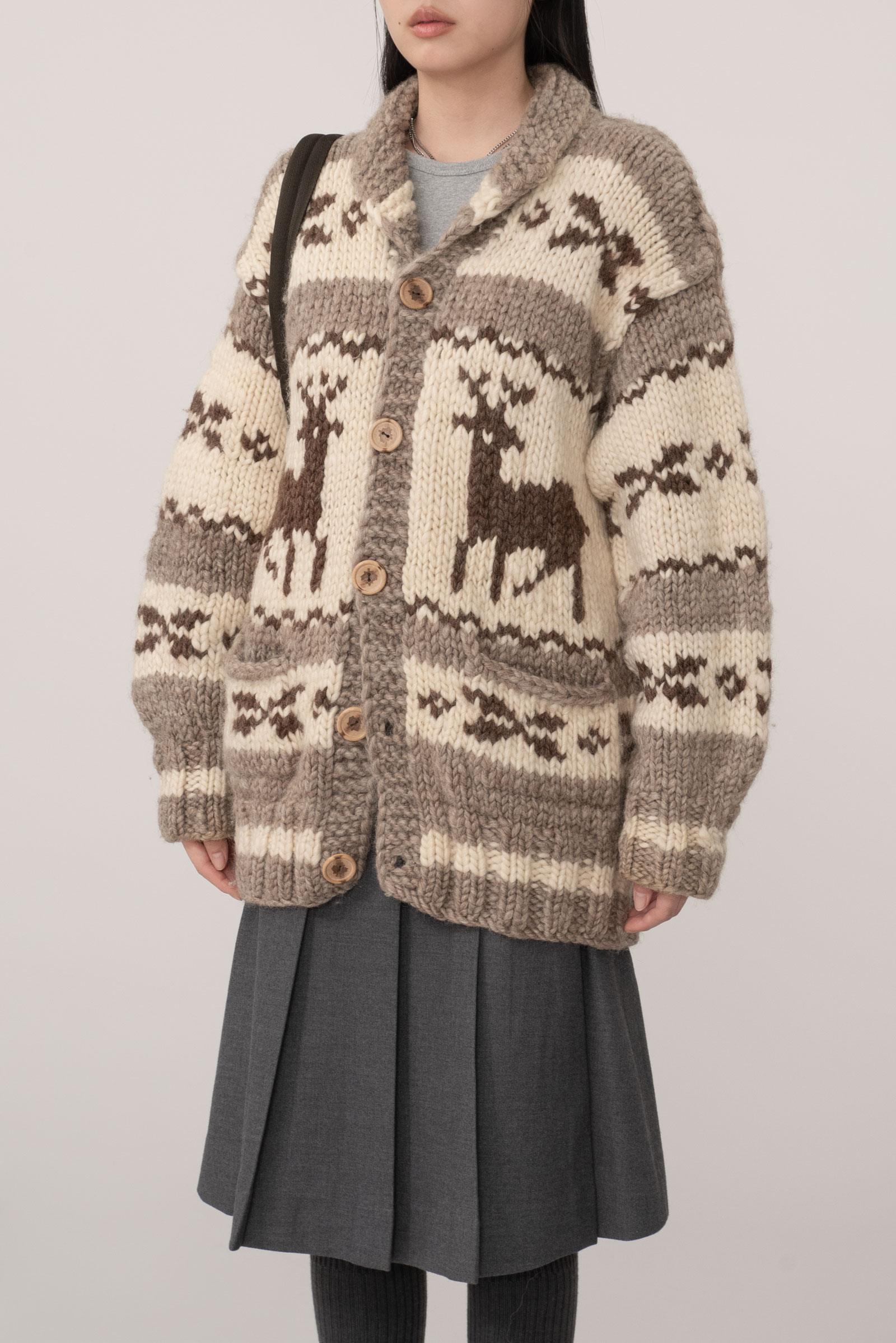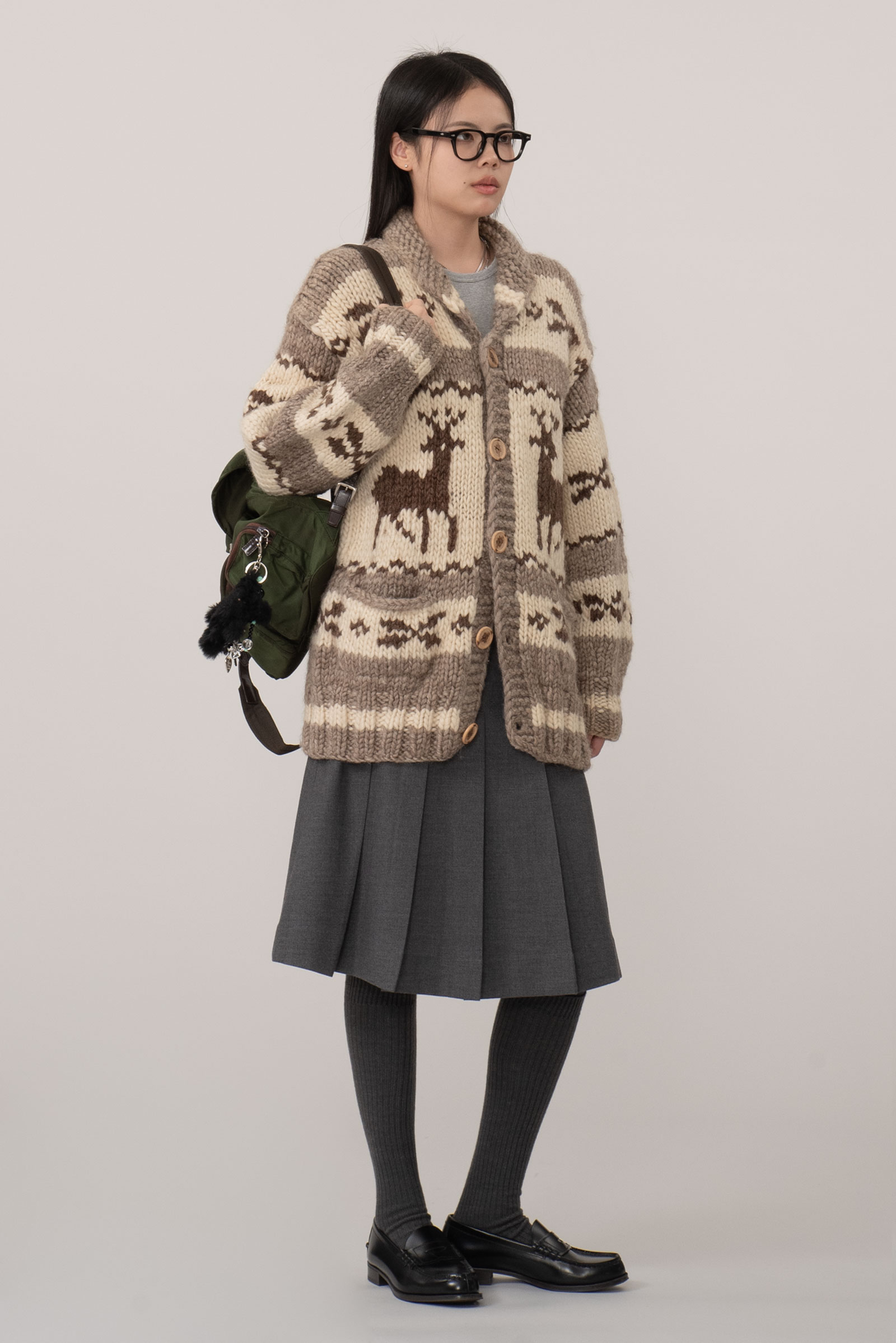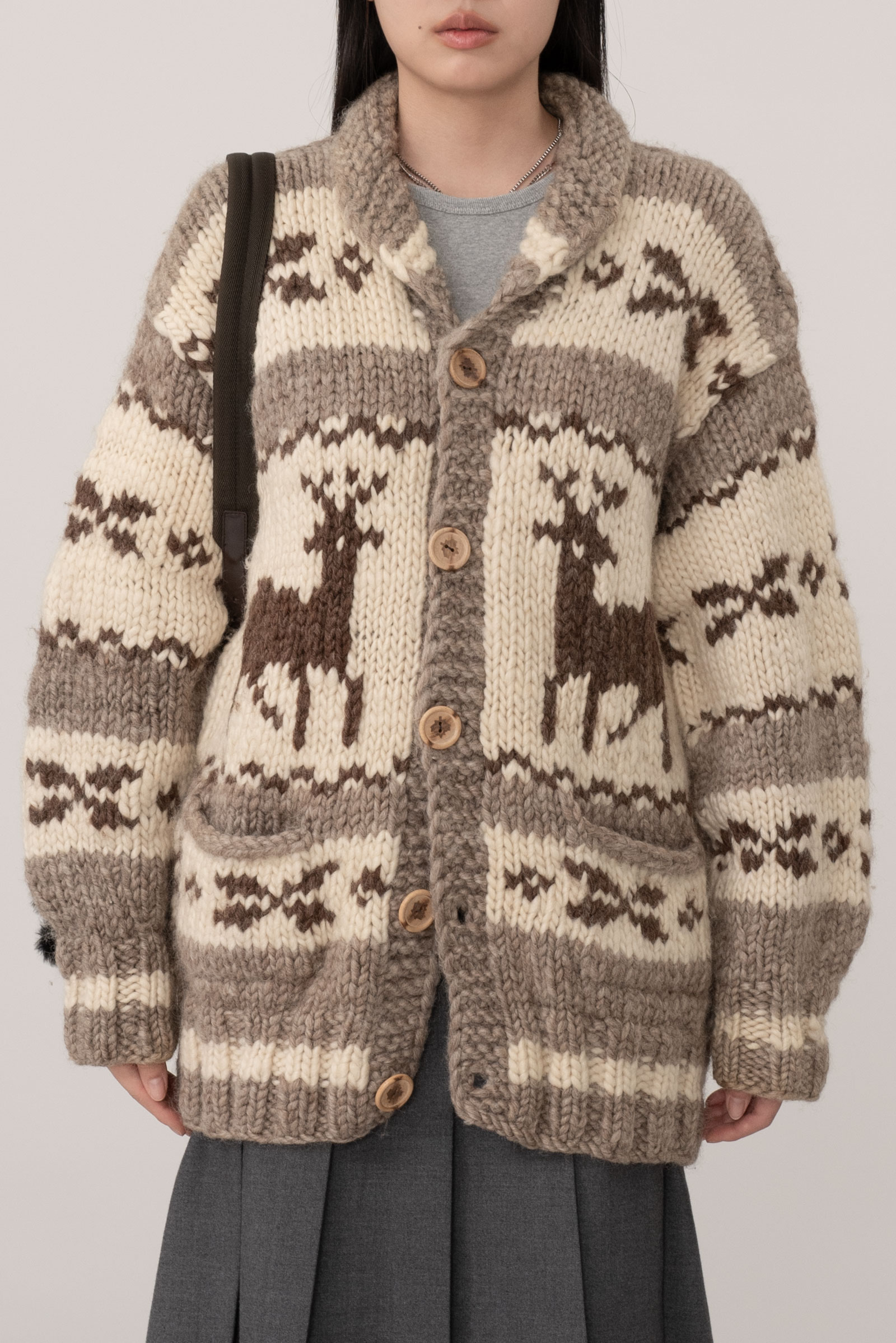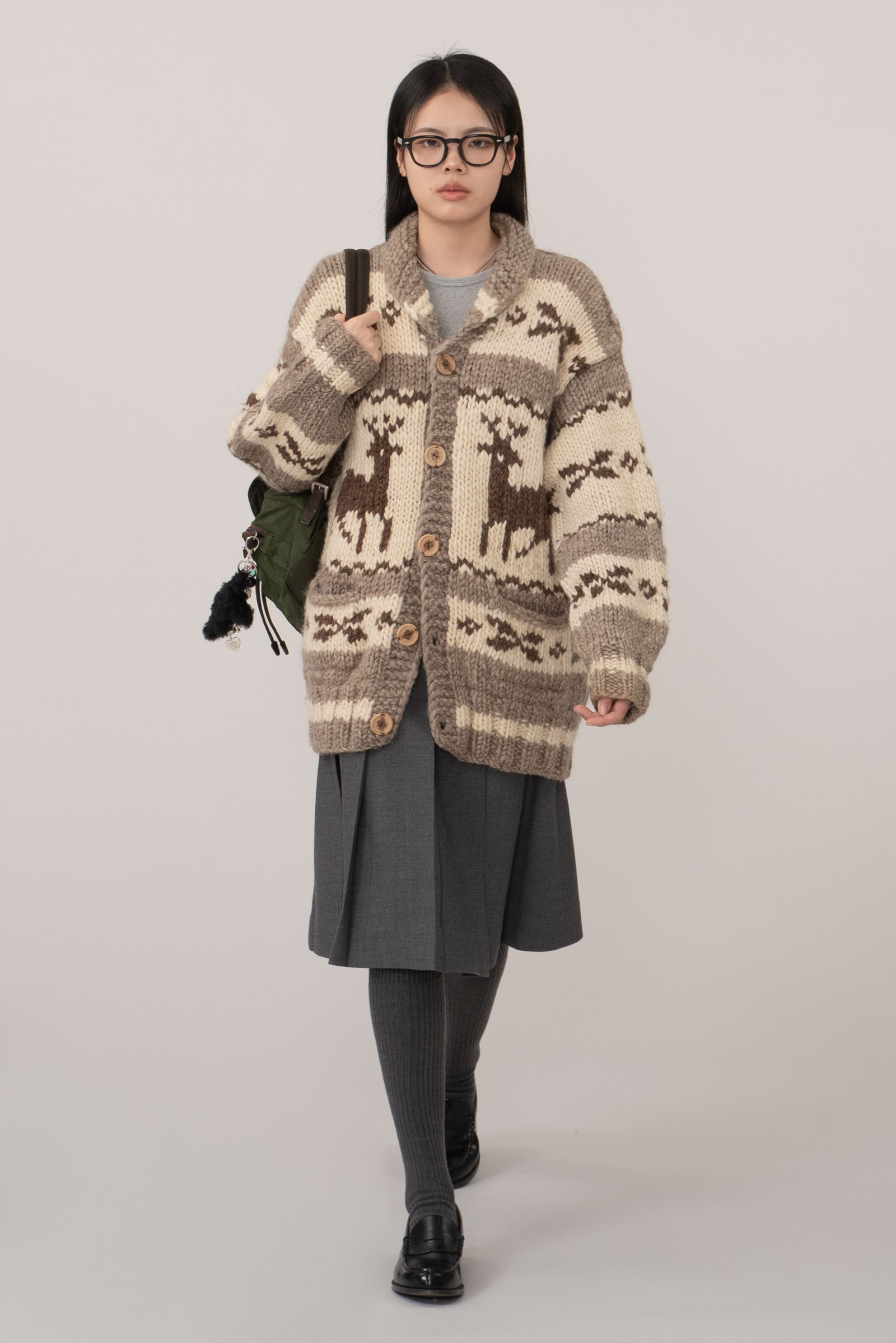 공장식 기계 직조가 아닌 핸드 니팅에 노멀한 순록 문양이 단연 눈에 띄며 아방하고 귀여운 핏으로 휘뚜루마뚜루 걸치기 좋아요.