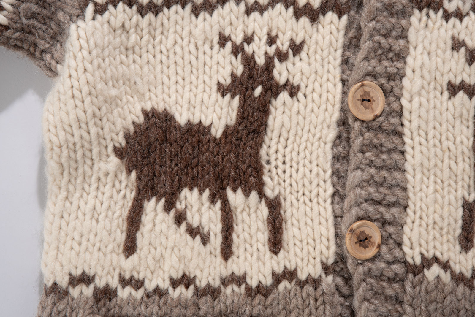 굵직한 양털 원사를 사용하여 높은 보온성에 각 부족을 상징하는 사슴, 단풍, 연어, 독수리, 눈꽃 등의 문양과 상징을 모티브로 기하학적 패턴화한 디자인 등 오래 입으면 입을수록 더욱 멋스러워지는 빈티지한 매력이 있는 니트웨어라 정말 추천드려요.
