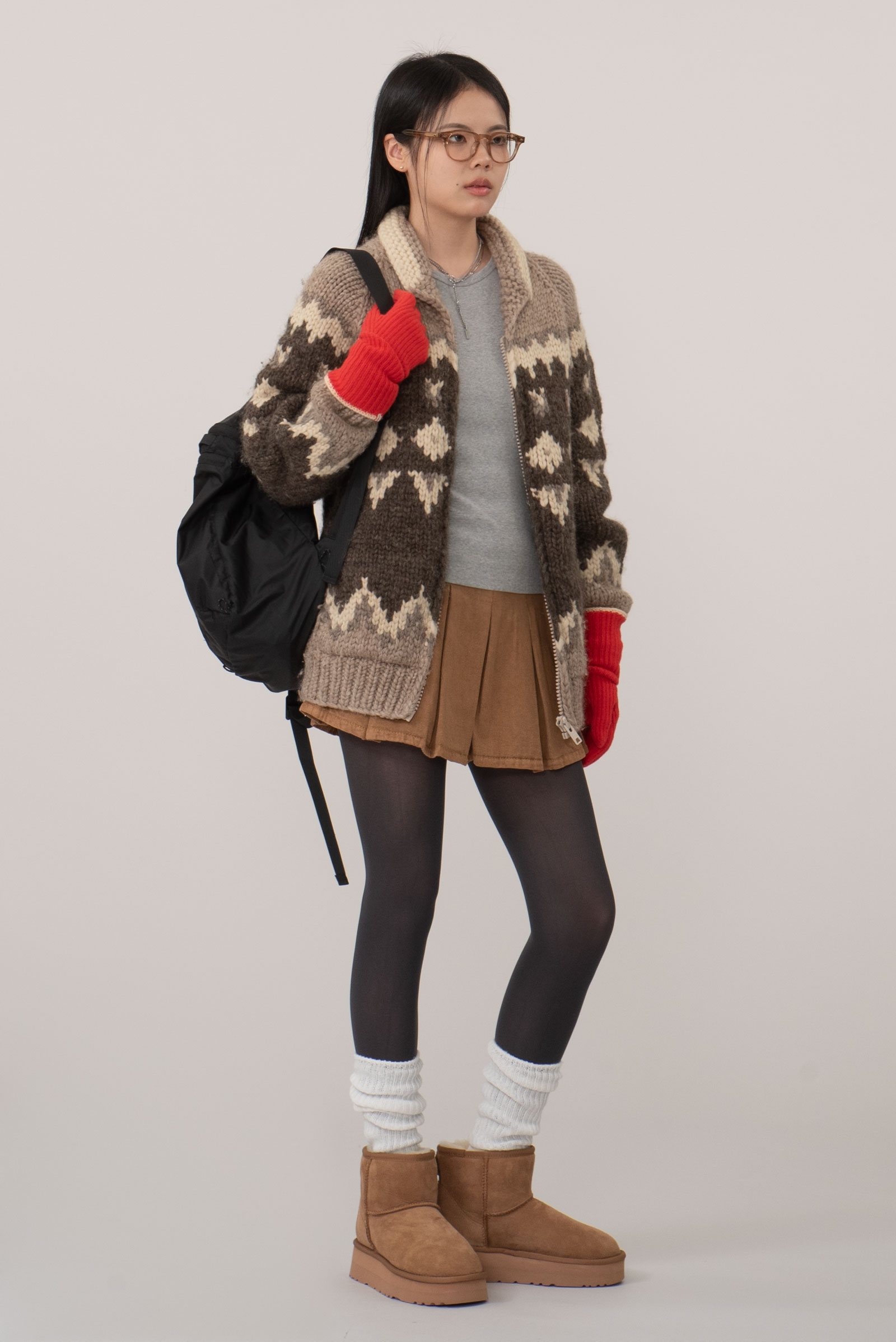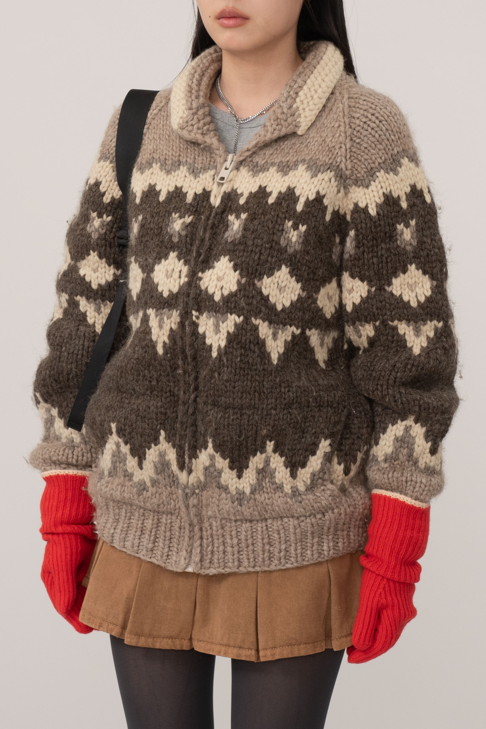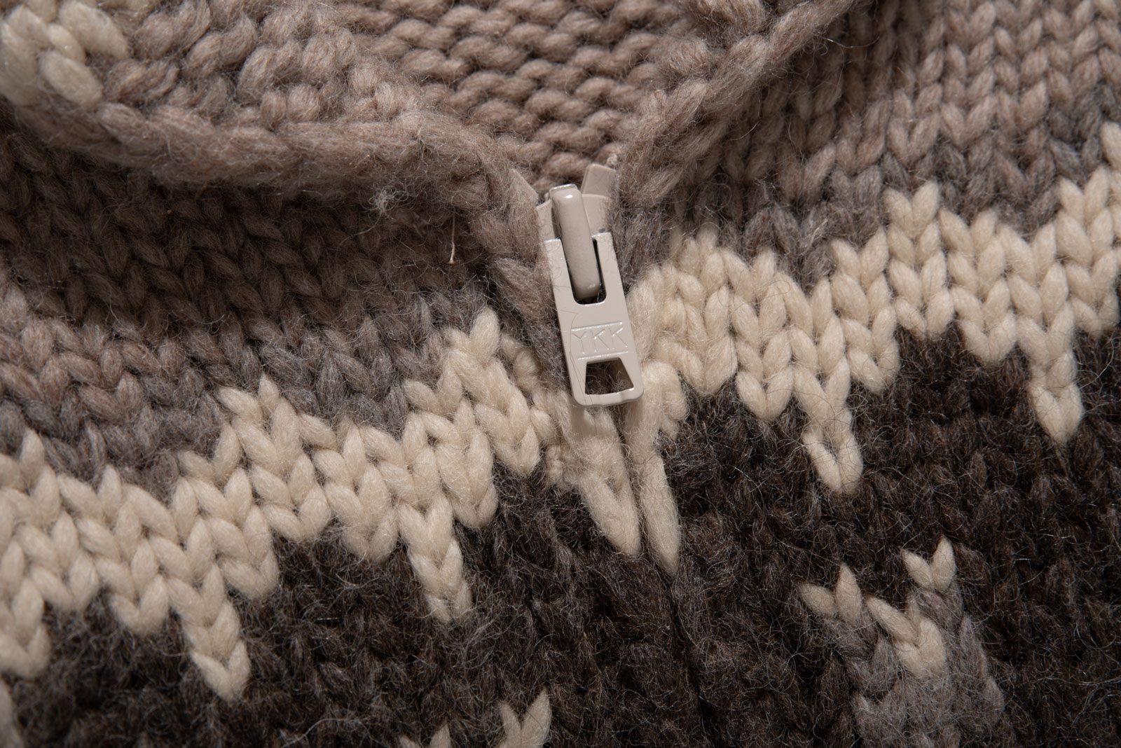 두툼한 YKK 지퍼가 달린 지퍼 여밈 모델로 사슴이나 선더버드, 메이플 문양이 없고 노르딕 패턴의 무난한 제품이에요.