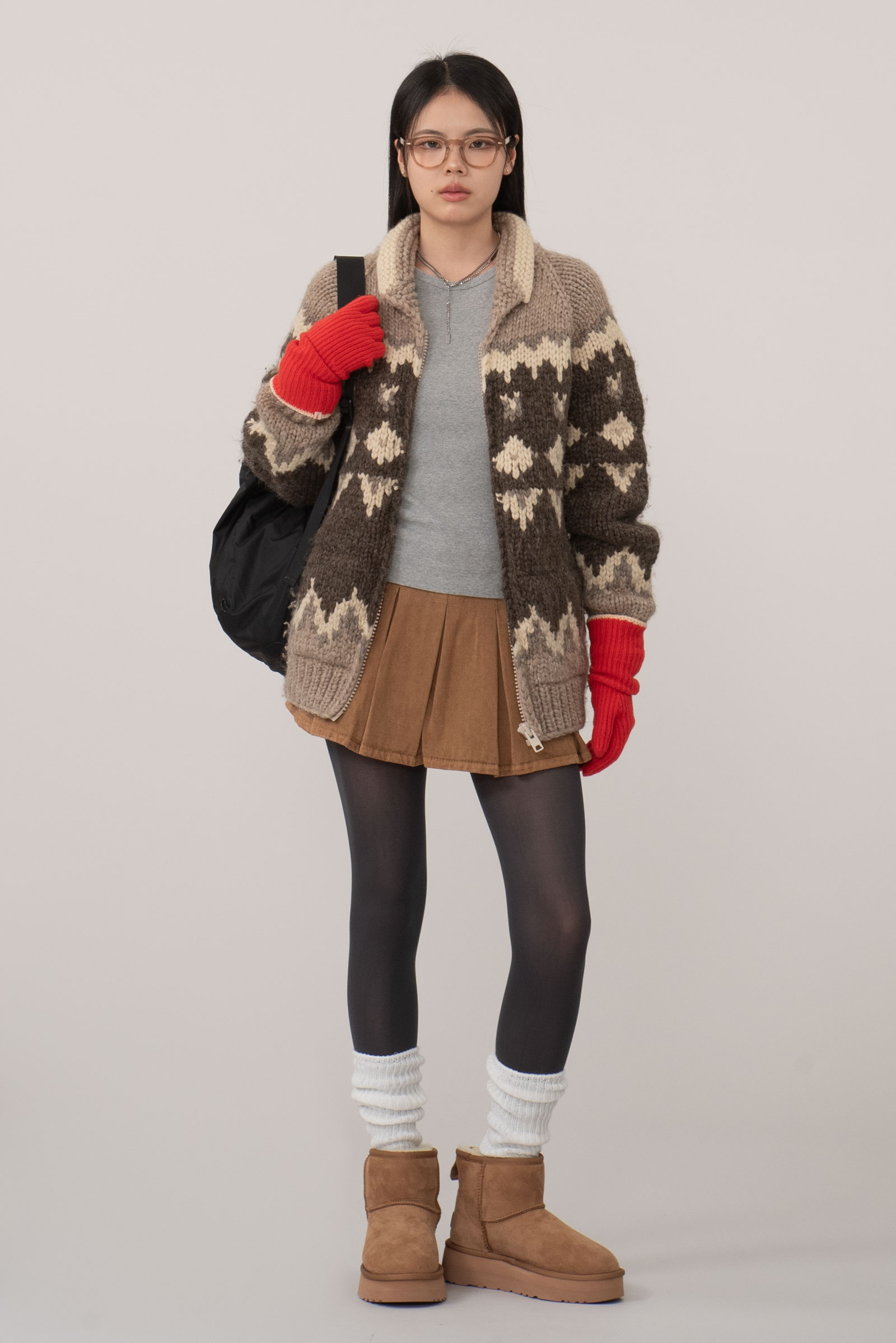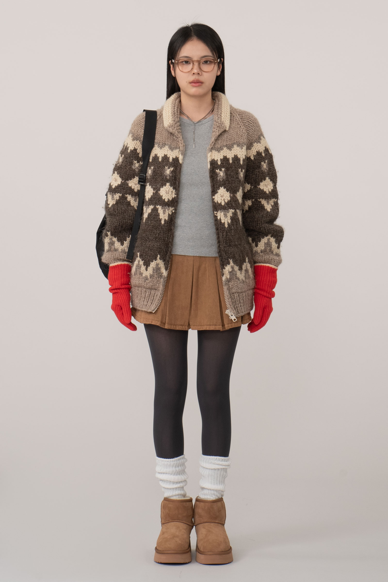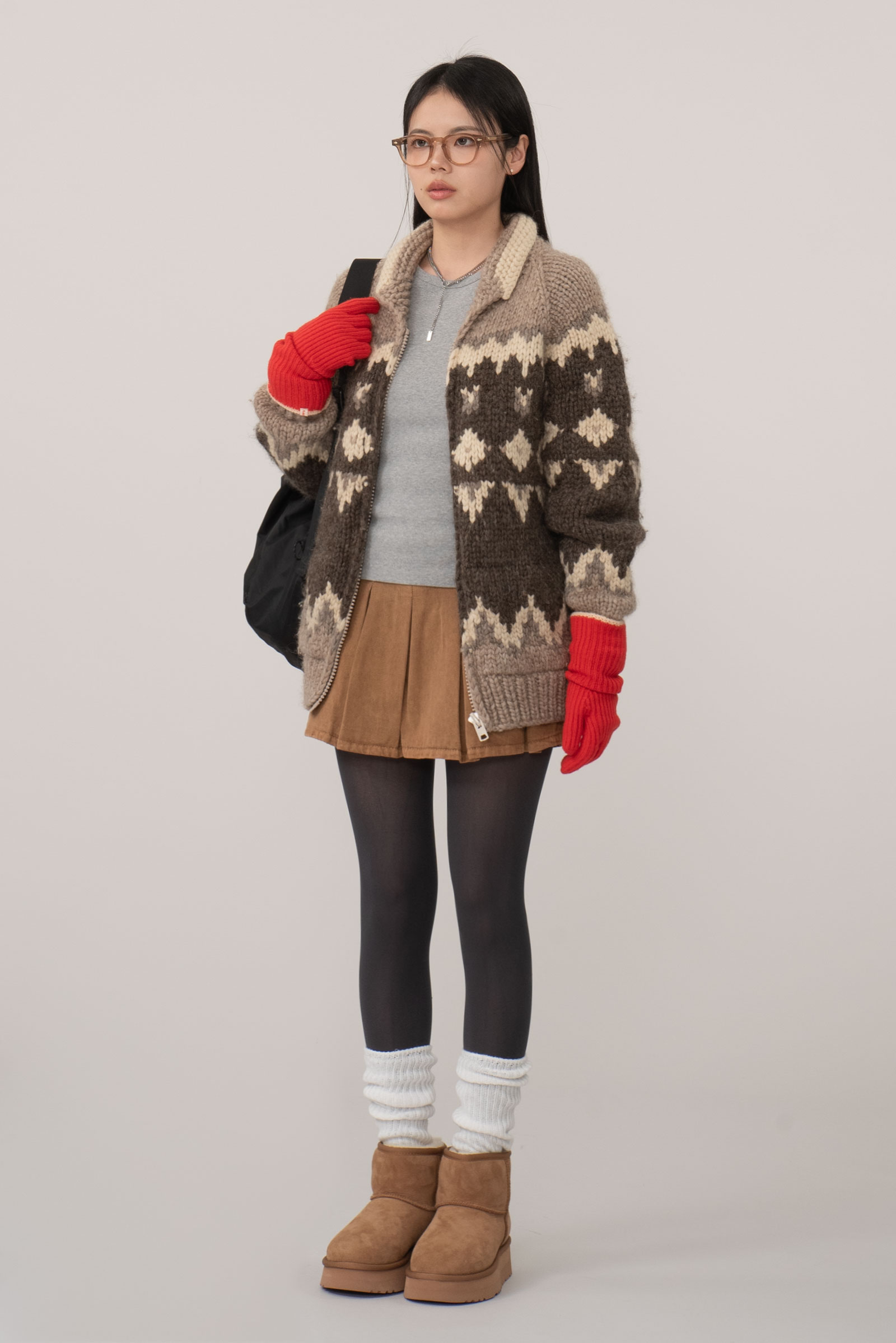 두툼한 YKK 지퍼가 달린 지퍼 여밈 모델로 사슴이나 선더버드, 메이플 문양이 없고 노르딕 패턴의 무난한 제품이에요.