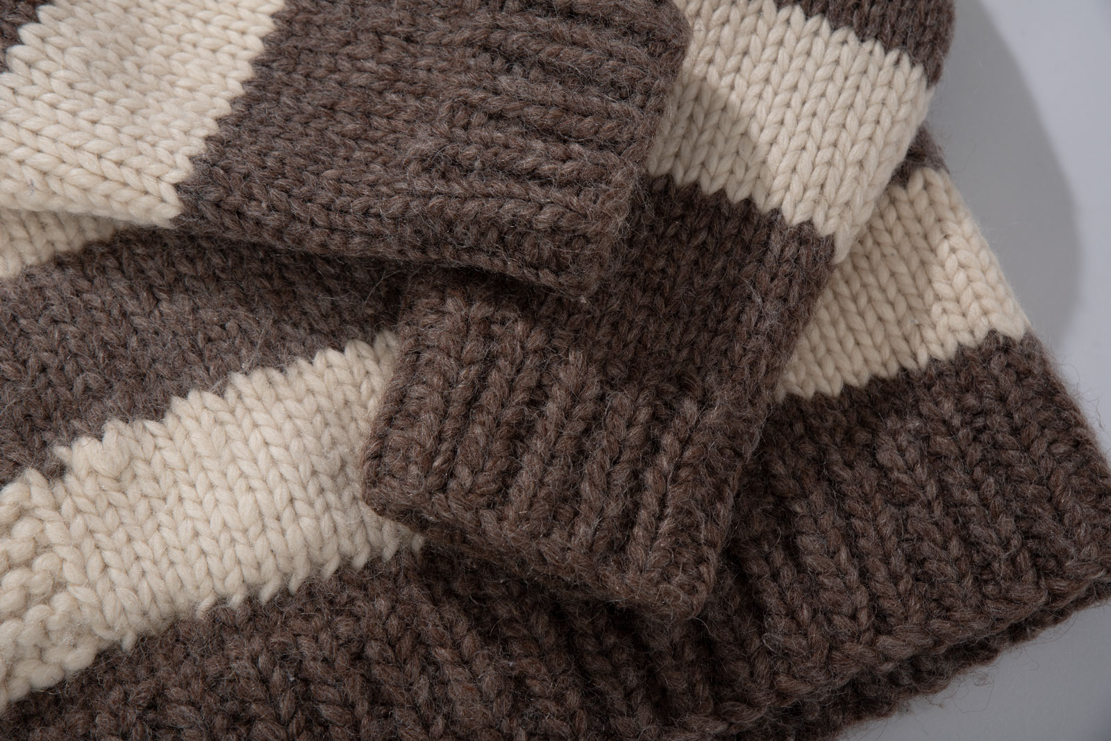 추운 캐나다 기후를 견디기 위해 버진 울 원사를 전통적인 제조 방식으로 일일이 손으로 뜨개질한 두툼한 아우터인 코위찬이 대표 아이템이고요.