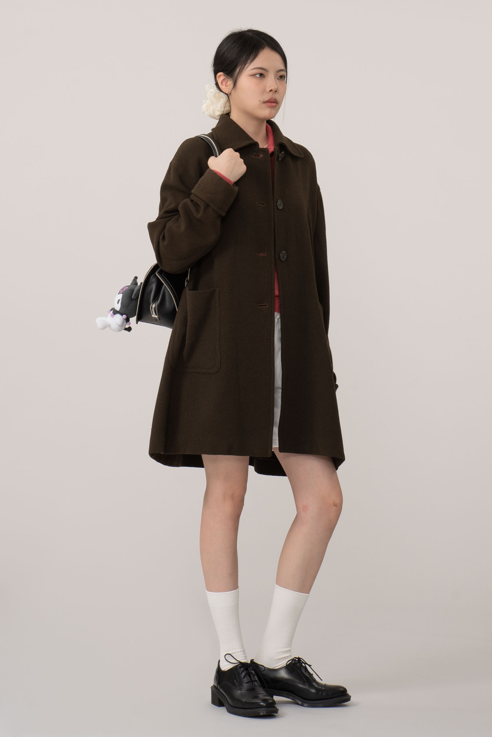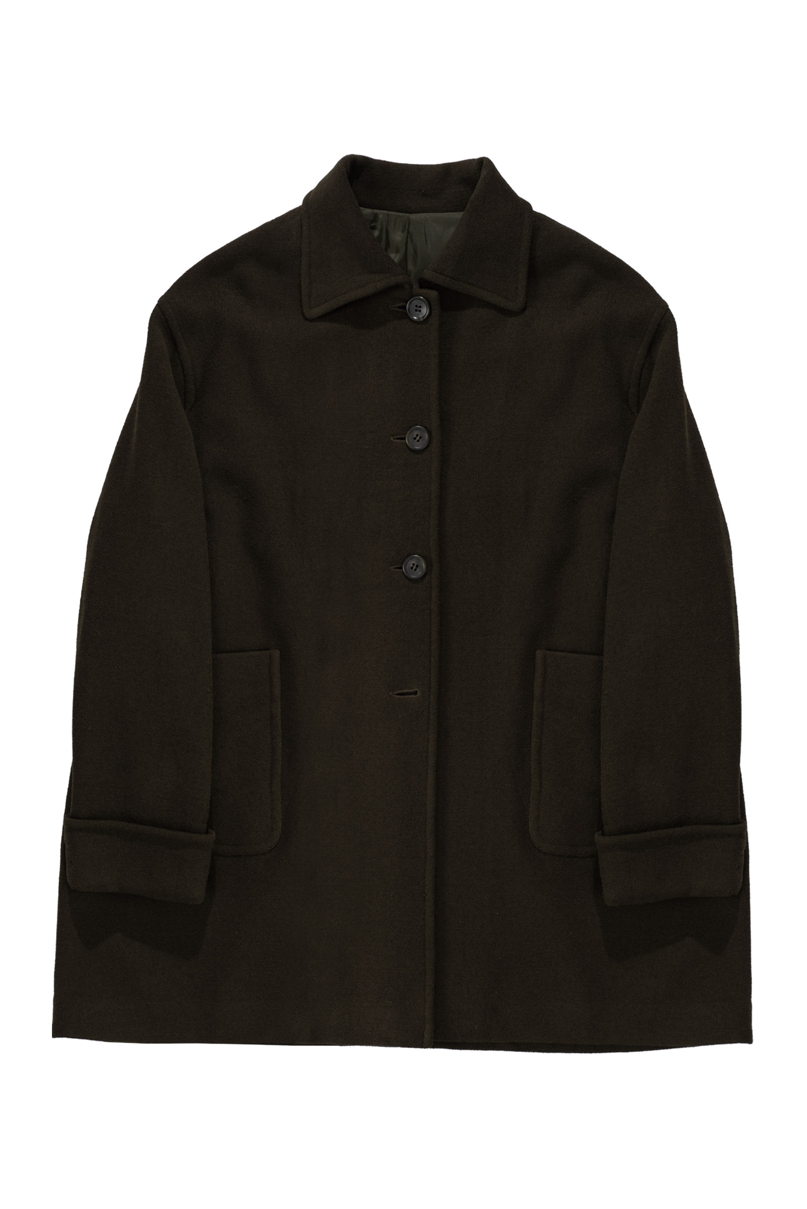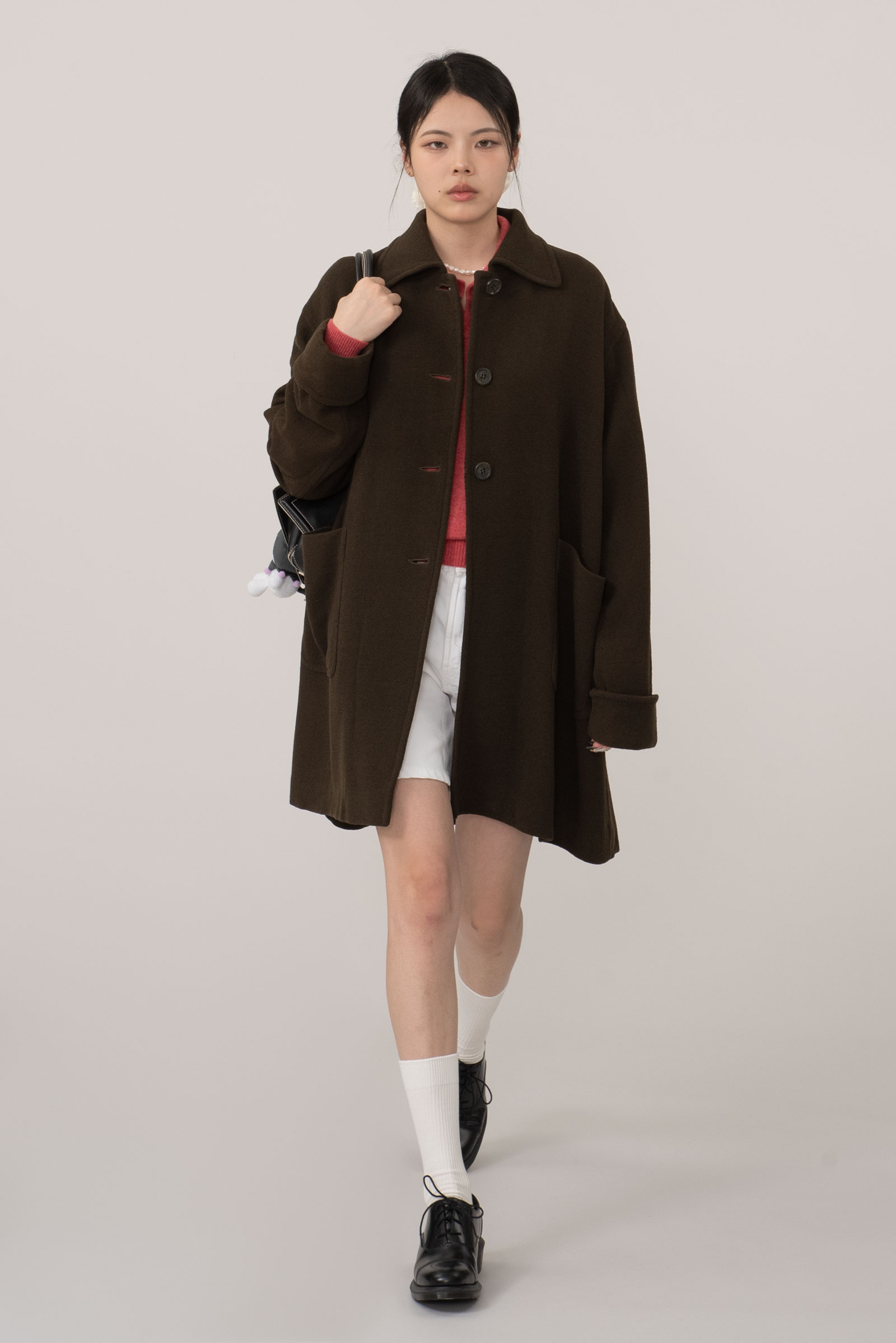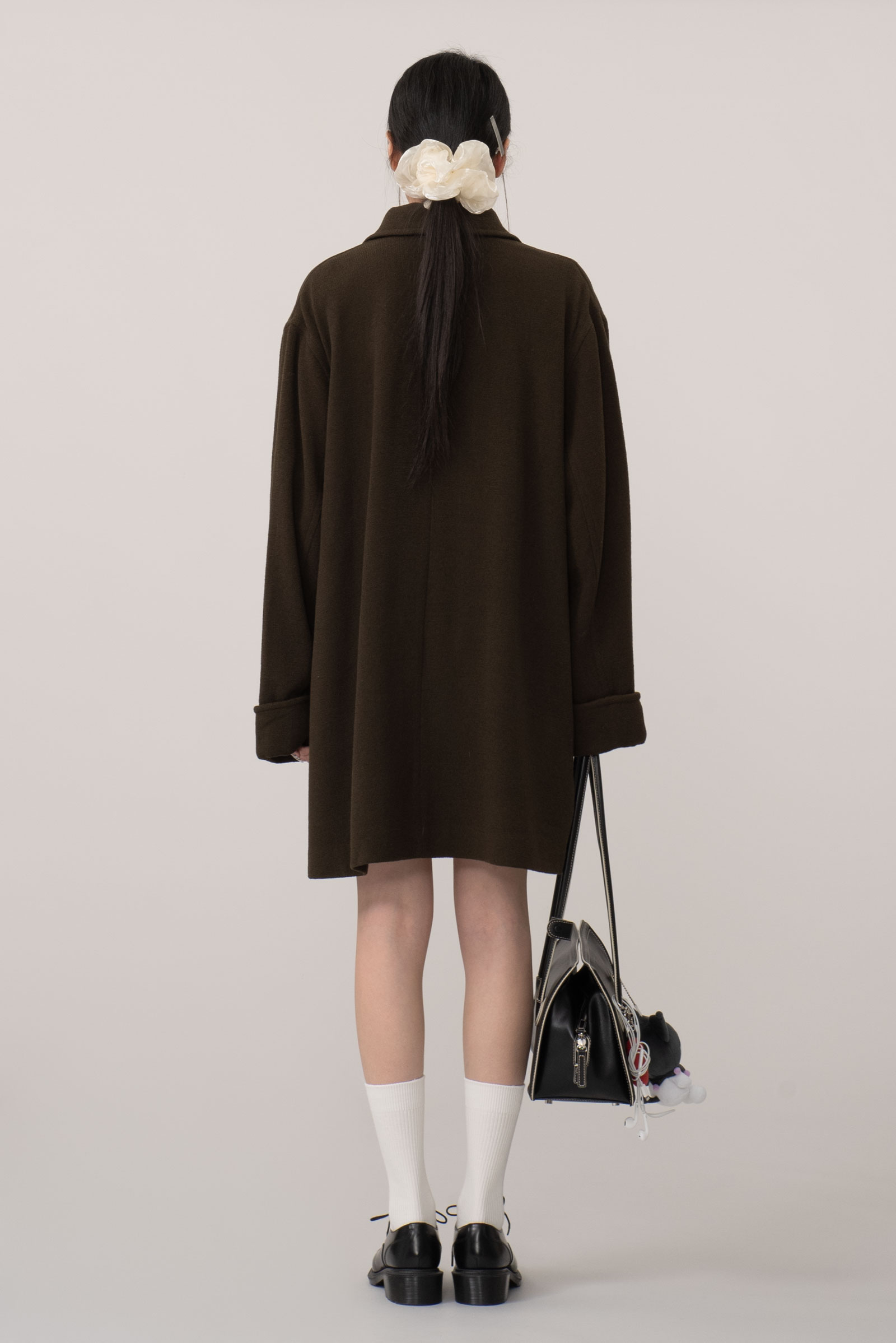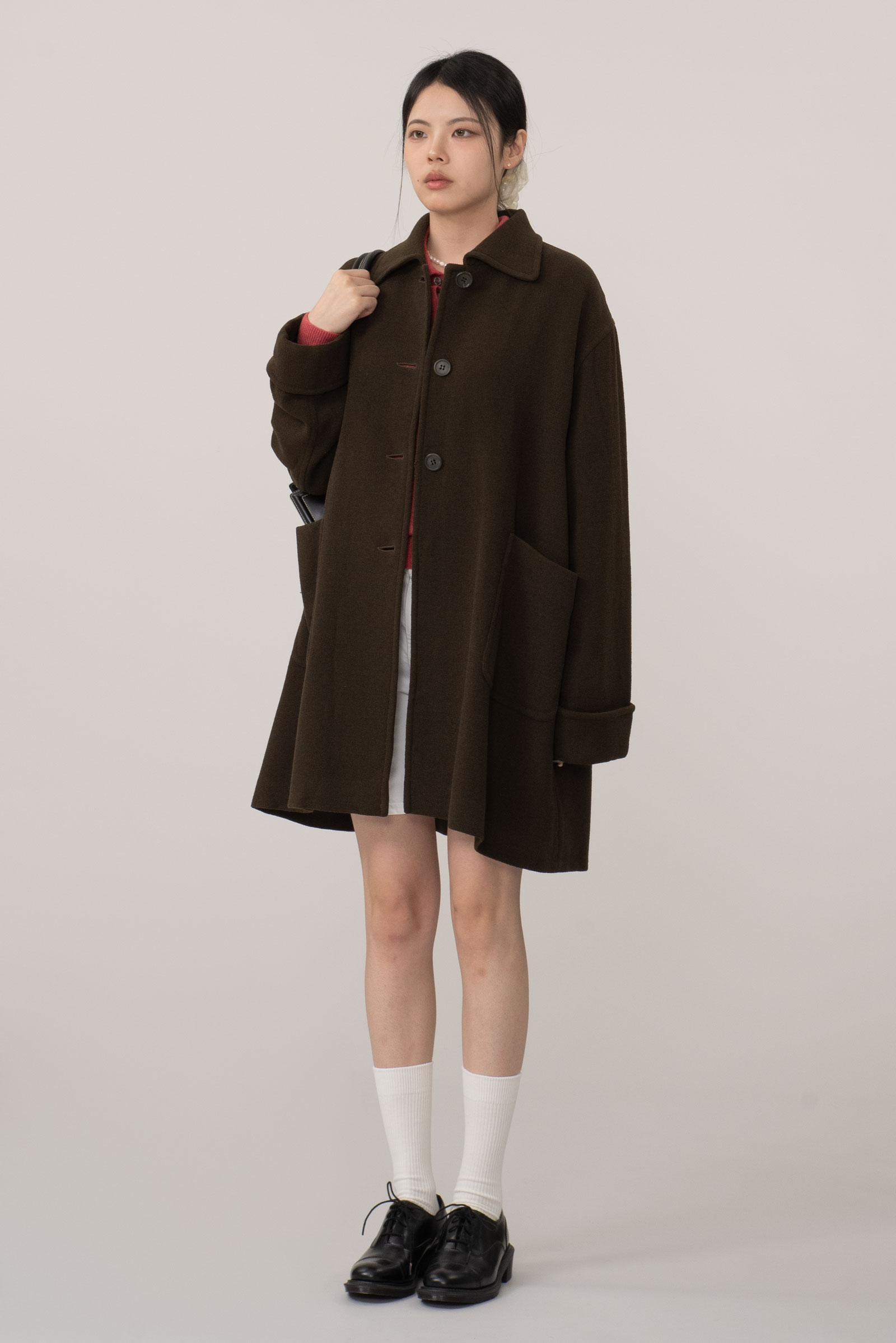 오버한 사이즈에 드롭 숄더는 한층 더 여유로운 느낌을 주고 클래식한 싱글 디자인에 큰 디테일 없이 컬러와 포켓, 실루엣만으로 승부를 건 코트에요.