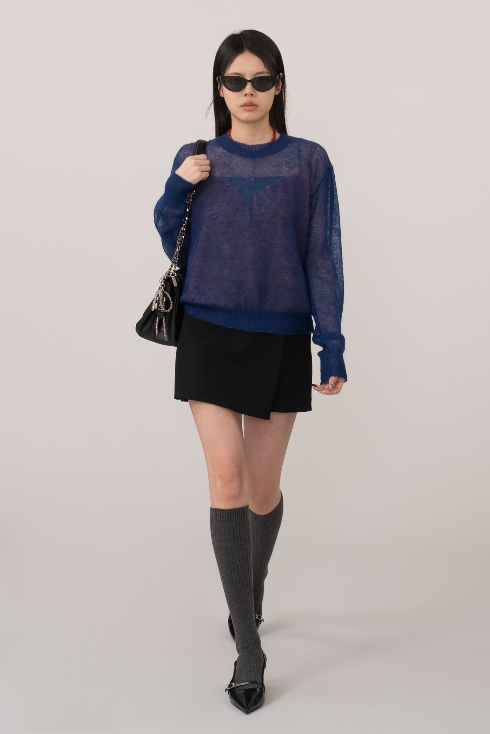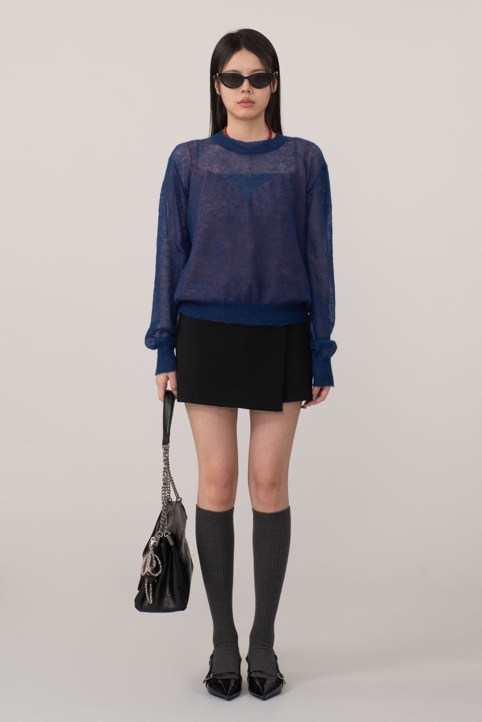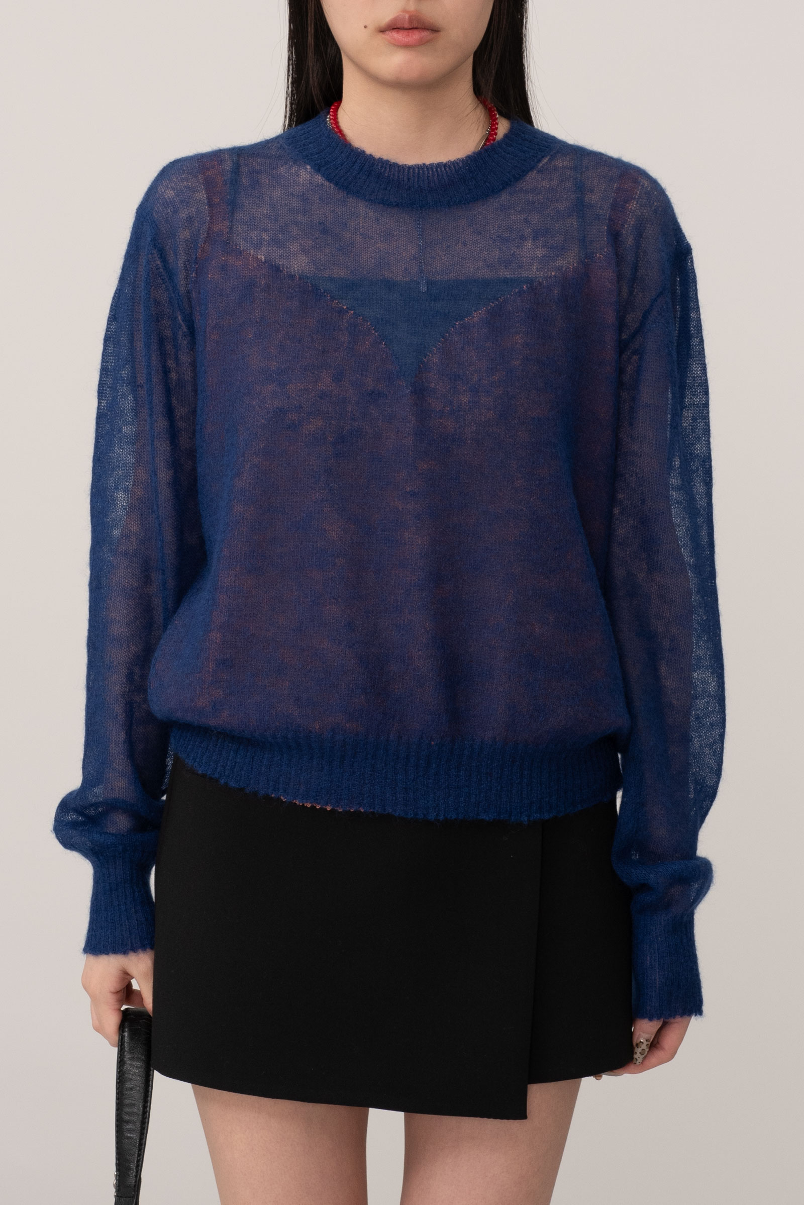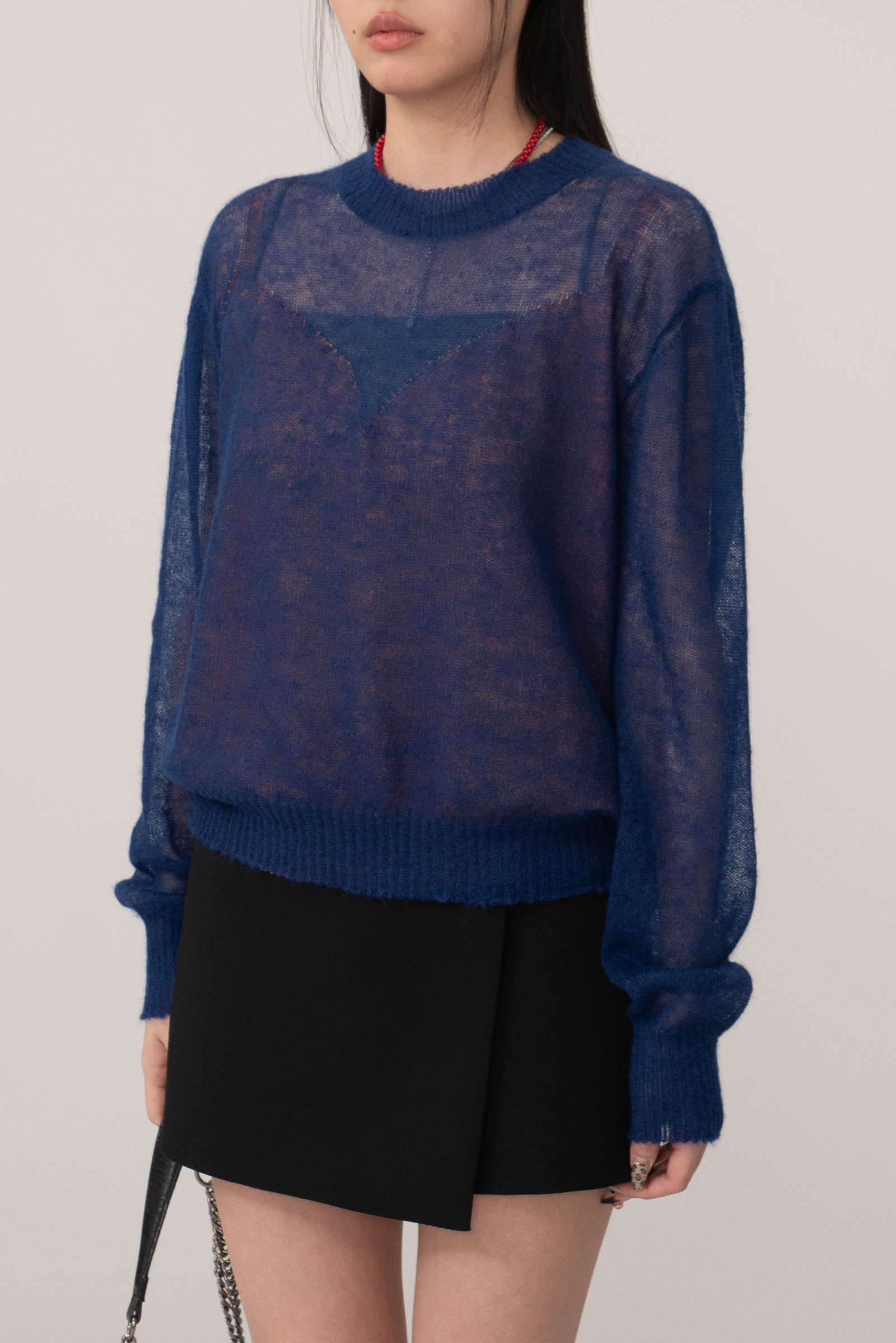 탑을 입고 착용을 해서 V넥 시스루 느낌은 디테일 컷에서 보다 정확하게 확인하실 수 있답니다..!