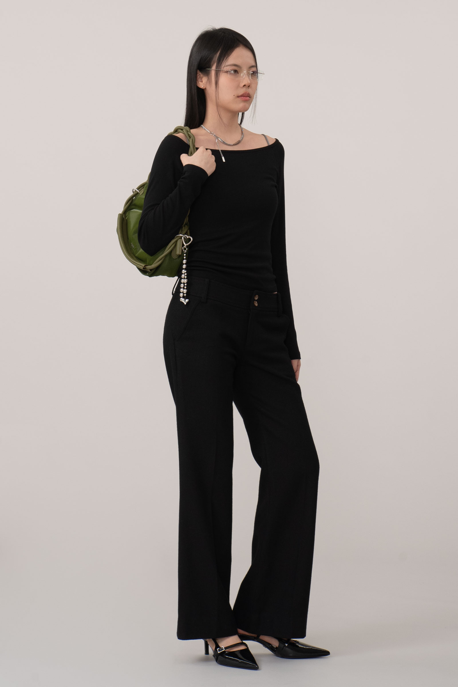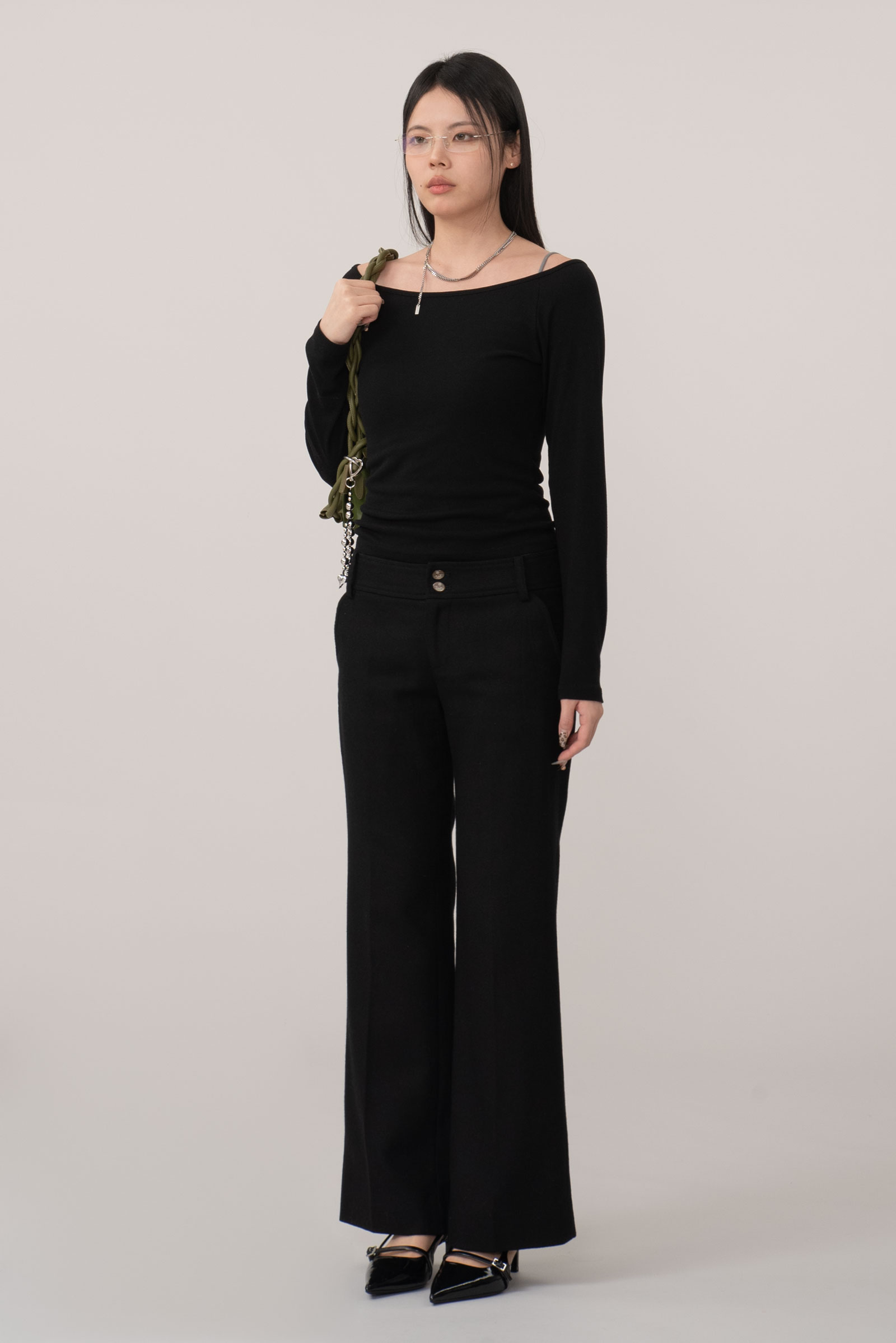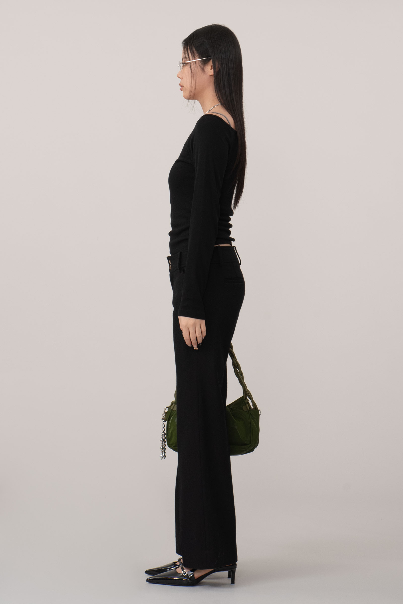 세련된 로우 라이즈, 부츠컷 실루엣에 클래식한 블랙 컬러라 f/w 시즌 다양하게 착용되는 아이템이에요.