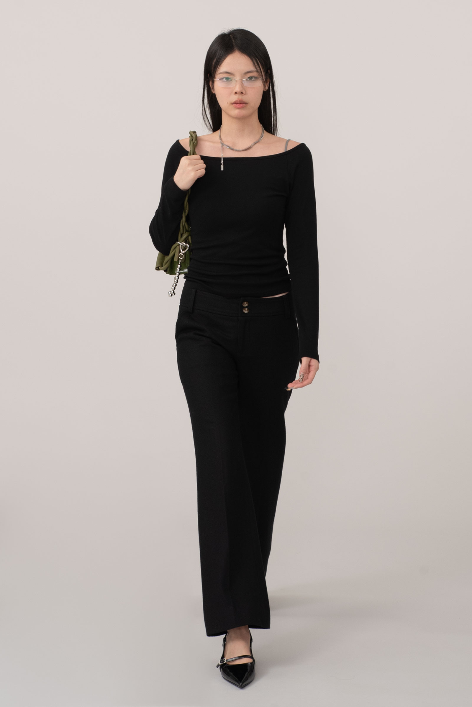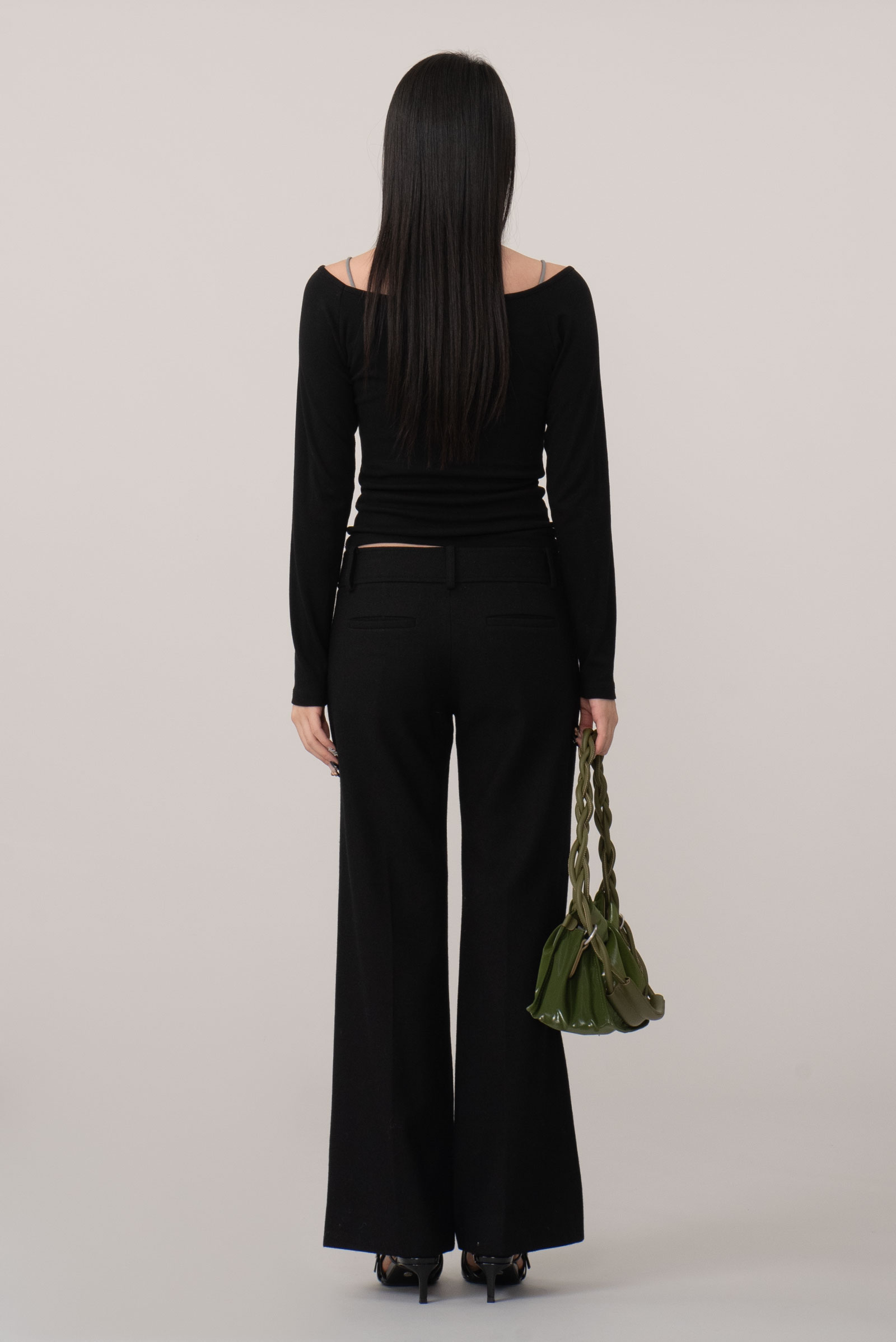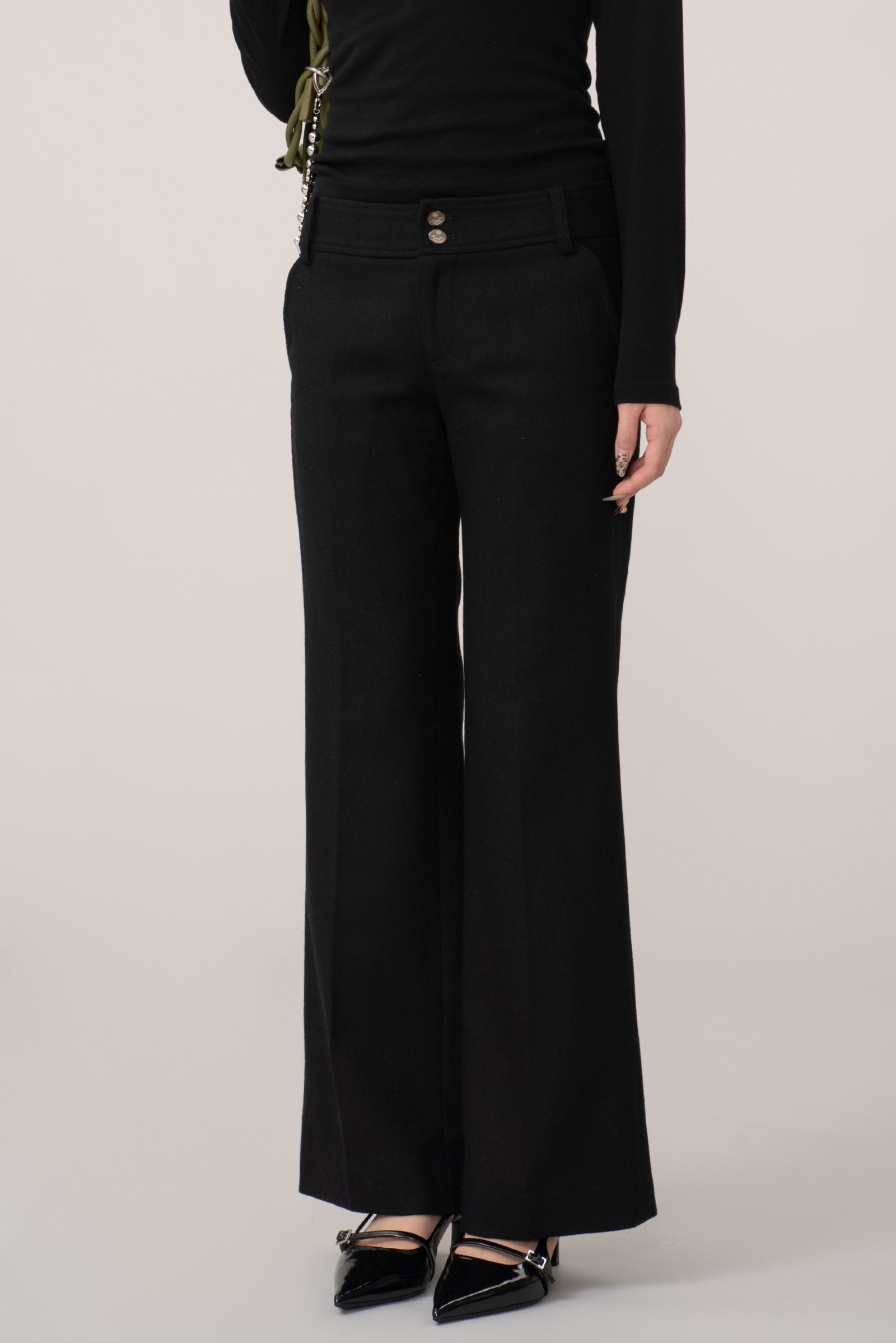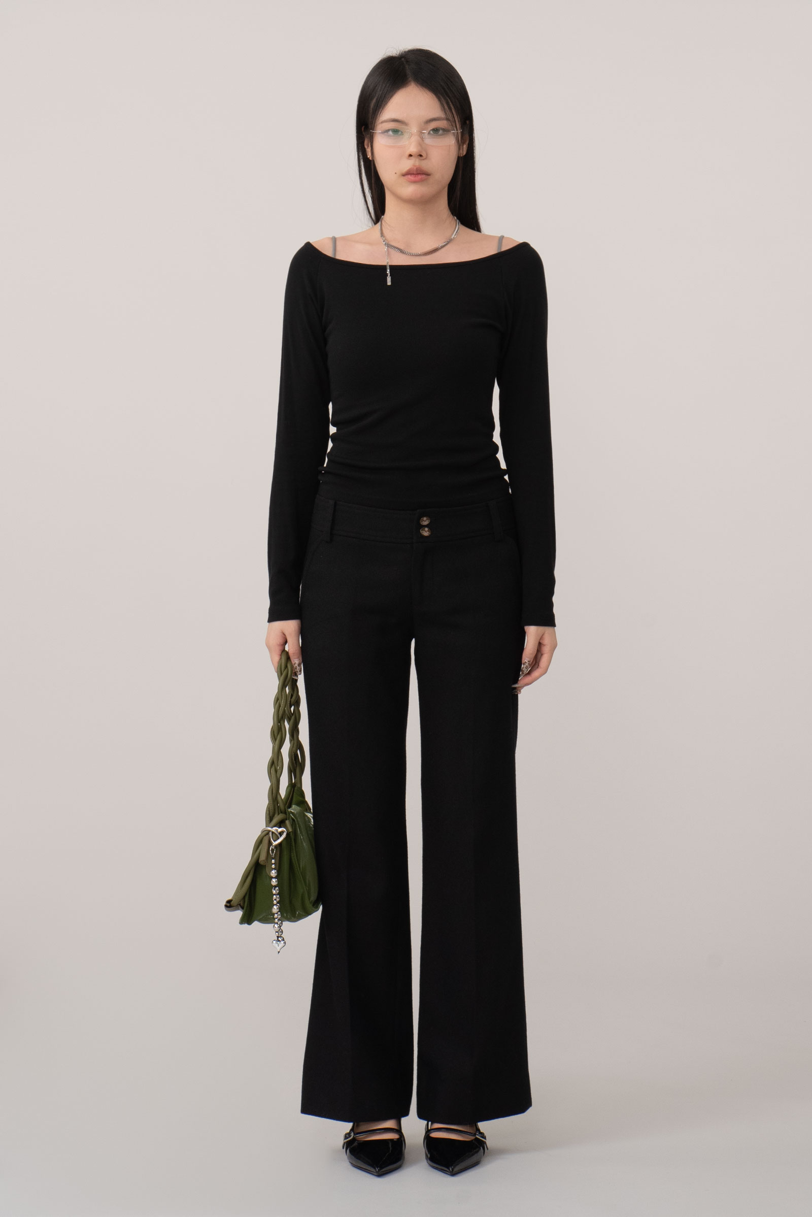 세련된 로우 라이즈, 부츠컷 실루엣에 클래식한 블랙 컬러라 f/w 시즌 다양하게 착용되는 아이템이에요.
