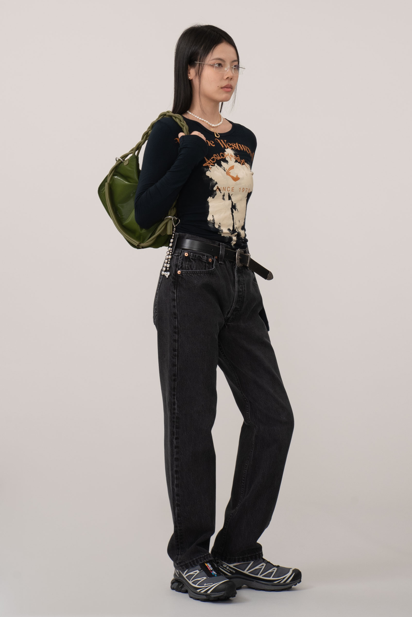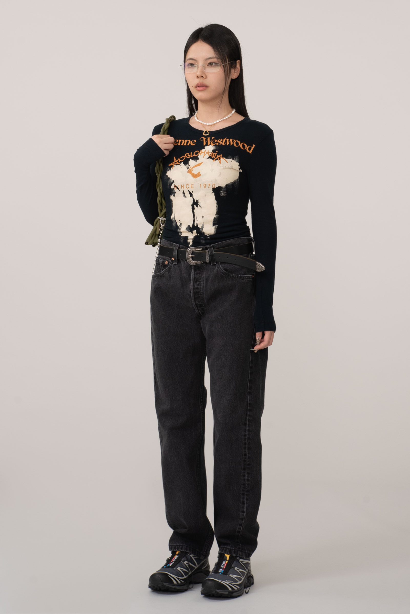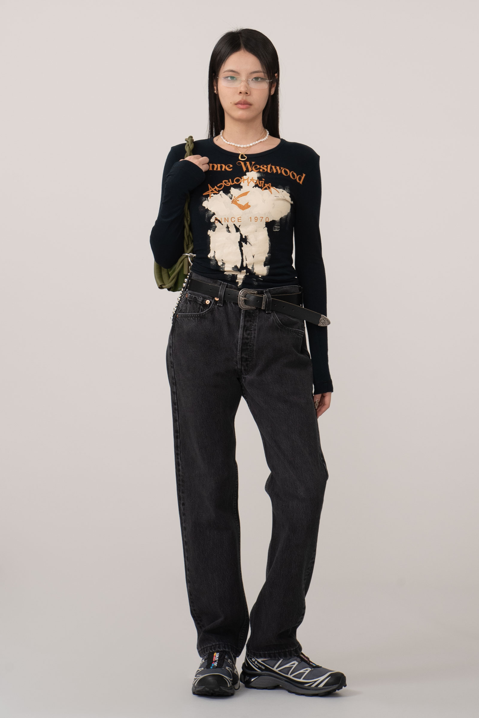 완전한 블랙이 아닌 물 빠진듯한 느낌의 흑청 컬러, 가장자리 워싱, 빈티지 특유의 흐리멍텅한 아큐에잇 등 입을수록 만족도가 높기에 여전히 매니아층이 탄탄하죠.