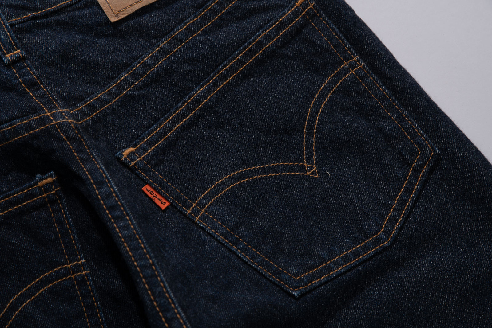 워싱 없는 진청 컬러, 레드 탭이 시시하고 재미없다면 손이 갈 유니크한 오렌지 탭에 클래식한 핏 감으로 두루 즐길 거리가 다양하네요.
