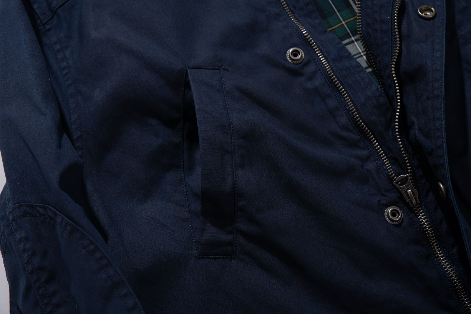 폴로의 시그니처 체크를 안감으로 사용하여 디자인과 퀄리티를 살리고 헌팅 재킷의 대표적인 갈비 포켓과 복부 포켓 역시 쓰임이 다양하죠.