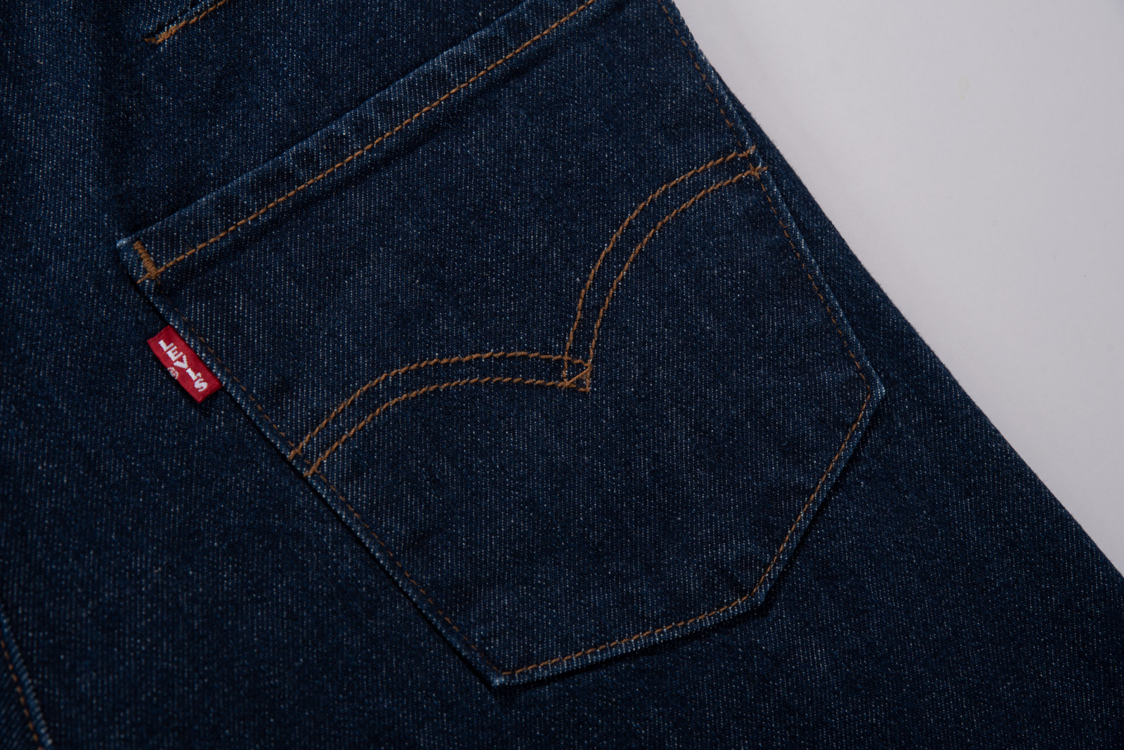 입체적인 실루엣과 앞으로 돌아가있는 아웃심, 커다란 백 포켓 등 원판의 포인트를 그대로 가지고 온 유니크한 아이템인데요.