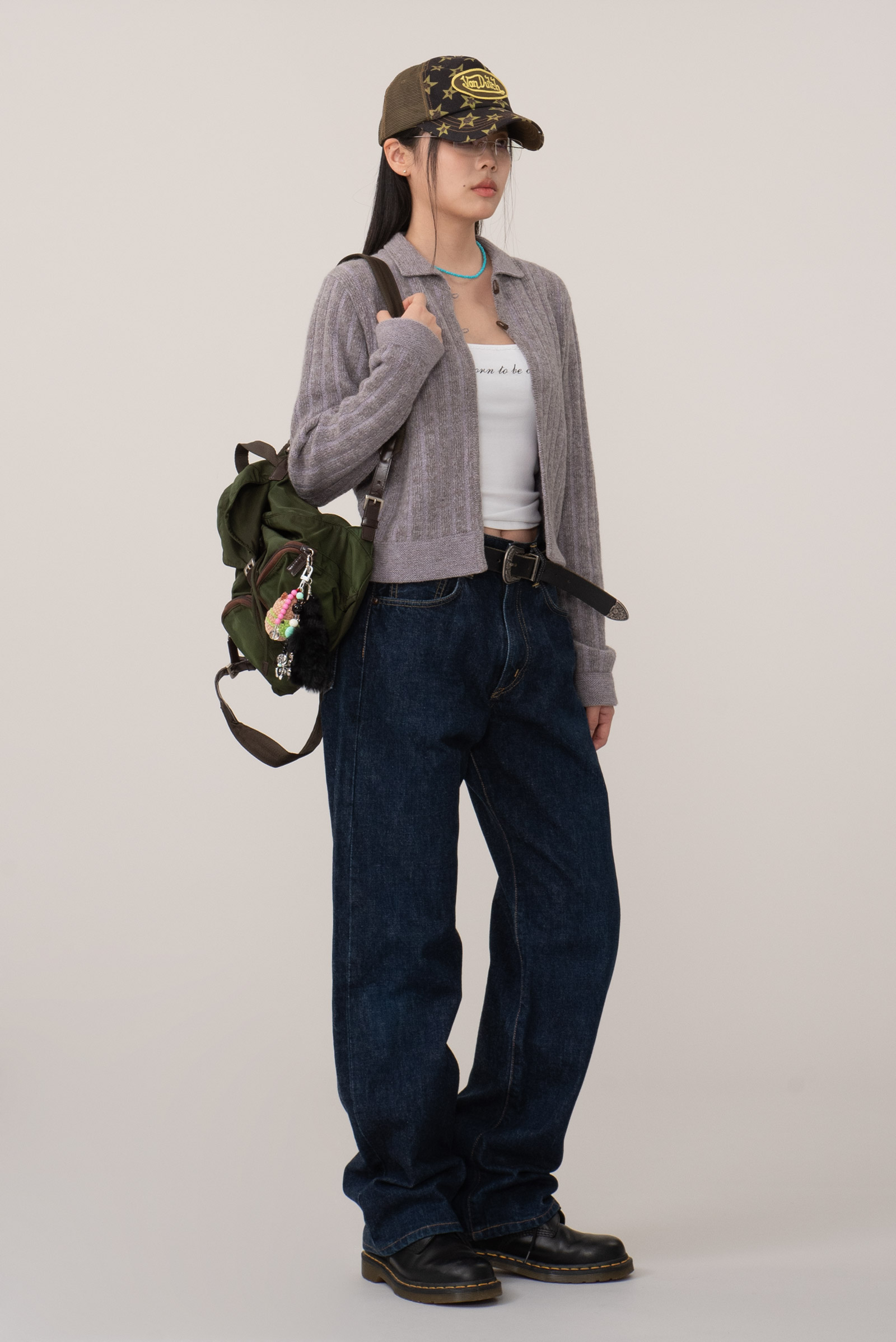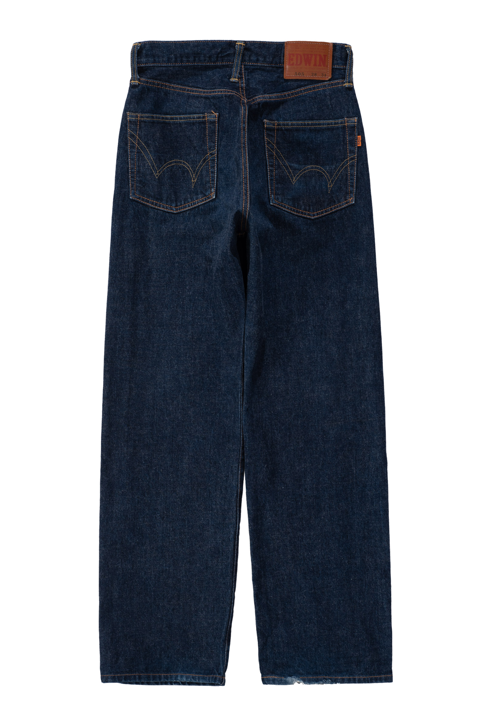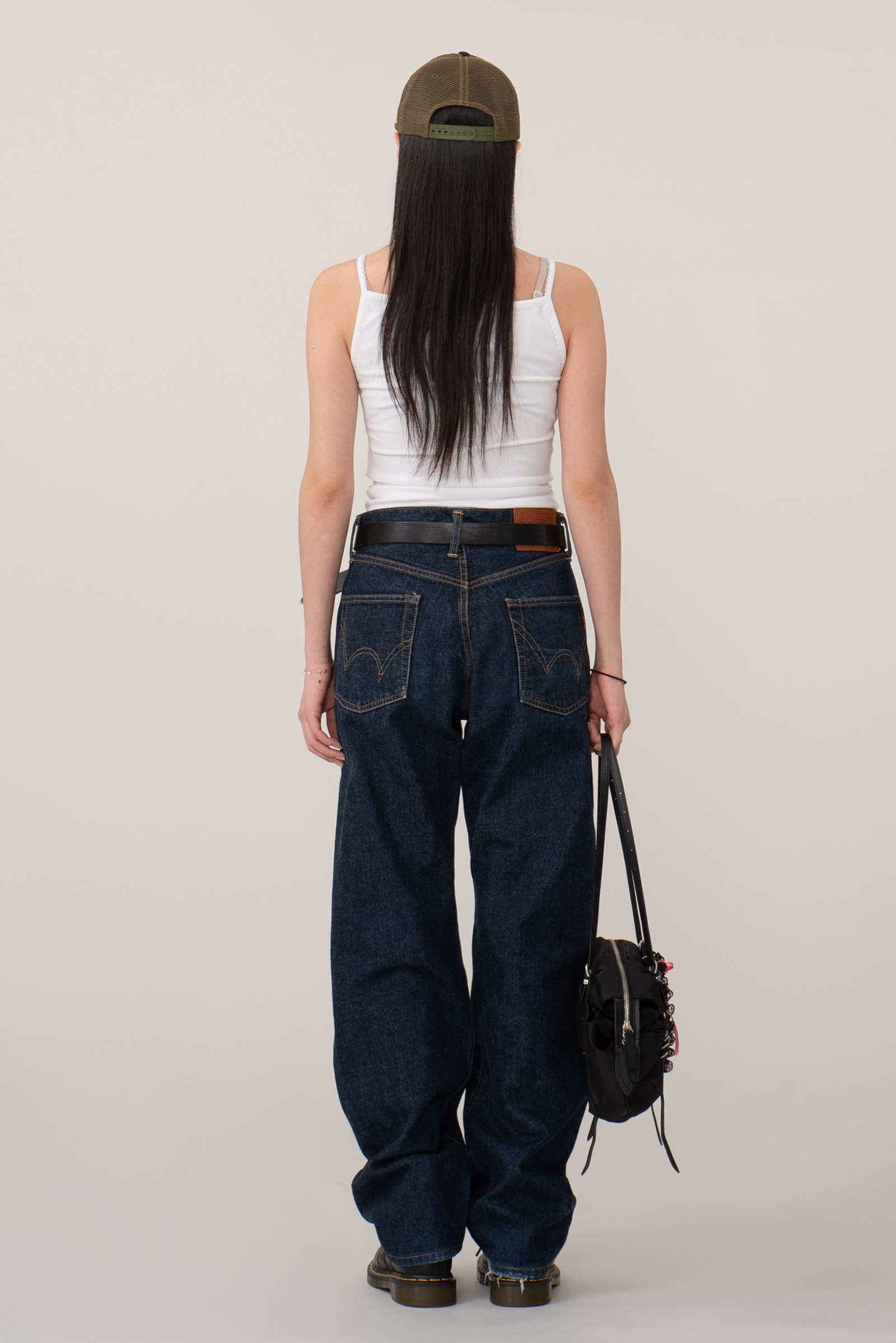힙과 허벅이 넉넉하고 밑단으로 시원하게 뻗는 와이드한 실루엣, 셀비지 마감과 커다란 백 포켓 위로 에드윈 심볼 스트치가 특징인 모델이에요.