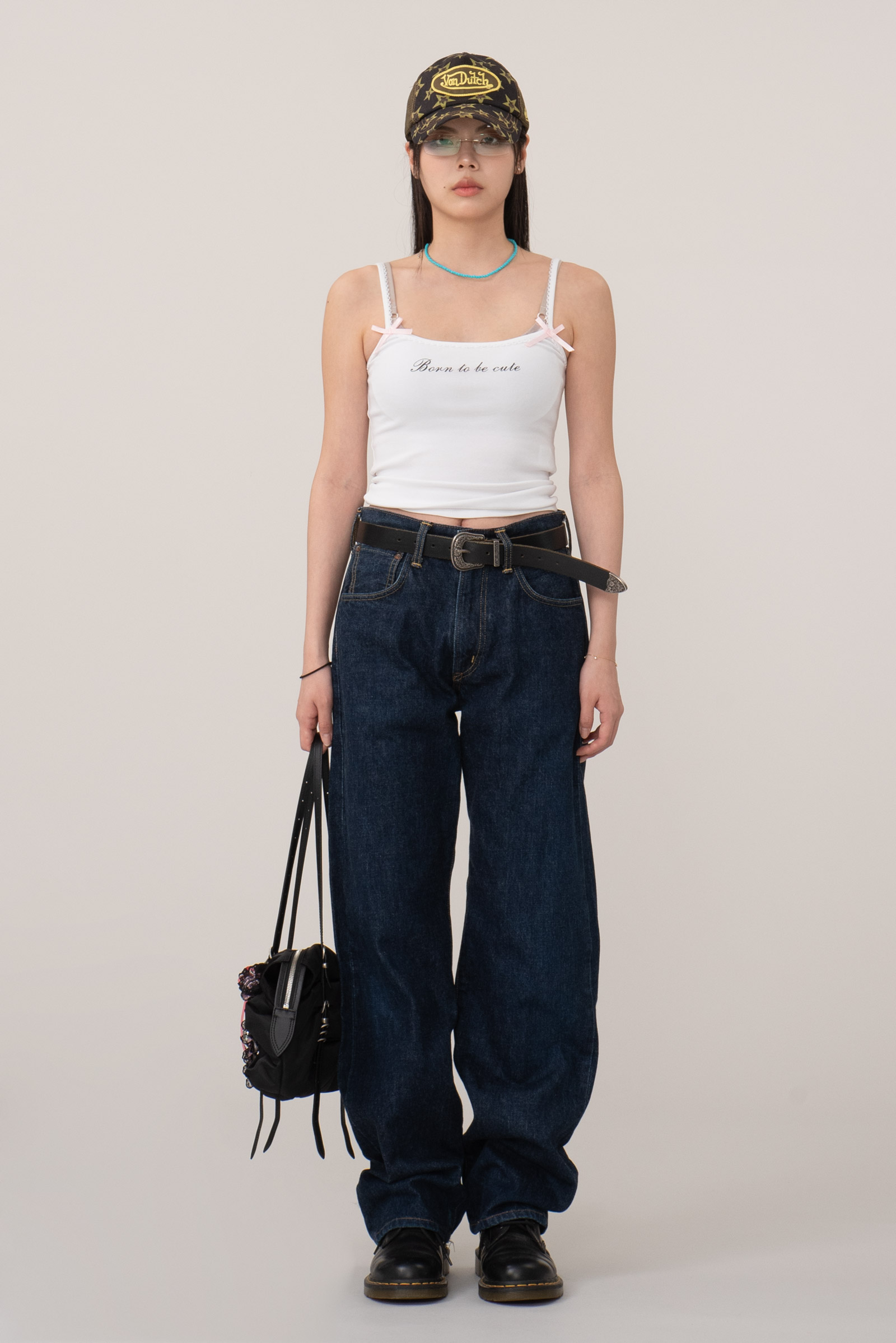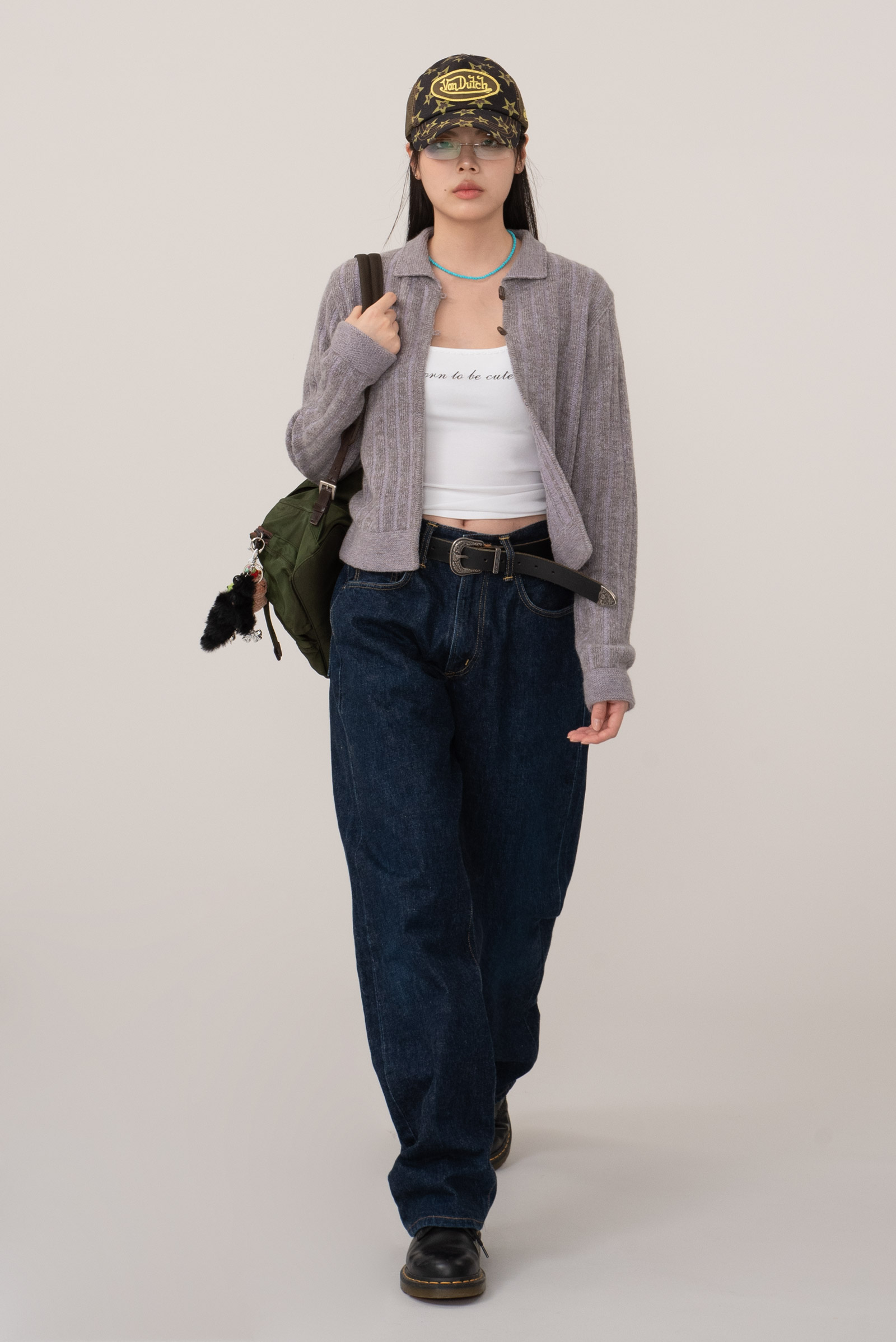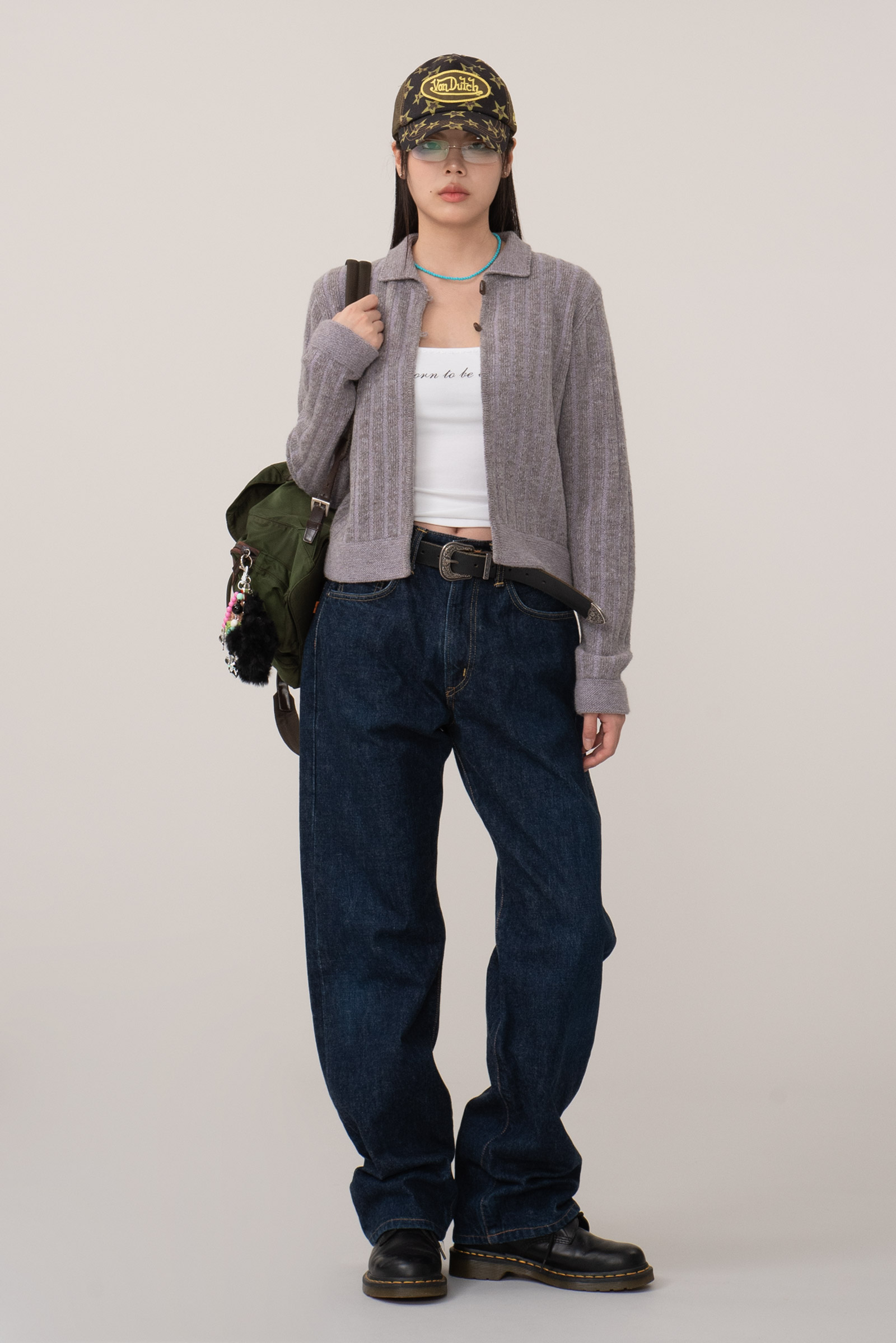 힙과 허벅이 넉넉하고 밑단으로 시원하게 뻗는 와이드한 실루엣, 셀비지 마감과 커다란 백 포켓 위로 에드윈 심볼 스트치가 특징인 모델이에요.