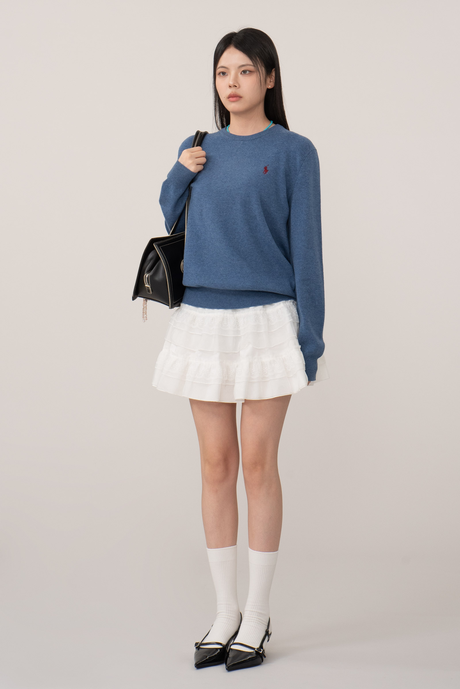 부드러운 고급 울 소재로 만들어져 보온성과 착용감이 뛰어나고 깔끔한 라운드넥 디자인은 단독 착용은 물론, 셔츠와 레이어드하기에도 활용도가 높죠.