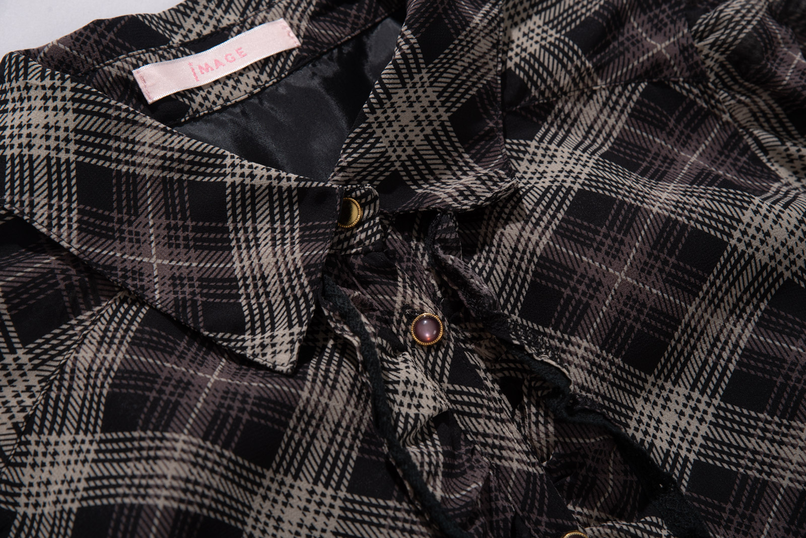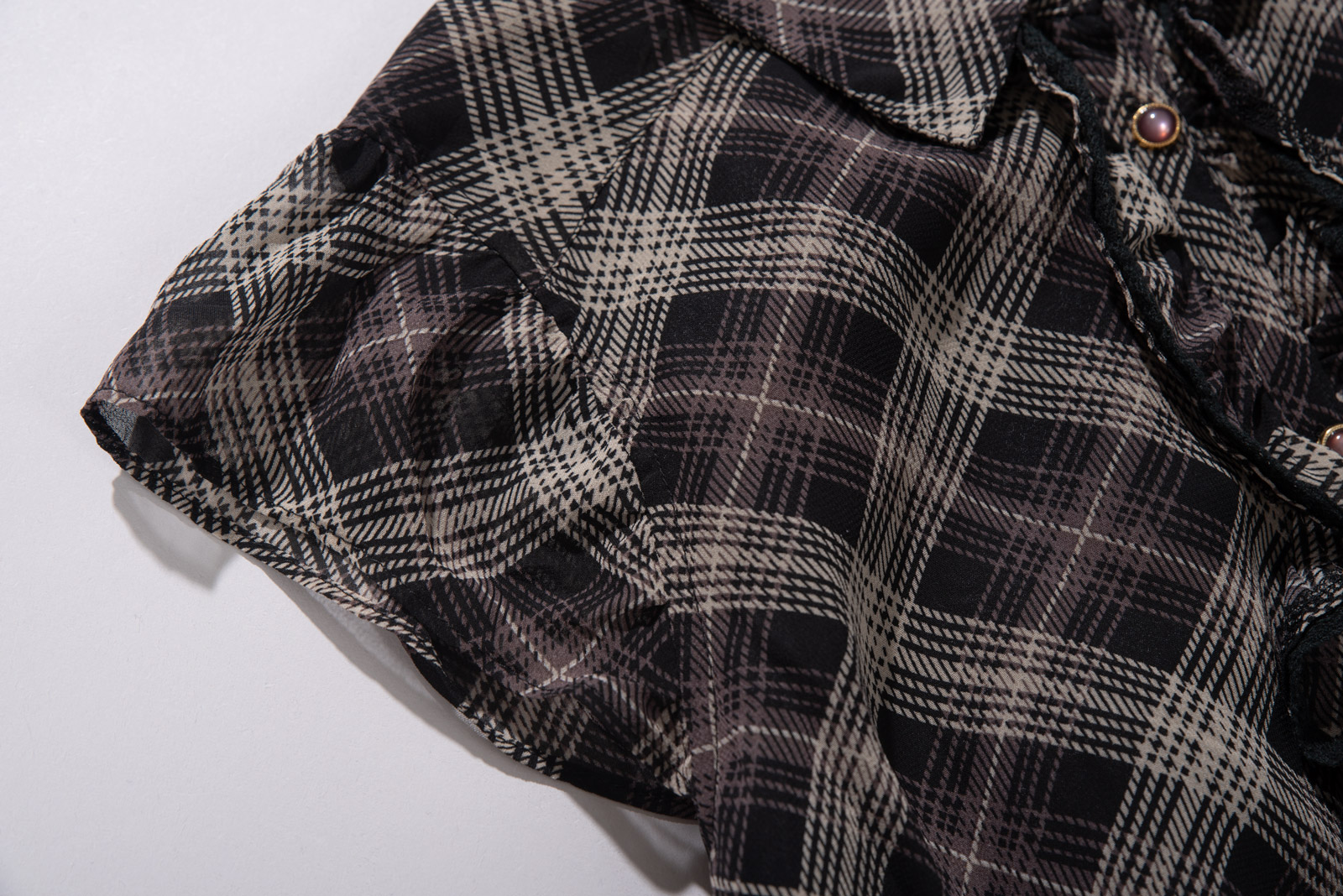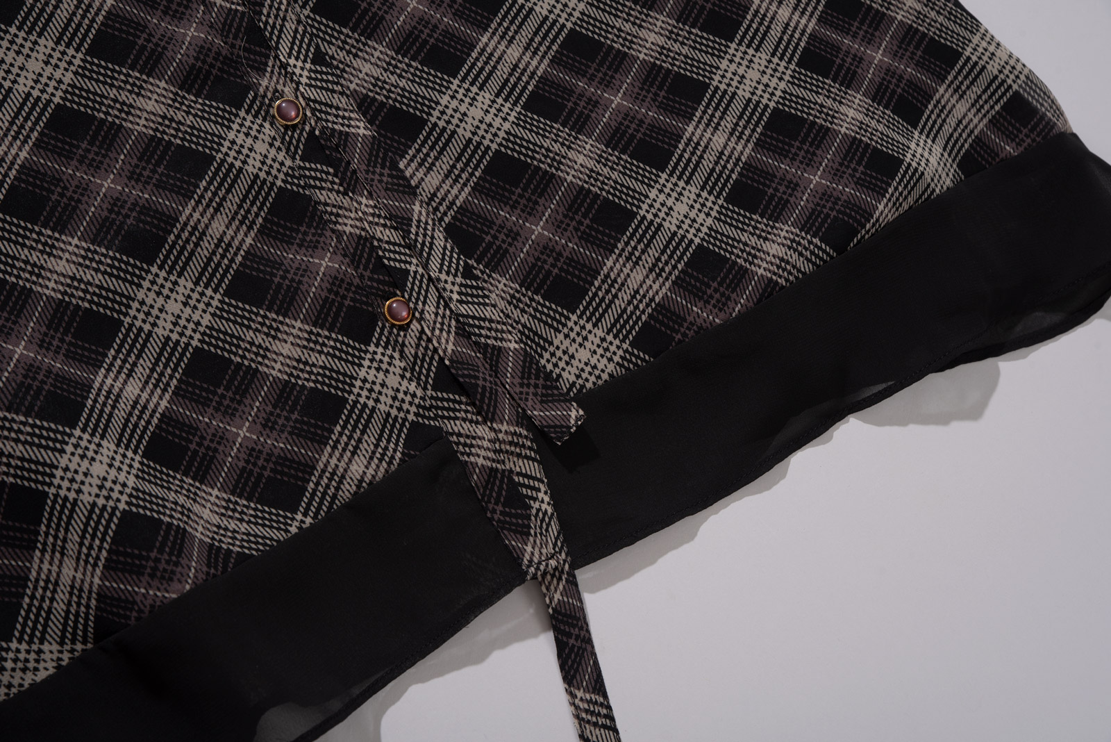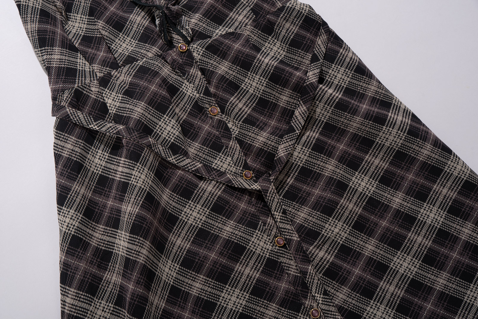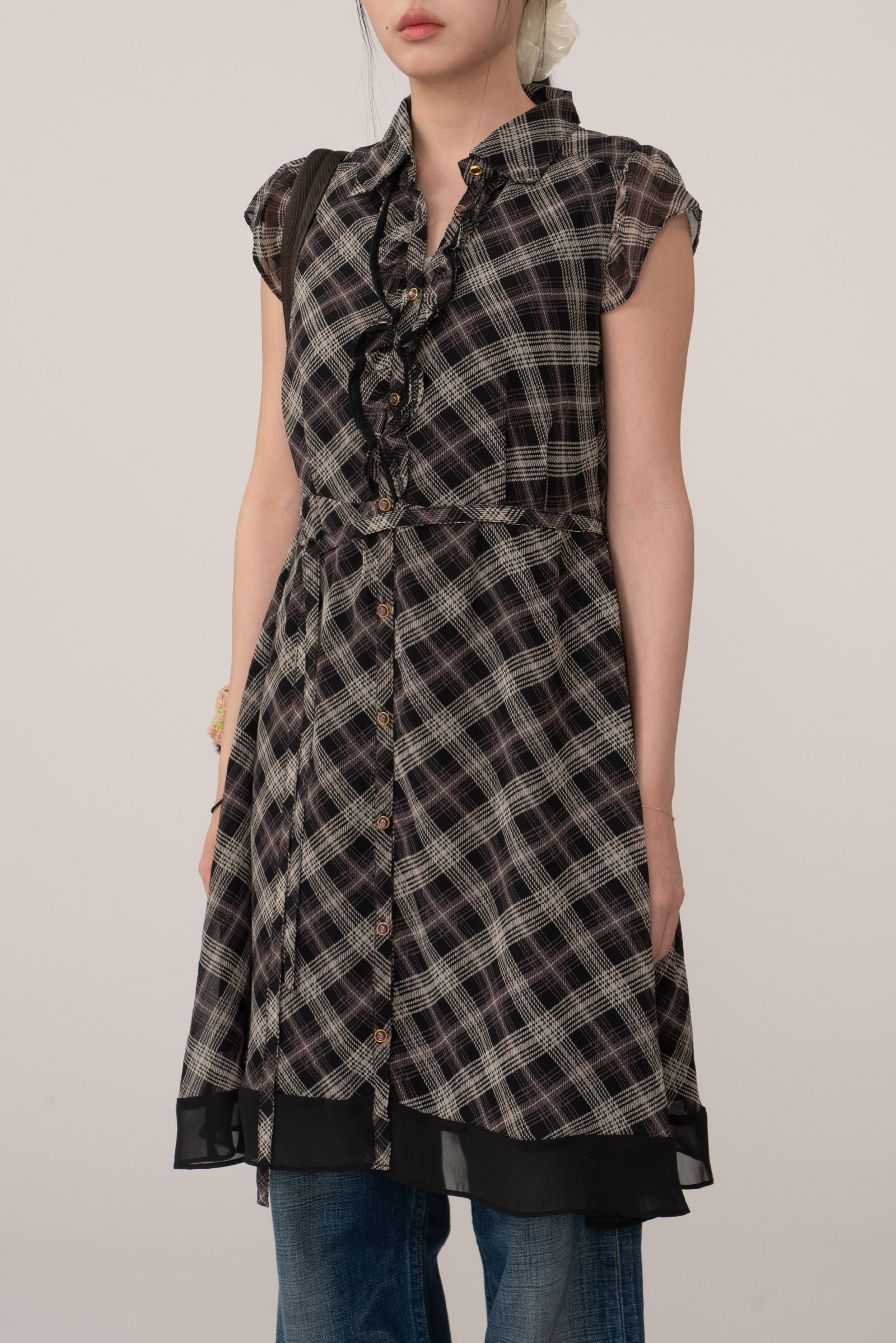잔잔한 체크 패턴 위로 흐르는 프릴 디테일이 사랑스럽고, 가볍고 얇은 원단 덕분에 여름철 혹은 더운 날씨에도 딱 좋은 아이템이랍니다.