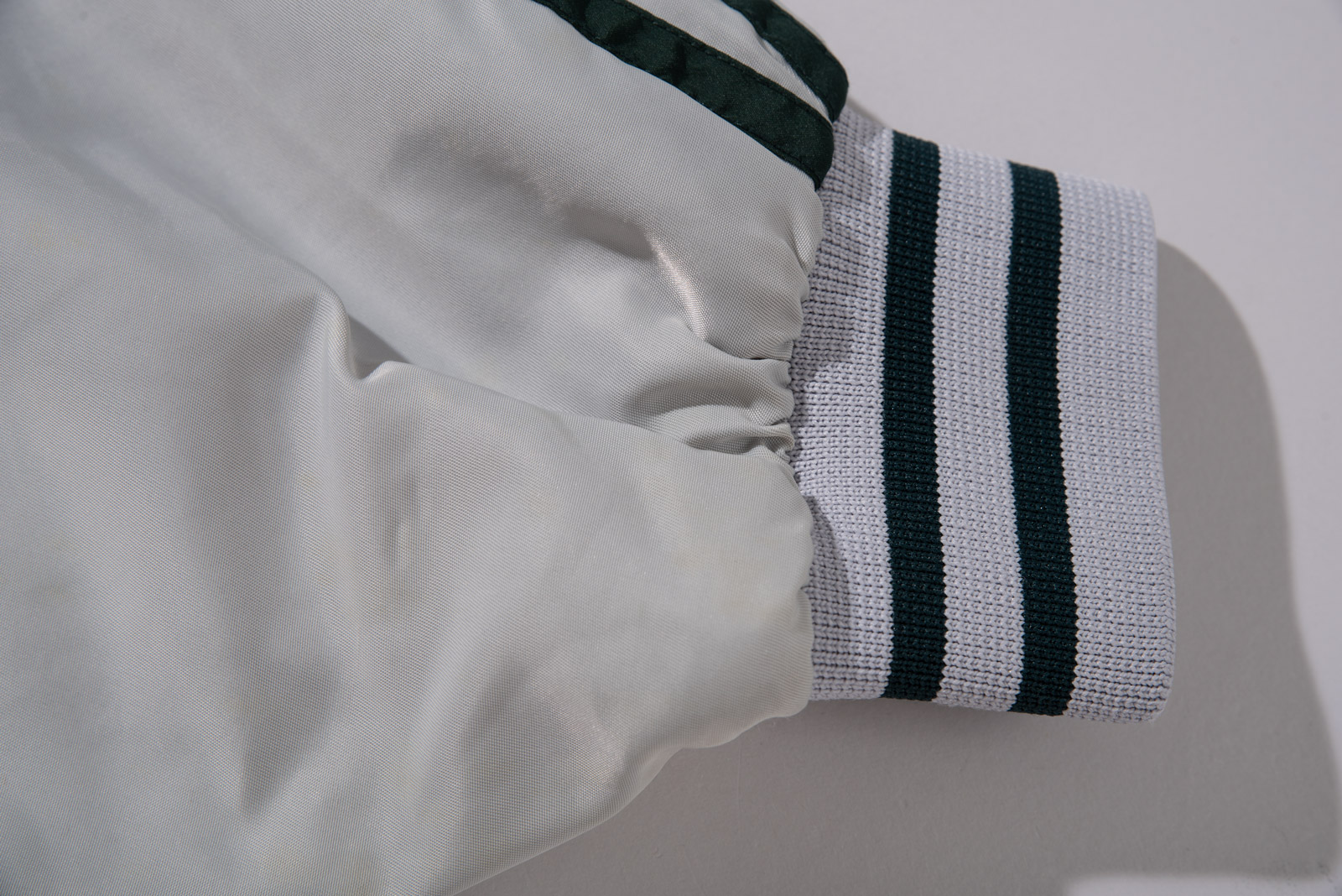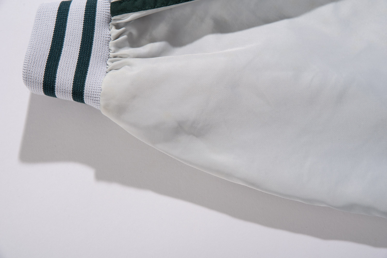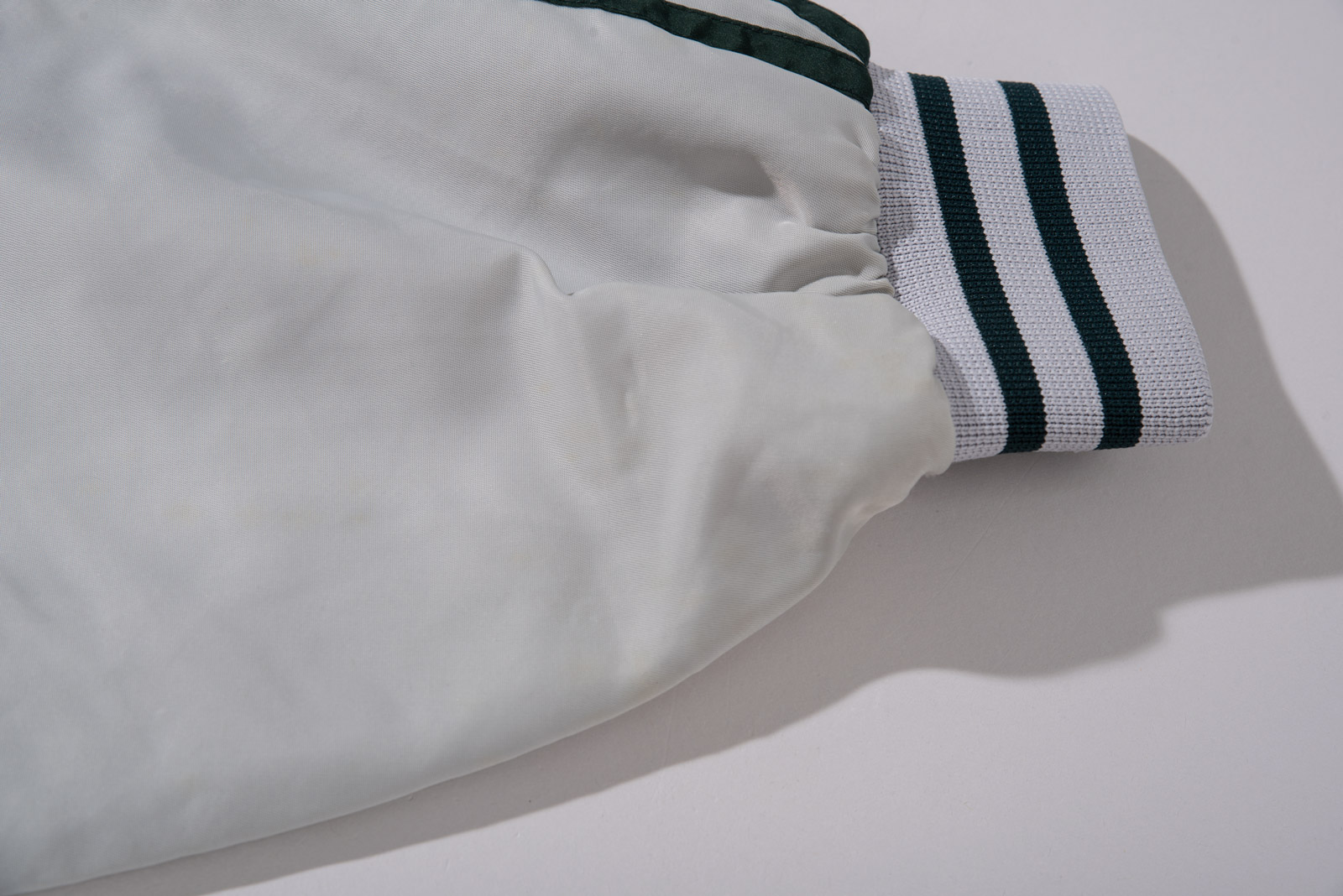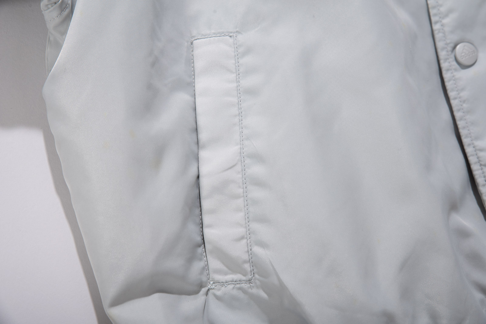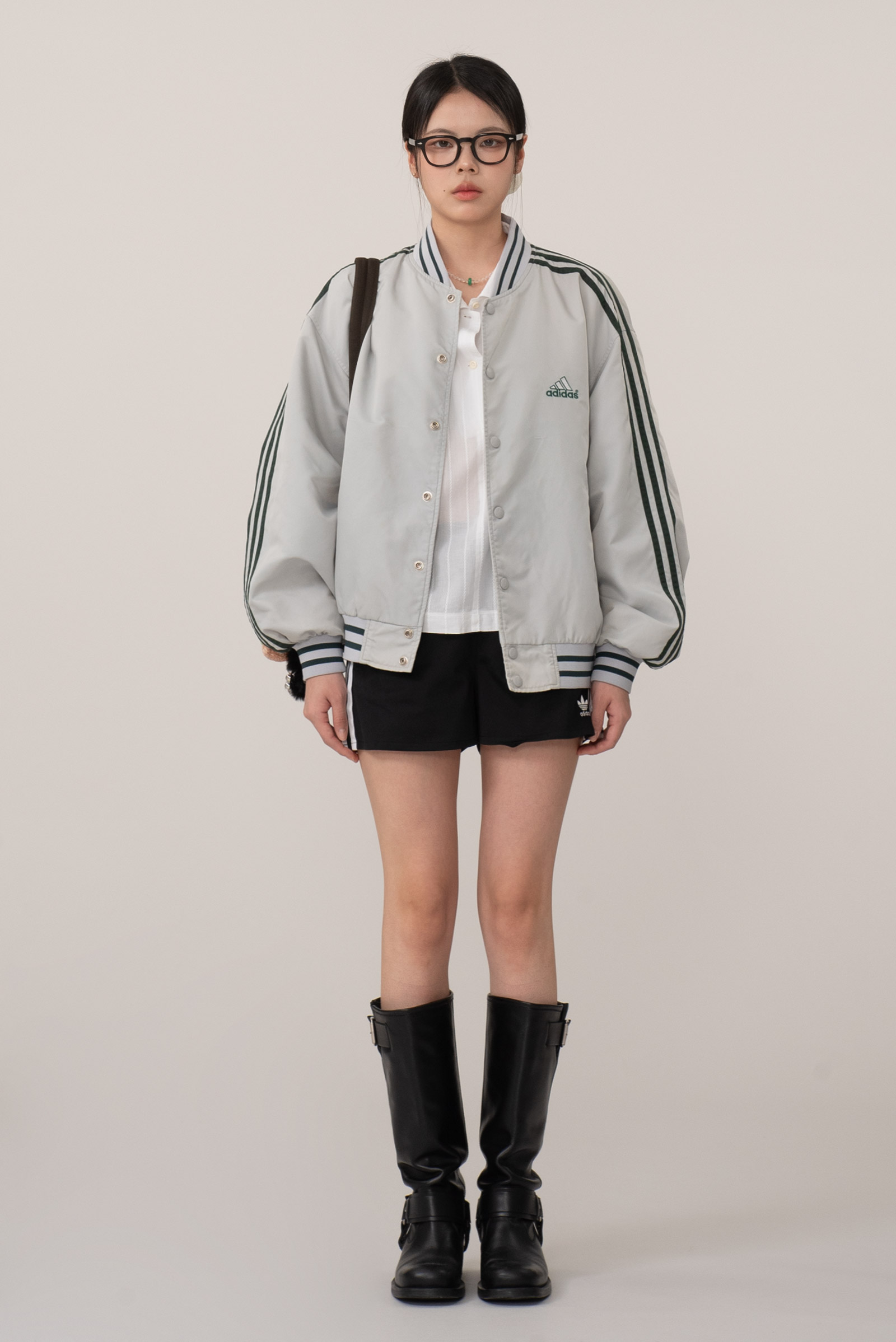 스냅 버튼 여밈 방식이고, 어깨부터 소매 끝까지 떨어지는 아디다스의 심볼 삼선 디테일, 그리고 탄탄한 립 디테일이 전형적인 올드 아디다스 스타디움 재킷 스타일을 보여주네요.