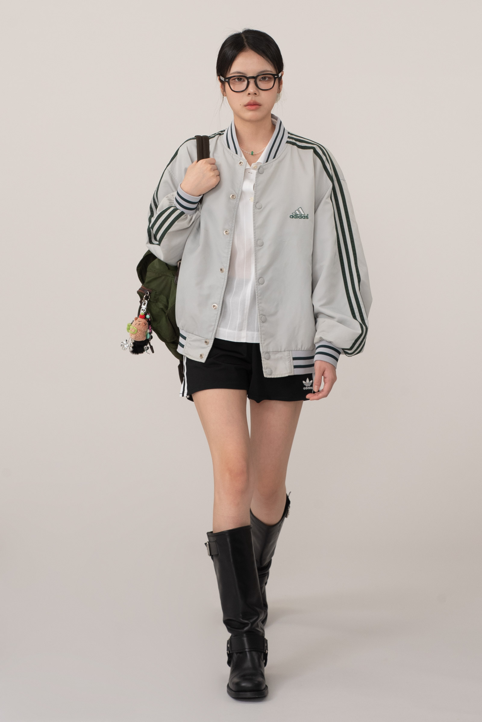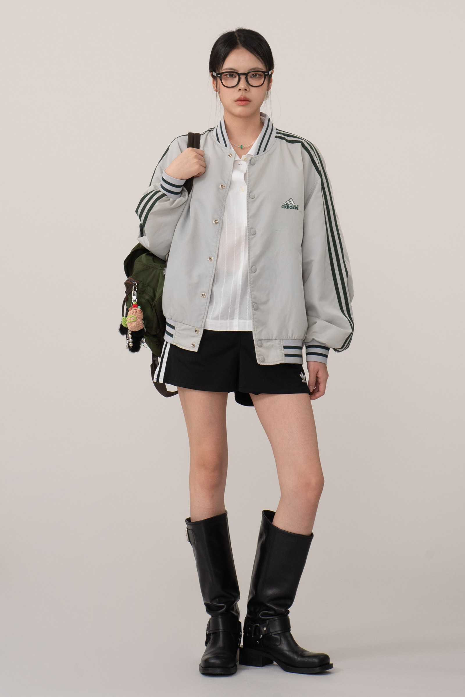 컬러는 흰 끼 도는 그레이+연 실버에 딥 그린 조합이라 확 튀지 않으면서도 유니크함 있고, 넉넉한 오버핏에 안감도 들어 있어서 간절기~초겨울까지도 활용도가 높아요.