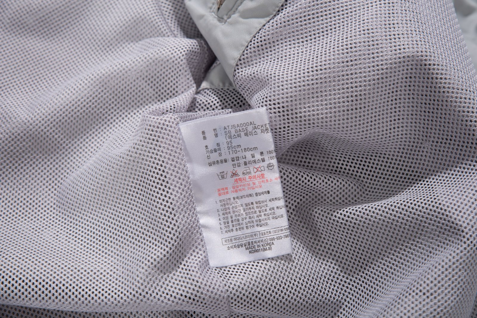 국내 생산된 MADE IN KOREA 제품이고, 트레포일 이전의 90년대~2000년대 초반 아디다스 퍼포먼스 로고가 달려 있어요.