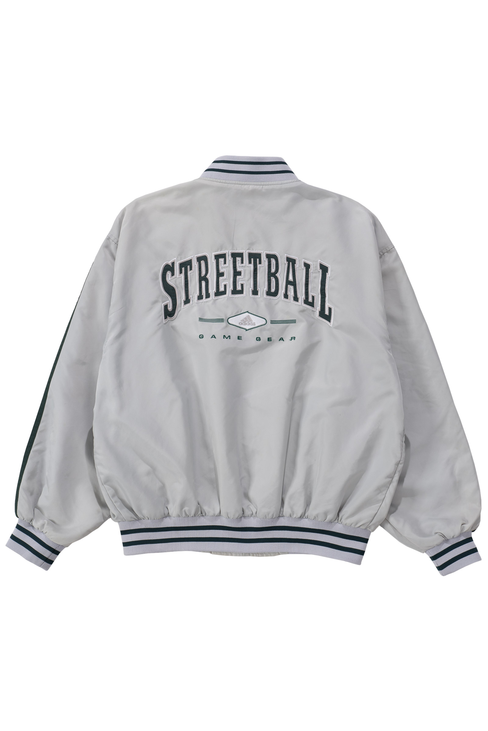 정면은 군더더기 없이 깔끔한 디자인에 왼쪽 가슴 로고만 포인트로 들어가 있고, 등판엔 강렬한 “STREETBALL” 자수 그래픽이 들어가 있네요.
