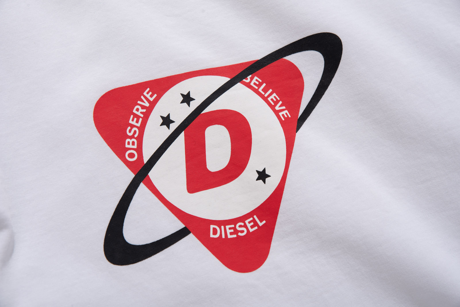 전면엔 우주를 모티브로 한 ‘D’ 로고가 박혀 있고, "OBSERVE, BELIEVE, DIESEL"이라는 문구가 들어가 있어서 브랜드가 지향하는 실험정신과 독립성, 도전적인 에너지를 보여주는 피스인데요.