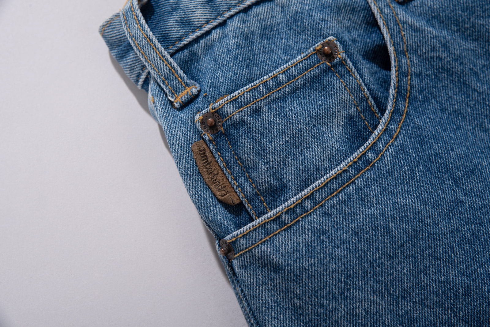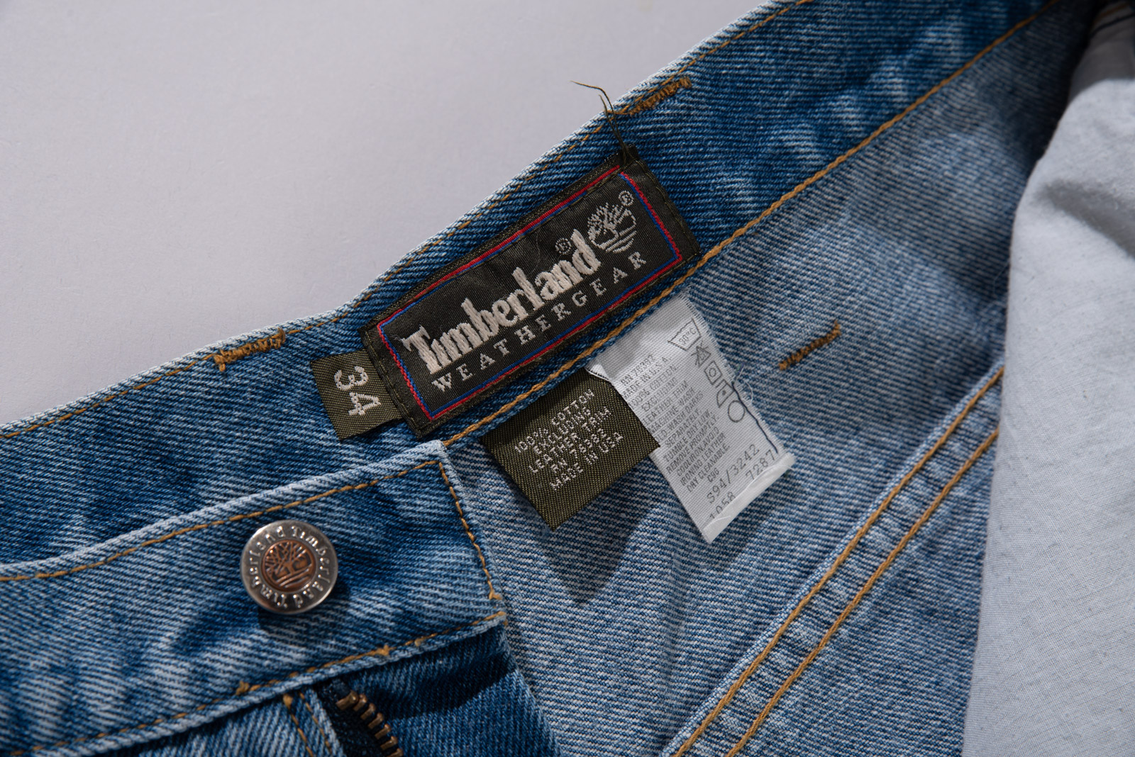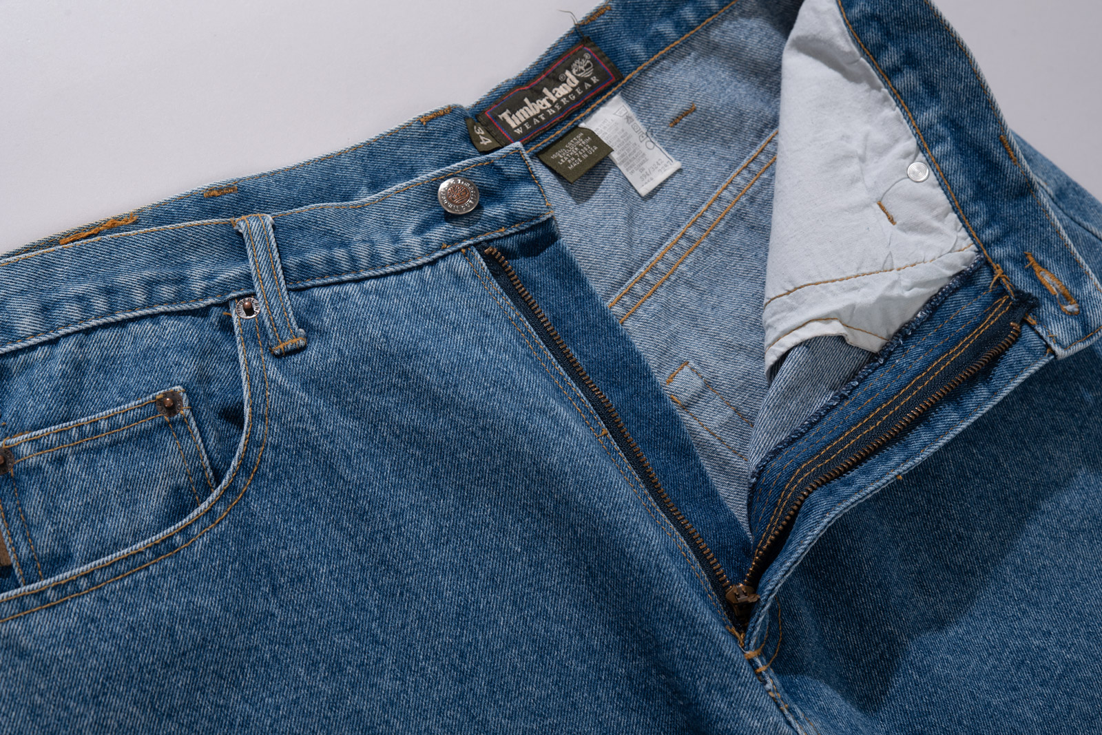 전면에 리벳이 박힌 코인 포켓과 버튼에는 팀버랜드 로고가 새겨져 있으며 허리 뒷면의 가죽 패치에는 ‘MADE IN U.S.A.’와 ‘CLASSIC DENIM’ 문구가 각인되어 있어 소장 가치 또한 높고요.