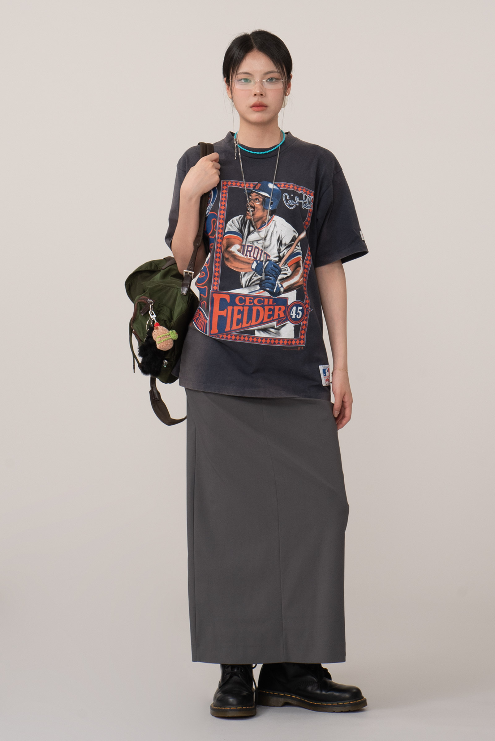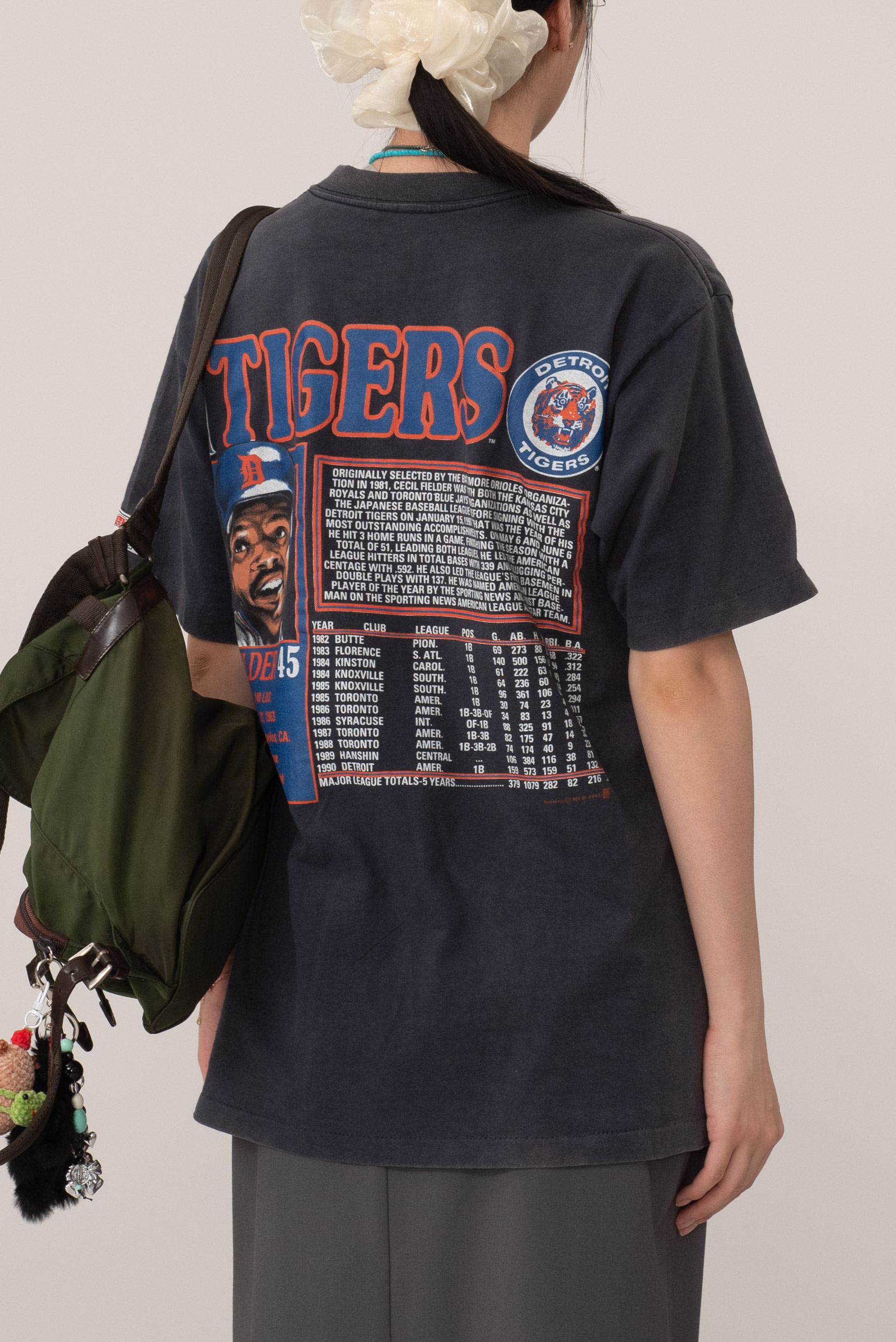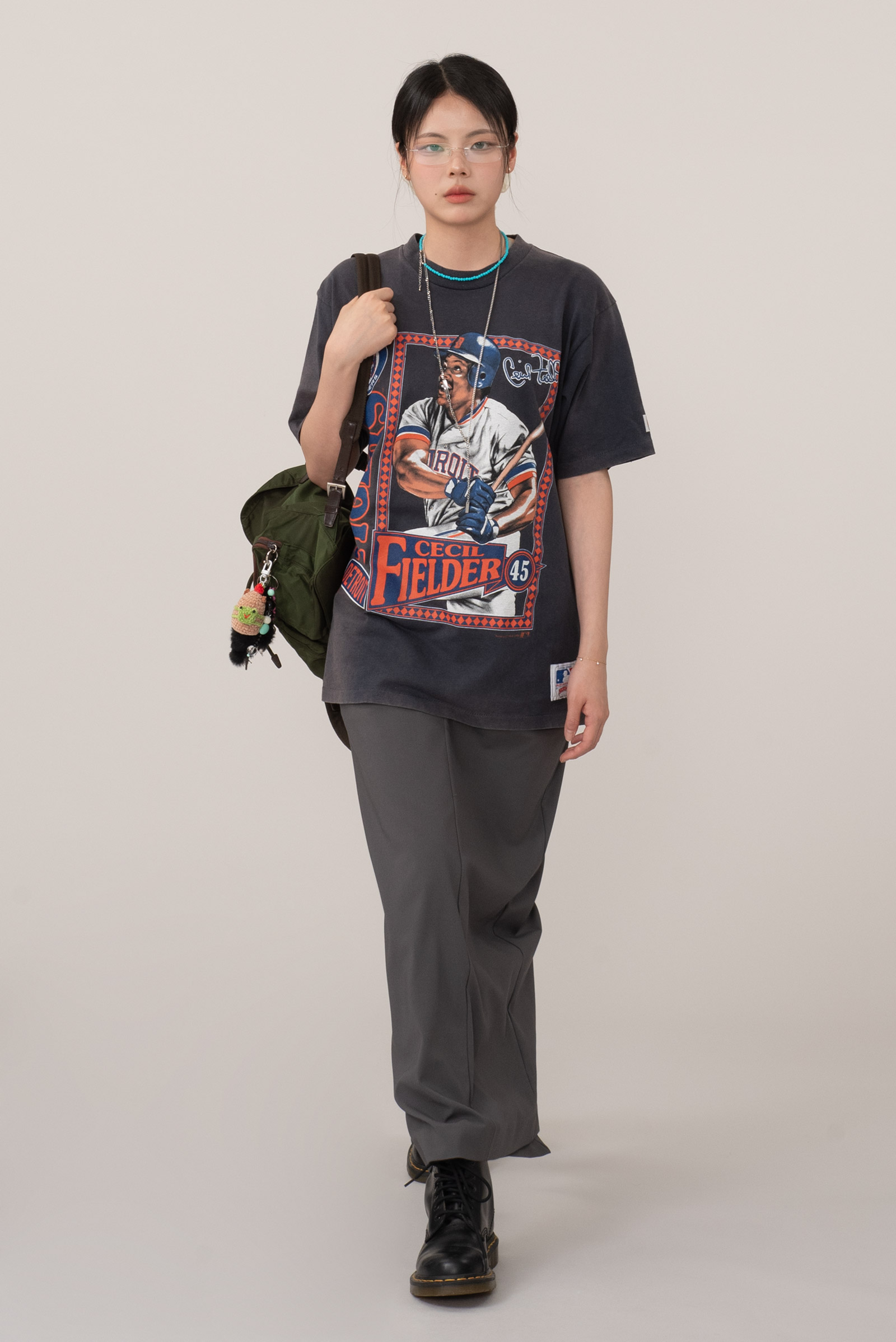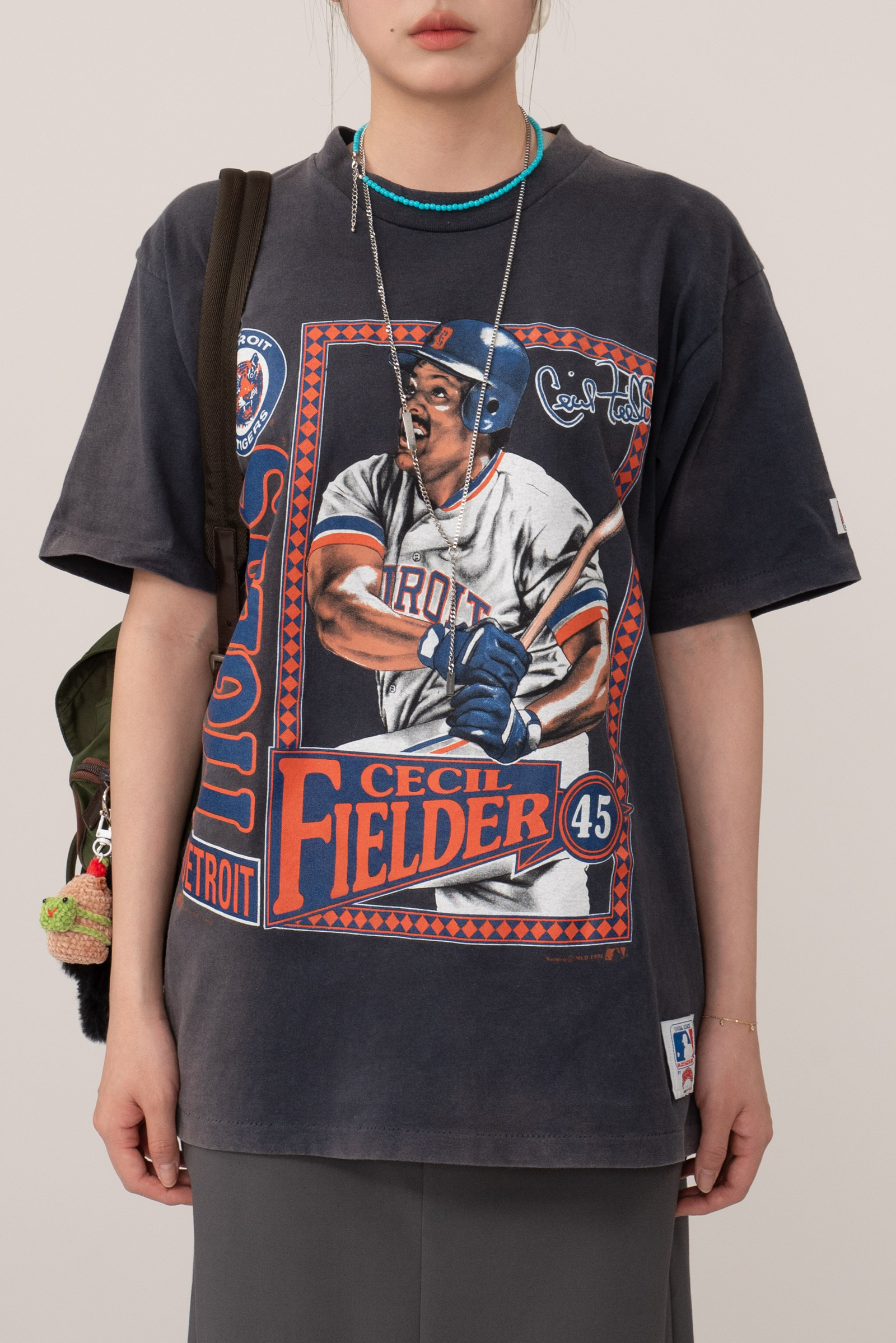 미국 디트로이트 타이거즈의 전설적인 1루수 Cecil Fielder를 기념한 그래픽으로, 전면과 후면 모두 강렬한 일러스트와 선수 정보가 담겨 있는 인상적인 아이템이에요.