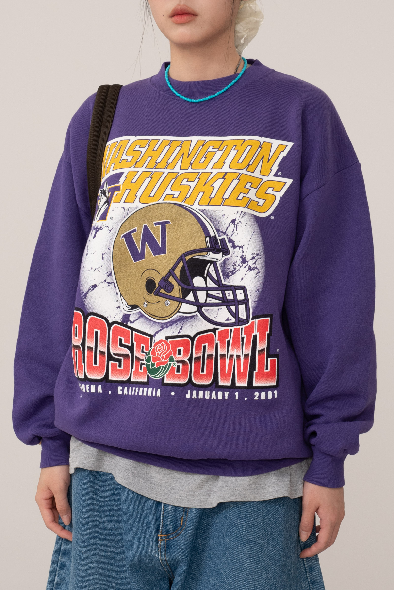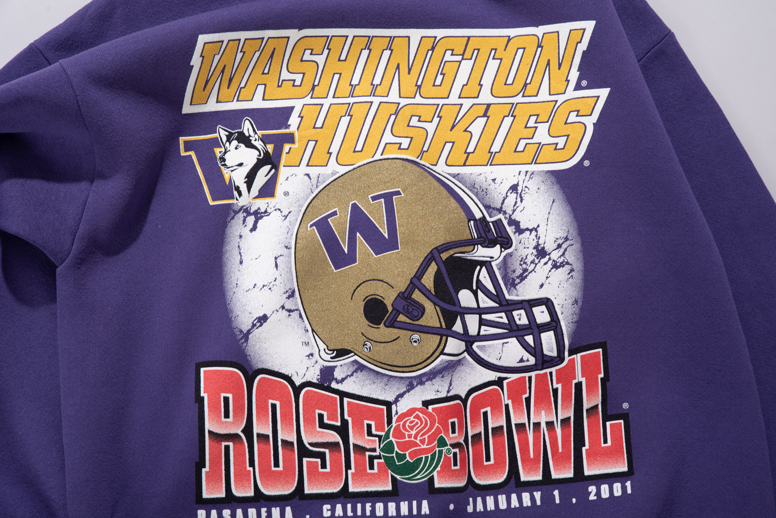 ▫comment - 2001년 1월 1일, 캘리포니아 패서디나에서 열린 로즈 볼 경기를 기념해 제작된 워싱턴 허스키스 팀의 빈티지 스웻셔츠입니다.