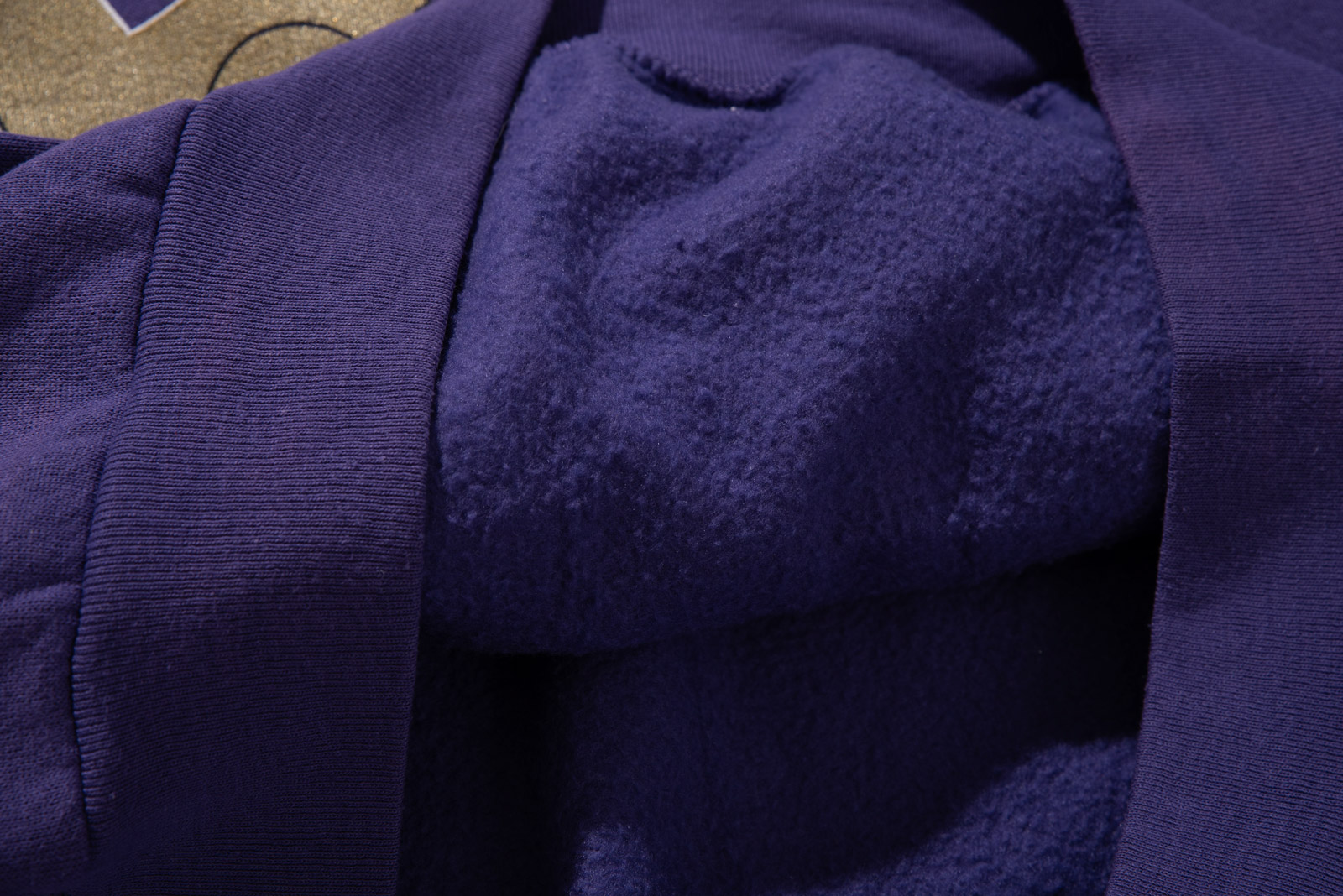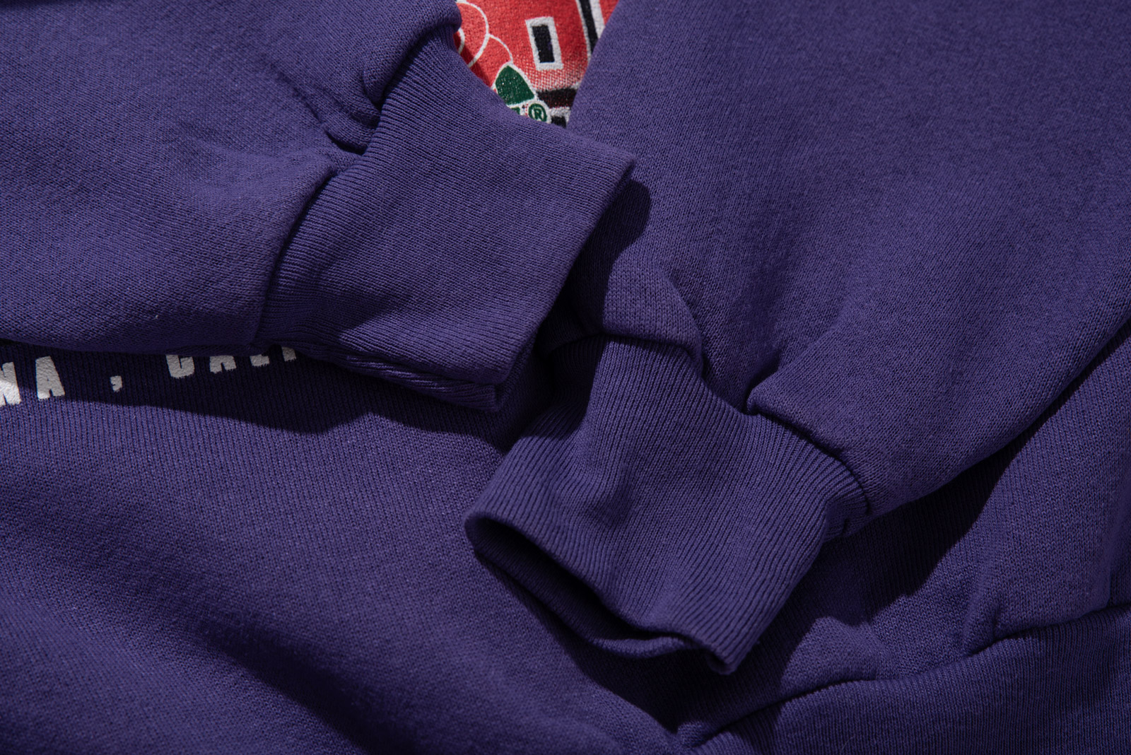 원단은 톨텍스(TULTEX)社의 ‘MAXIMUM SWEATS’ 라인으로, 50% 면과 50% 폴리 혼방이라 복원력이 좋고 부드러운 기모 안감으로 한겨울까지 따뜻하게 입을 수 있고 전체적으로 여유 있는 핏이라 요즘 트렌드에도 잘 어울리고 퍼플 컬러 특유의 강렬한 존재감 덕분에 캐주얼 코디의 포인트로도 손색없어요.