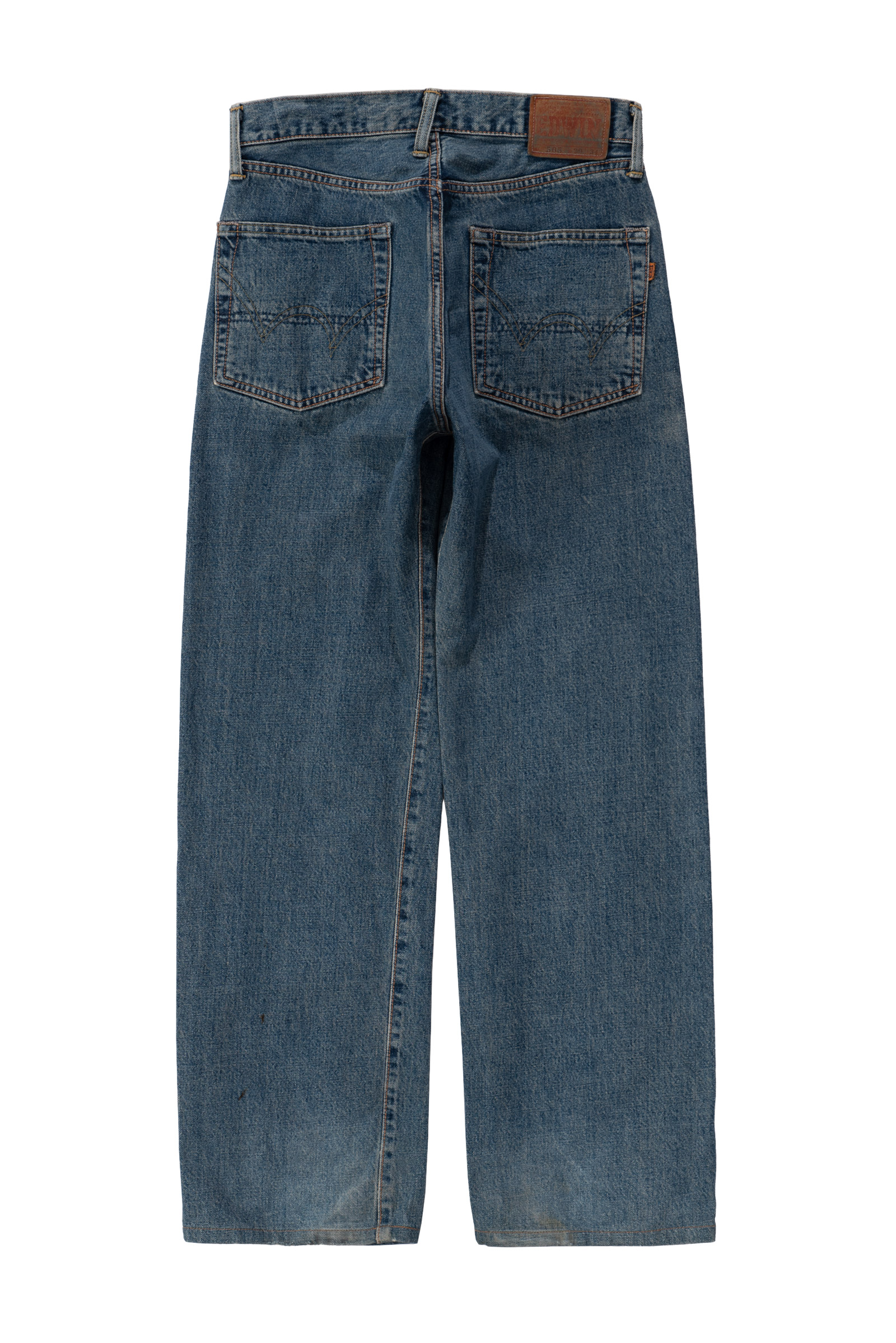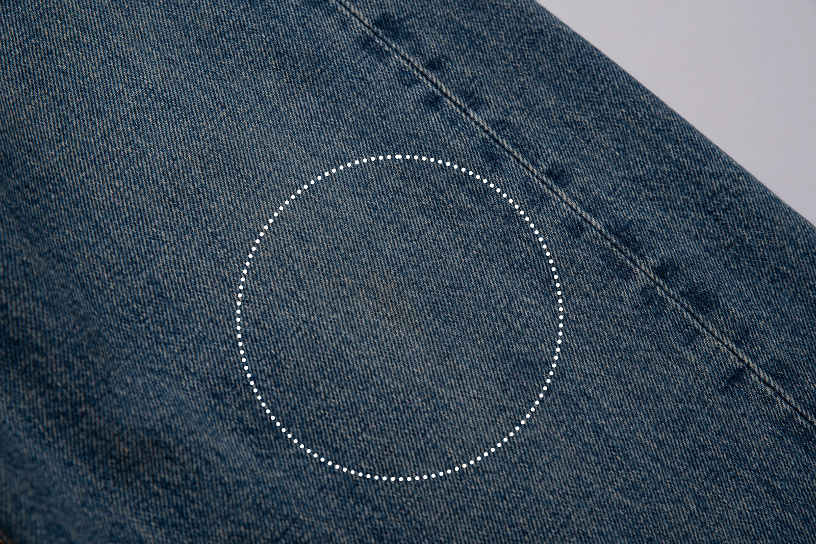힙과 허벅이 넉넉하고 밑단으로 시원하게 뻗는 와이드한 실루엣, 셀비지 마감과 커다란 백 포켓 위로 에드윈 심볼 스트치가 특징인 모델이에요.